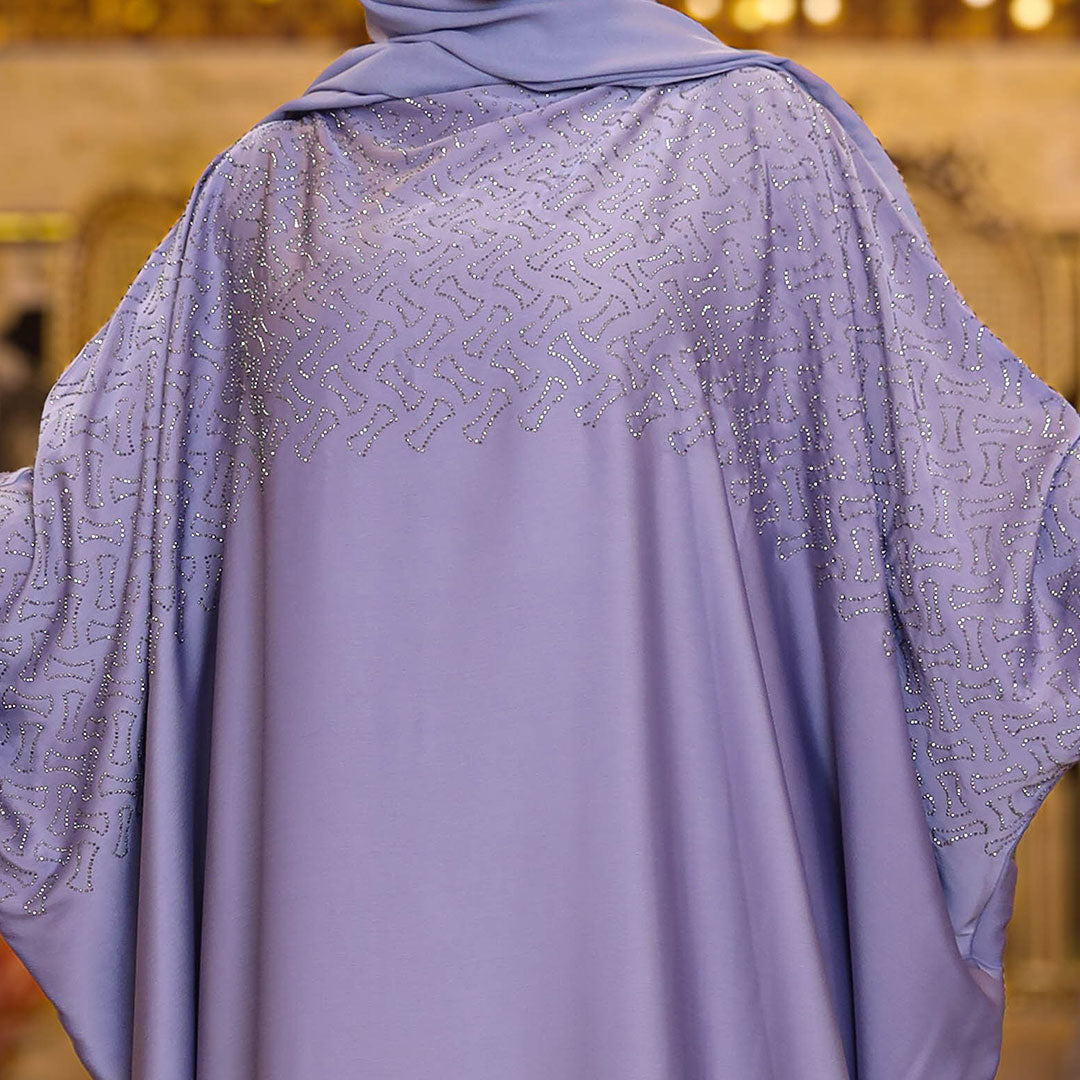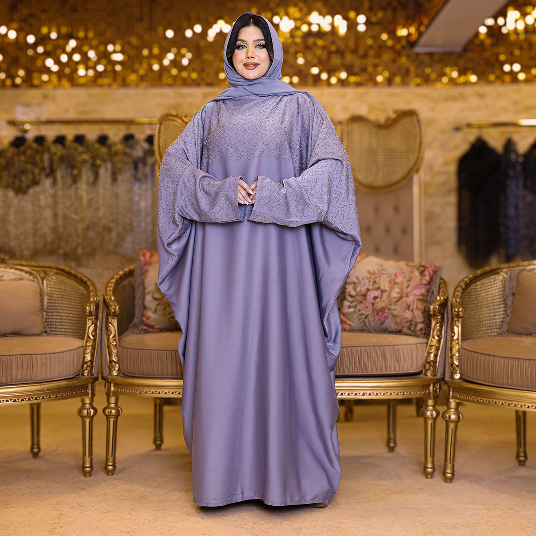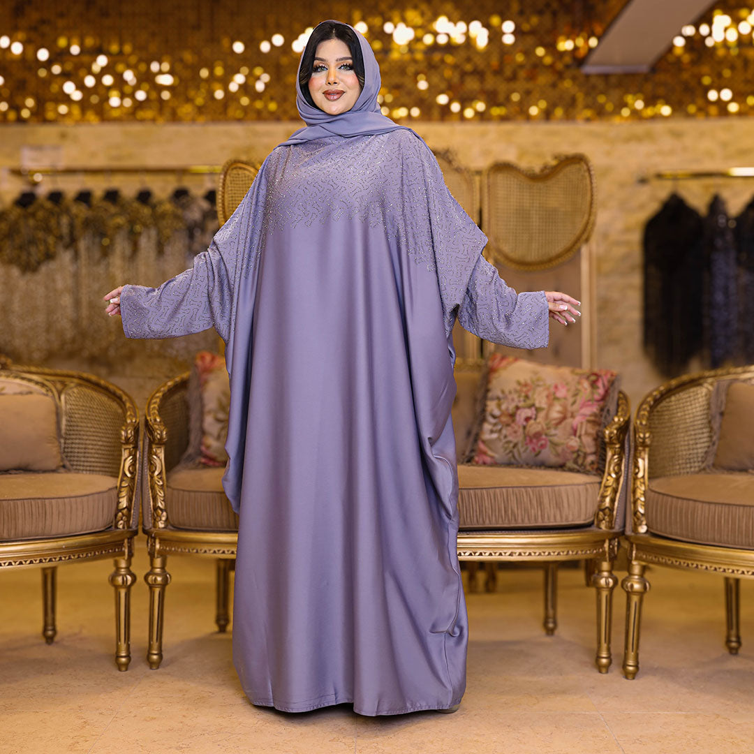 عباية فراشة حرير إماراتي تطريز ستراس فري سايز تناسب ١٠٠ك إلى ١٦٠ك - طرحة منفصلة