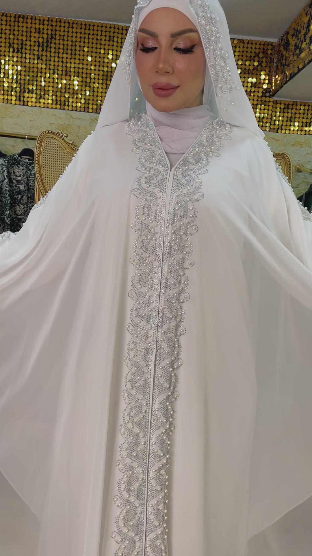 عباية إماراتي تطريز لولي من الكريب الشيفون فري سايز تناسب ٧٠ك إلى ١٠٠ك
