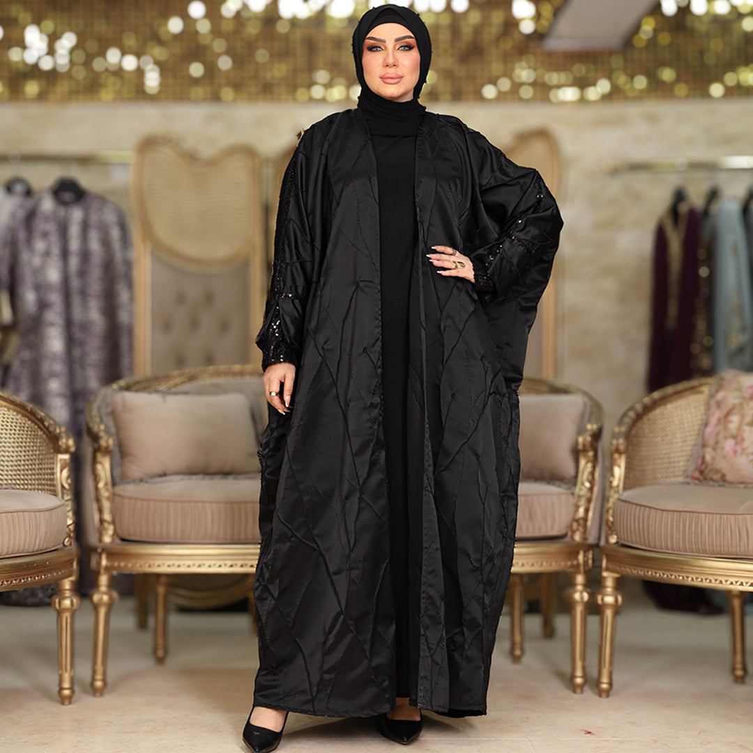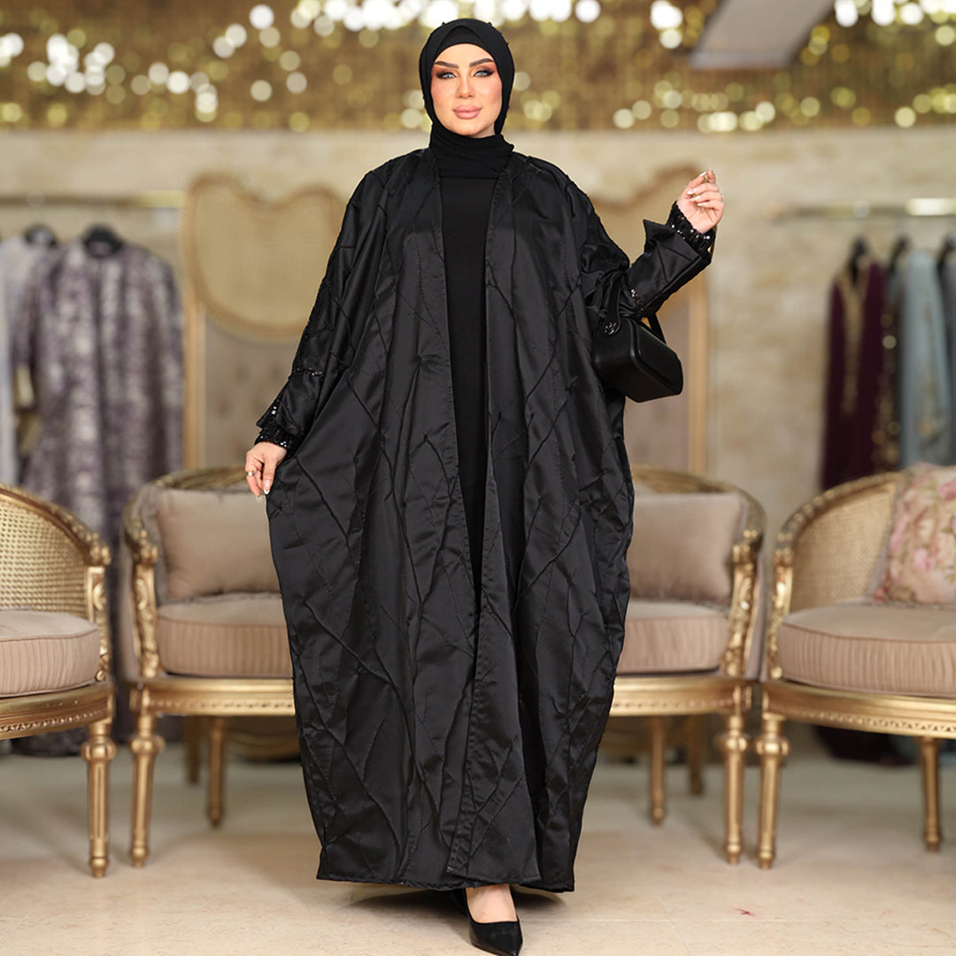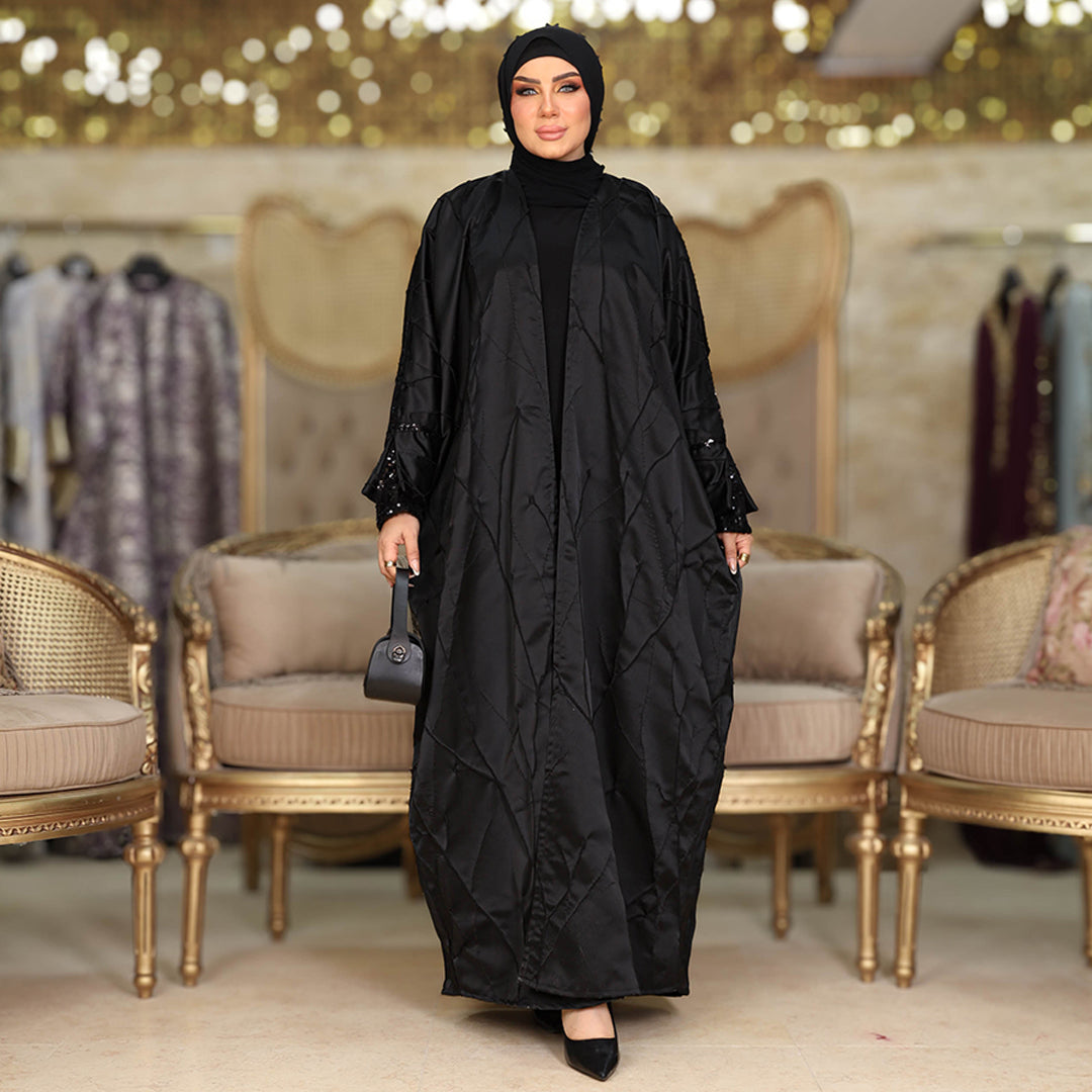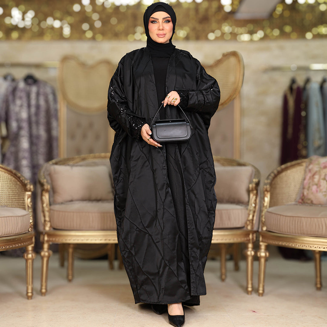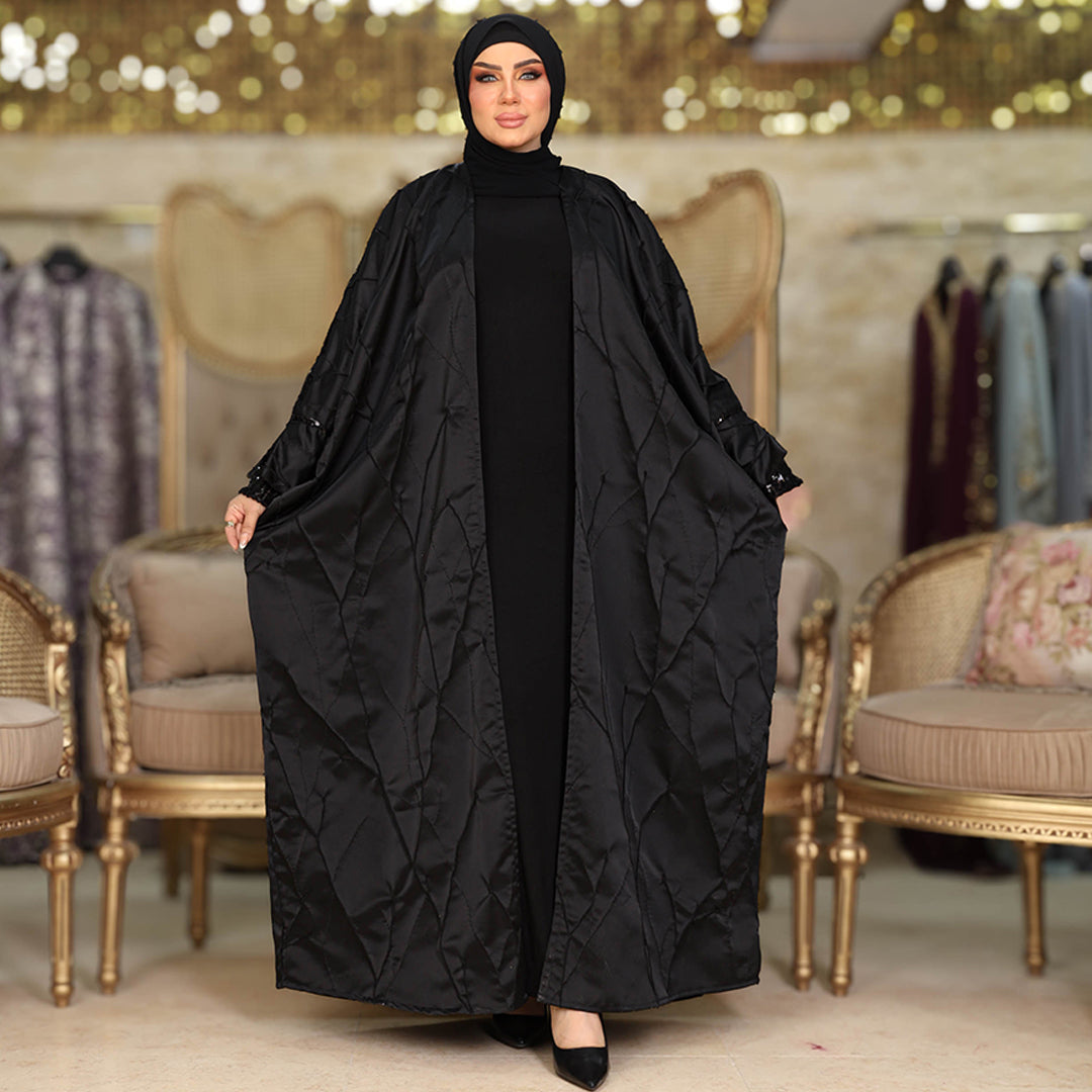 عباية إماراتي سواريه بروكار مطرزة تطريز بارز و أبليك ترتر فري سايز تناسب ٧٠ك إلى ١٢٠ك.