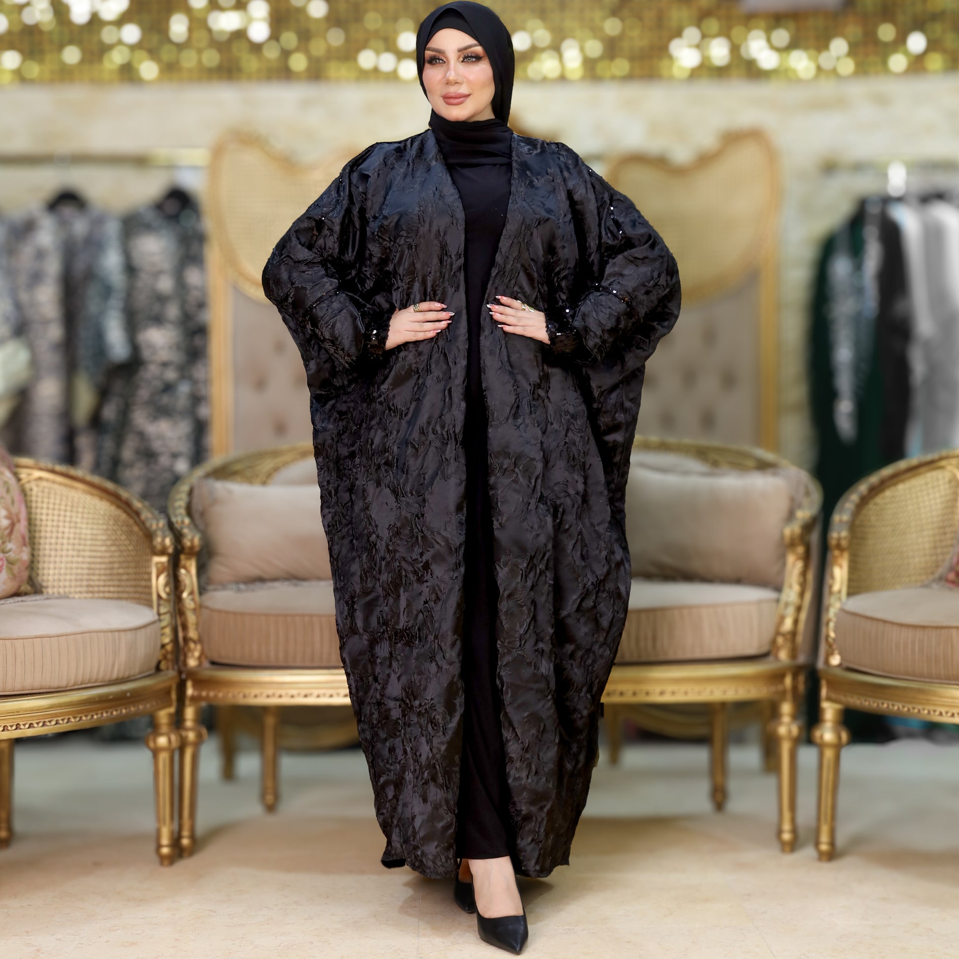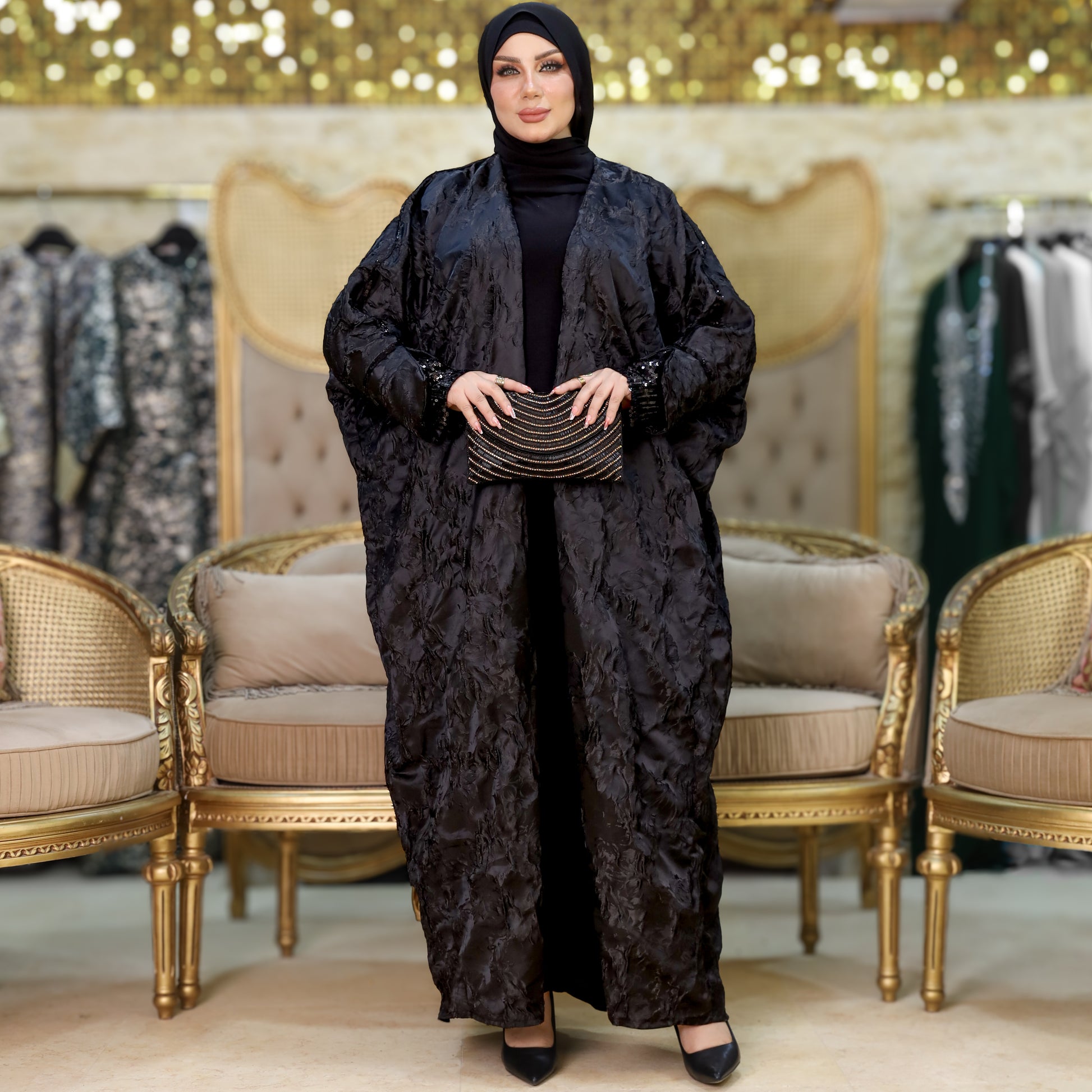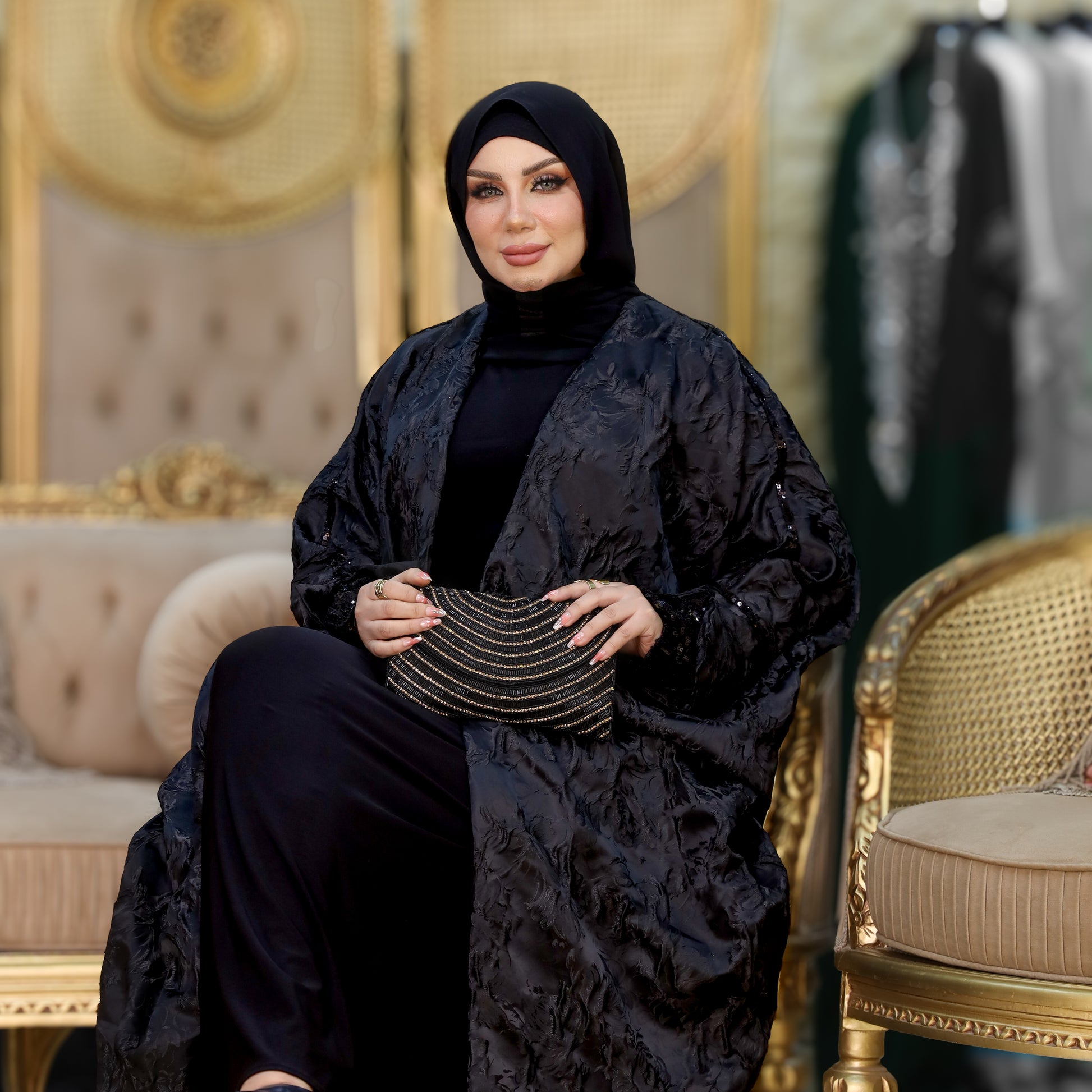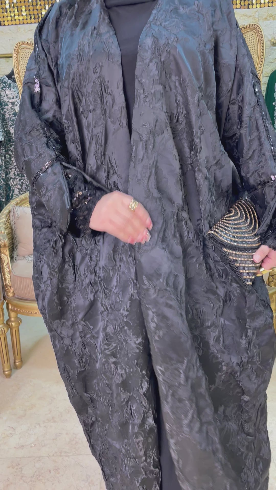 عباية إماراتي سواريه بروكار مطرزة تطريز بارز و أبليك ترتر فري سايز تناسب ٧٠ك إلى ١٢٠ك.