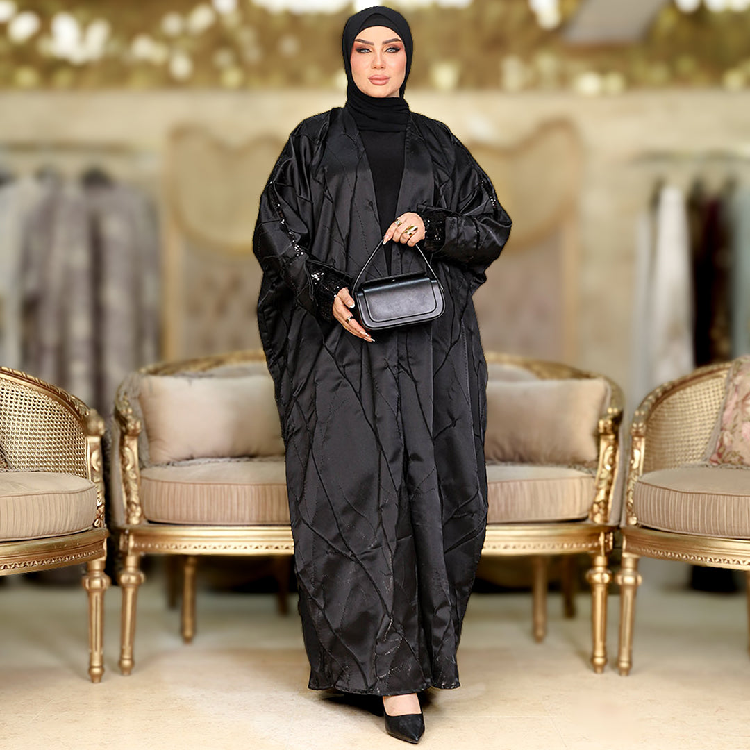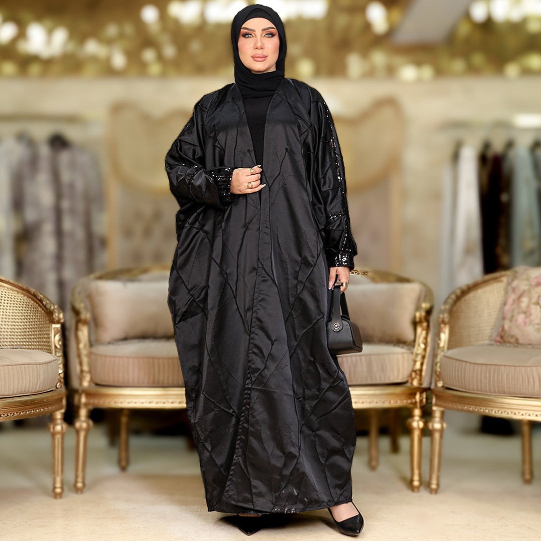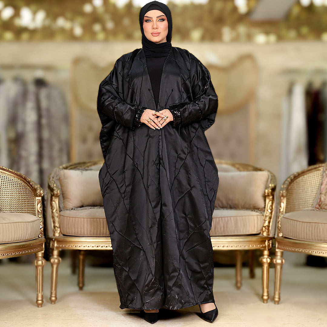 عباية إماراتي سواريه بروكار مطرزة تطريز بارز و أبليك ترتر فري سايز تناسب ٧٠ك إلى ١٢٠ك.