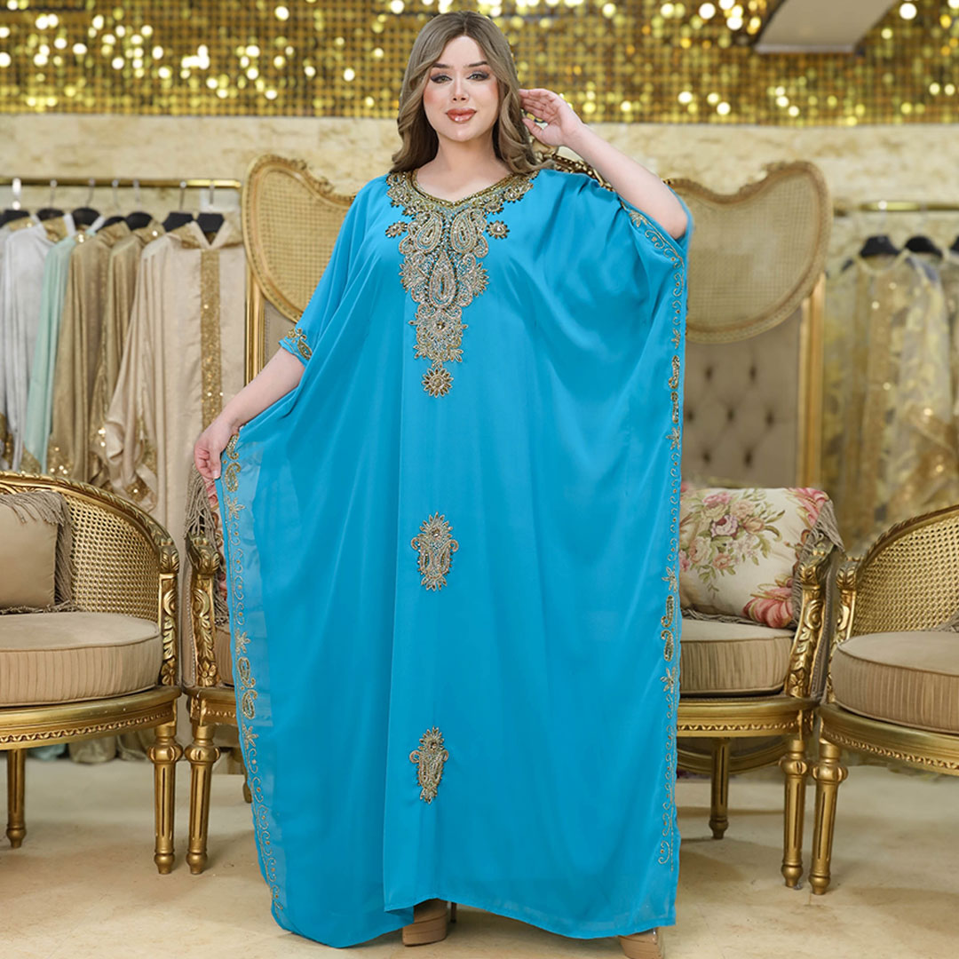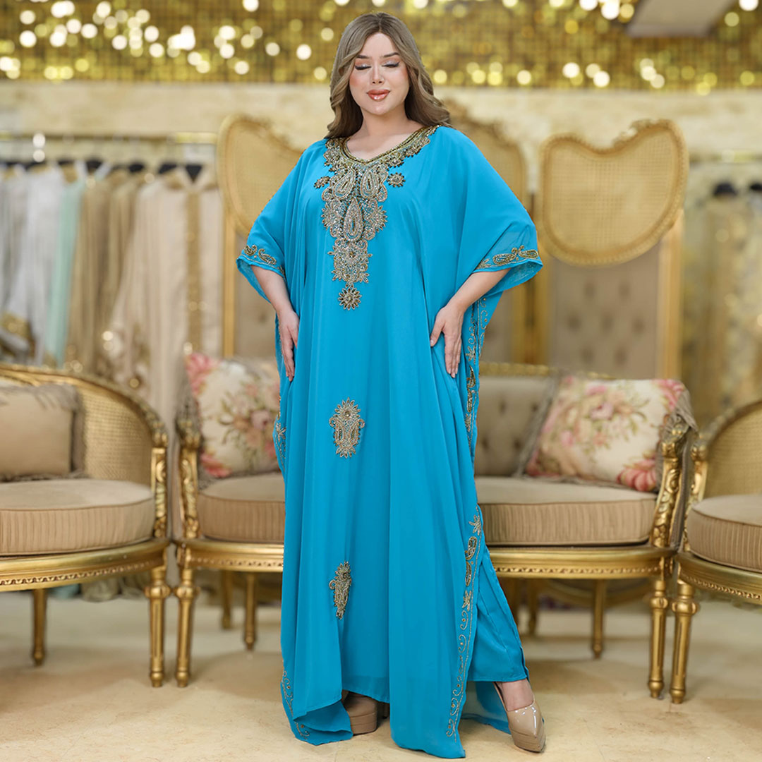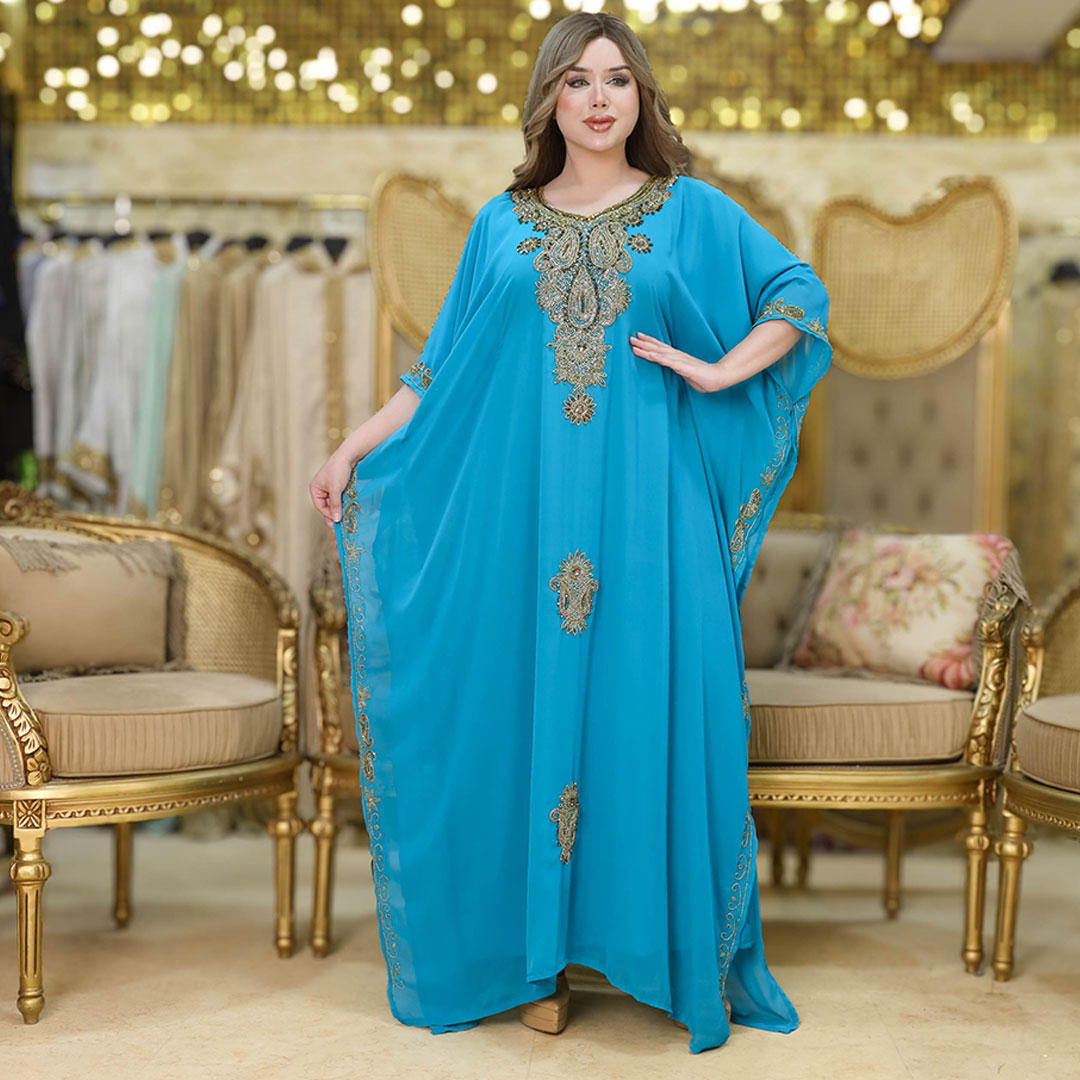 دراعة سواريه مغربي تطريز هاند ميد شيفون + بطانة شيفون فري سايز تناسب ٧٠ك إلى ١٠٠ك