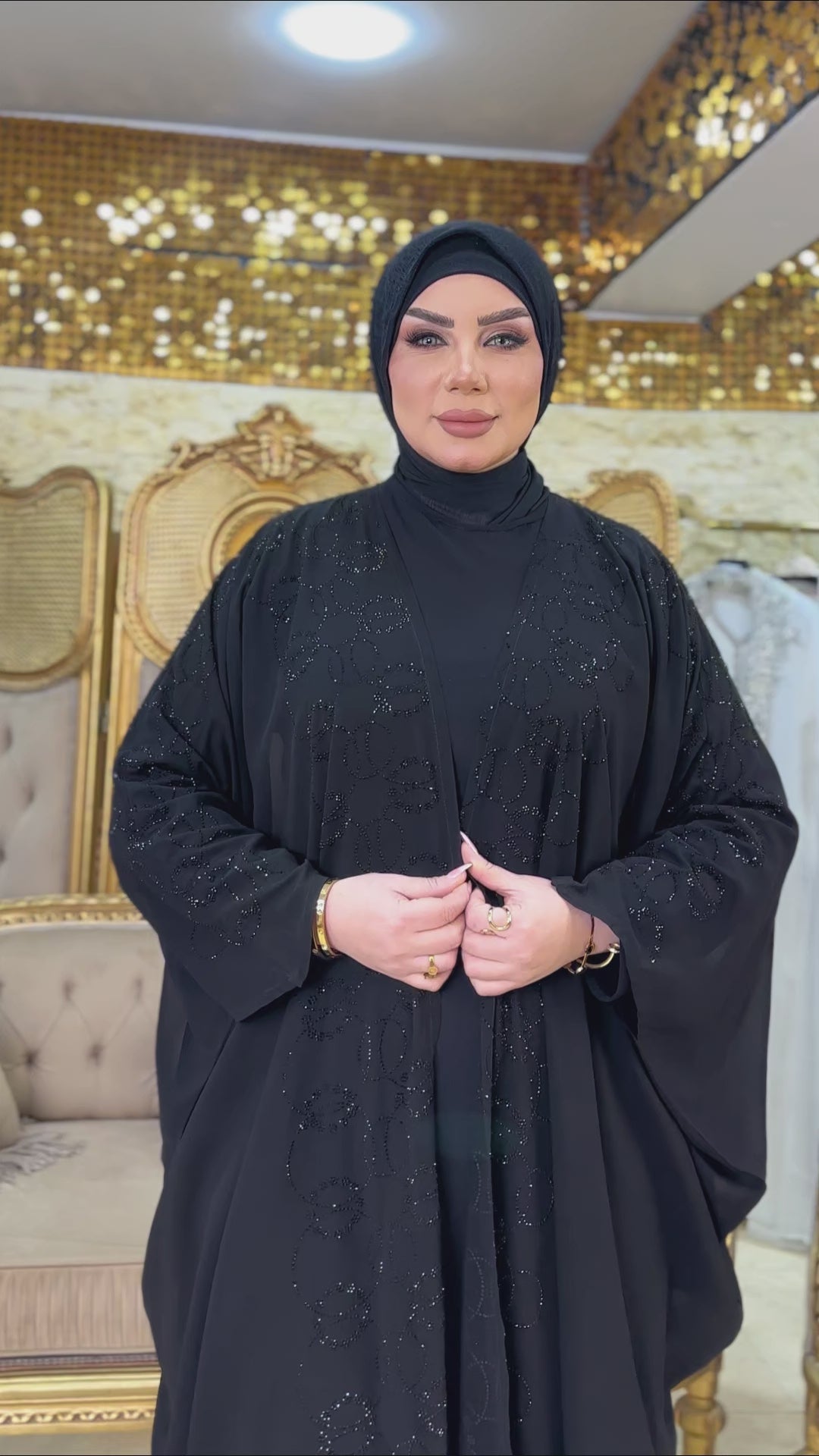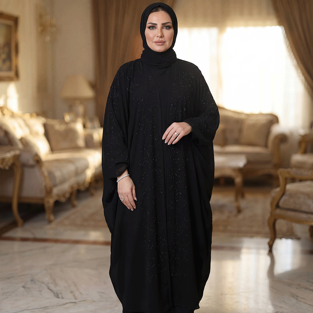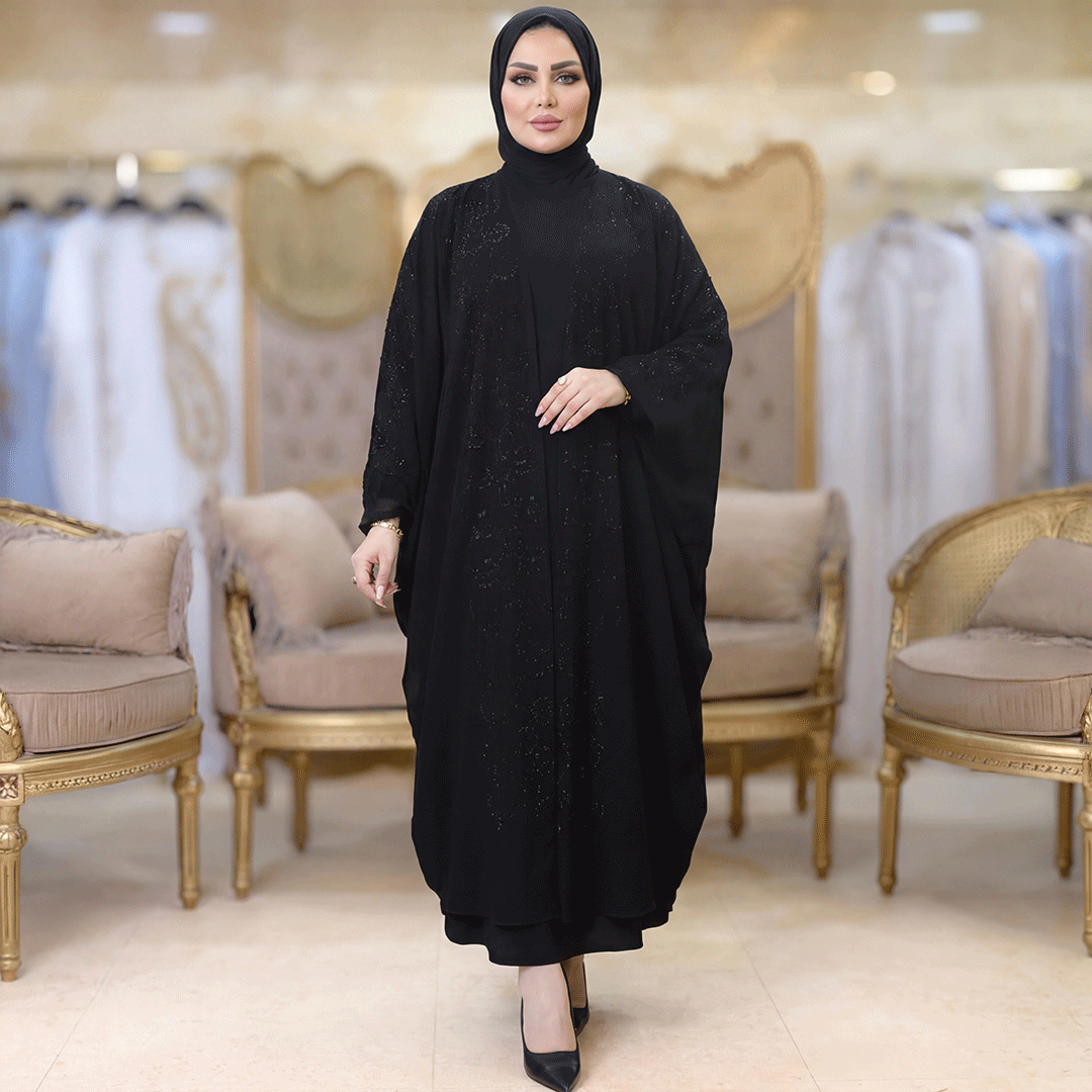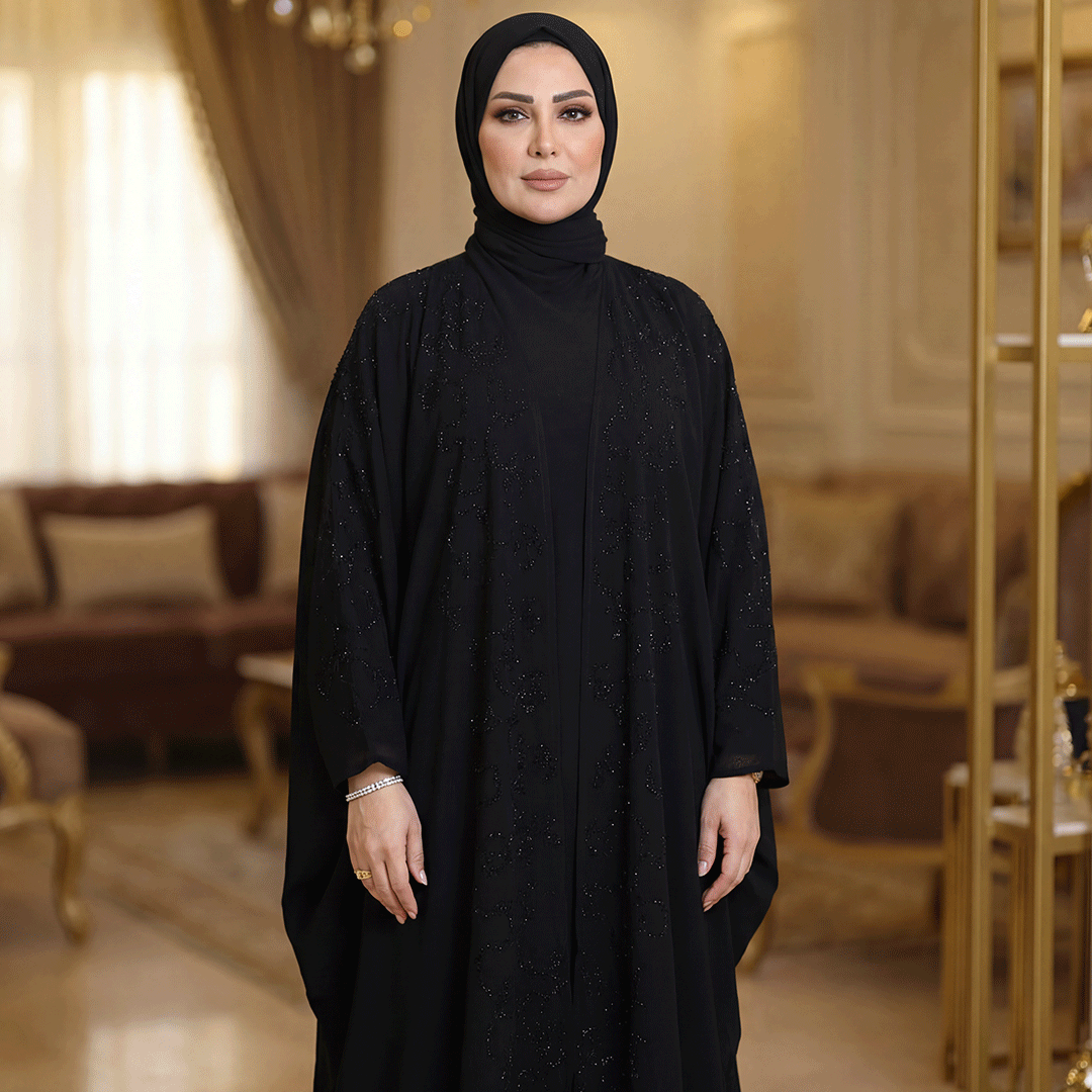 عباية إمارتي الخامه شيفون تطريز استرس