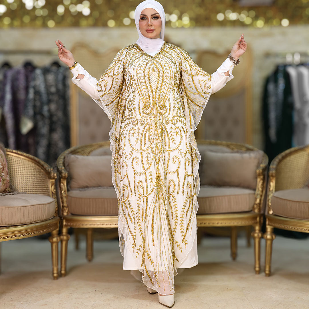 دريس هندي شيفون كريب تطريز هاند ميد فري سايز يناسب ٧٠ك إلى ٩٠ك