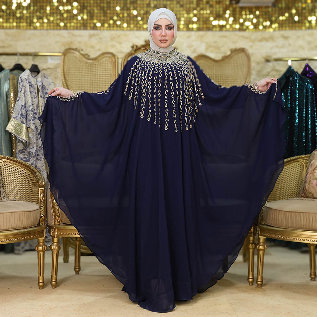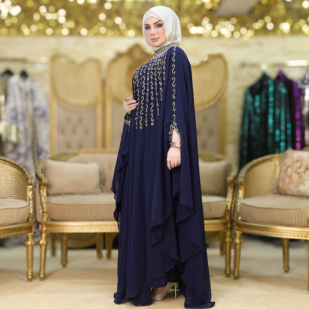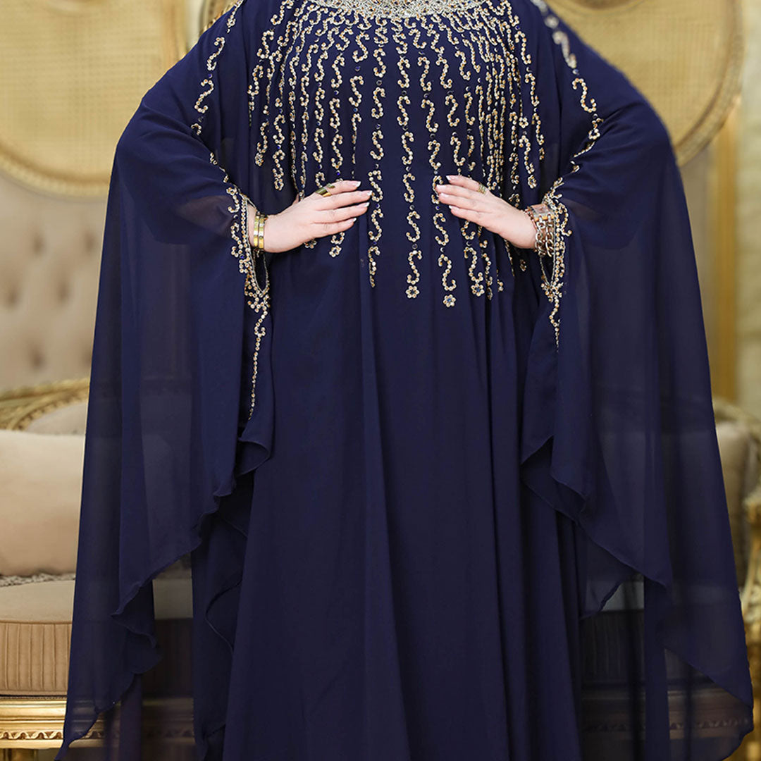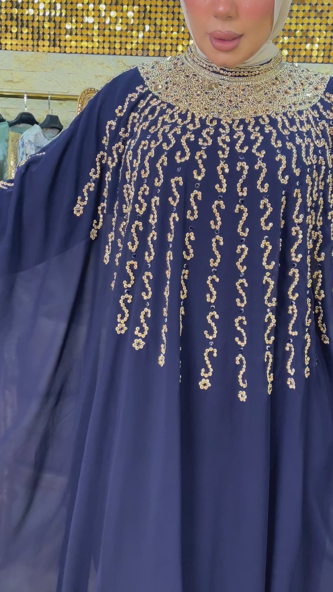 دراعة كويتي تطريز هاند ميد هندي شيفون طبقتين فري سايز تناسب ٧٠ك إلى ١٠٠ك