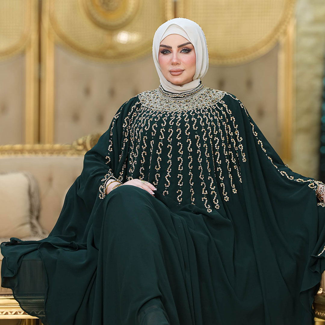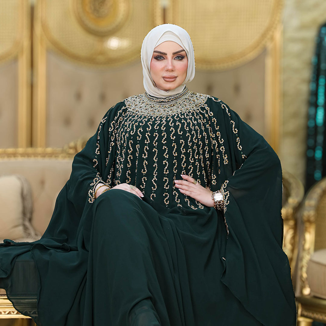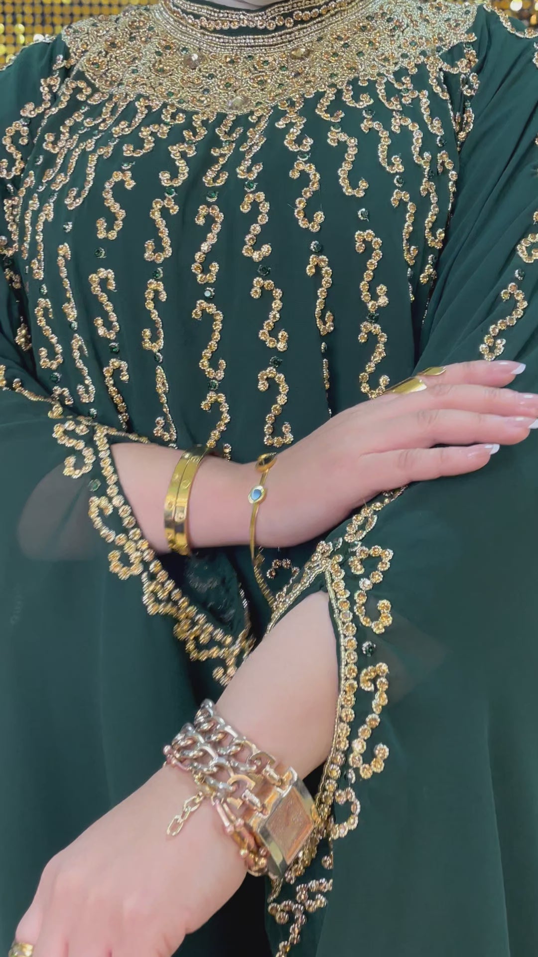 دراعة كويتي تطريز هاند ميد هندي شيفون طبقتين فري سايز تناسب ٧٠ك إلى ١٠٠ك
