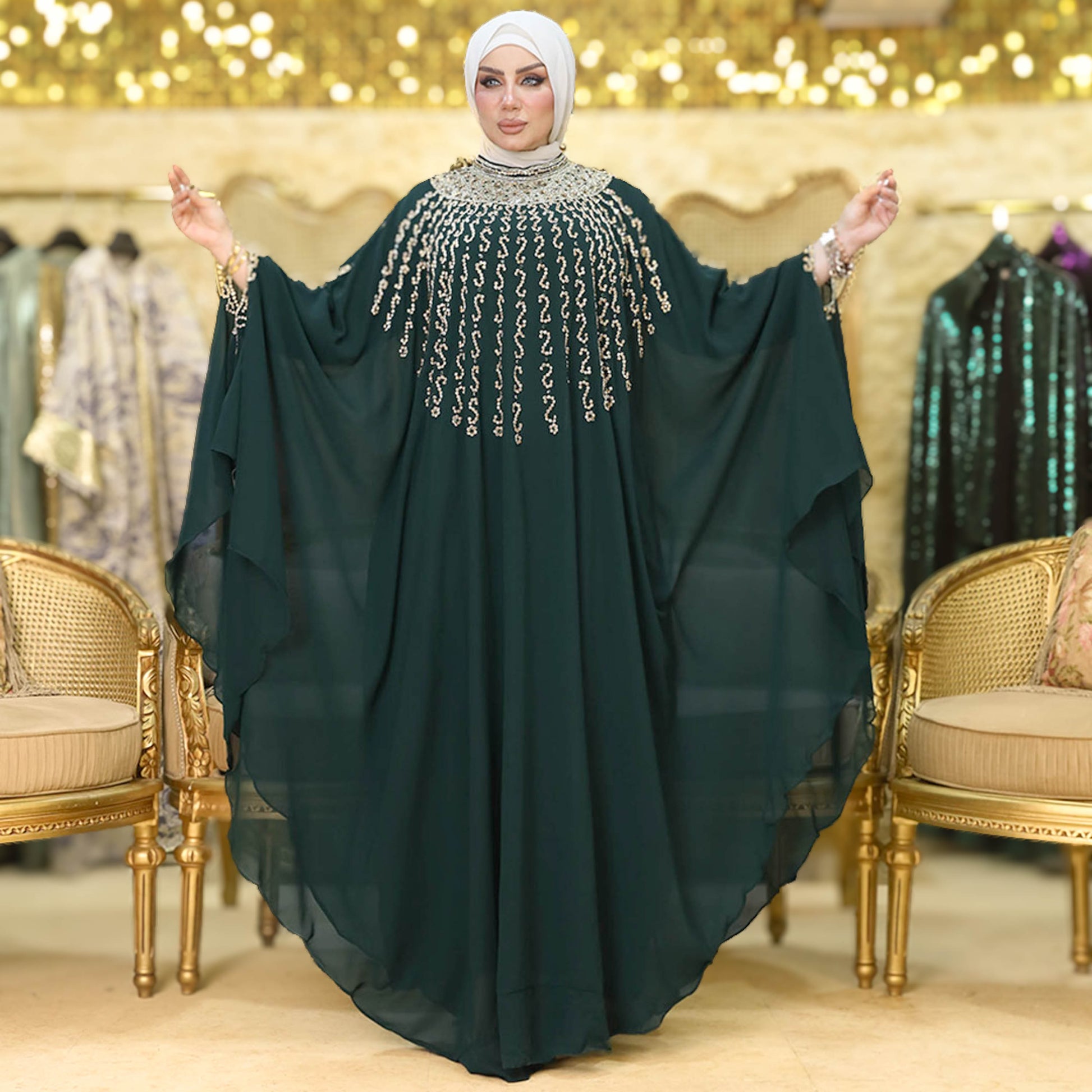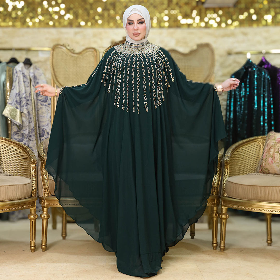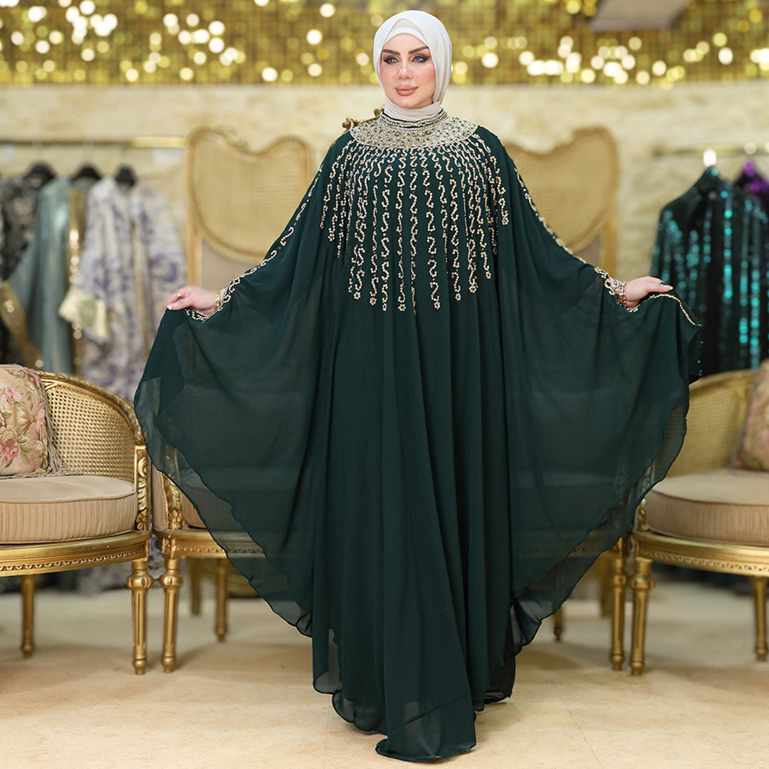 دراعة كويتي تطريز هاند ميد هندي شيفون طبقتين فري سايز تناسب ٧٠ك إلى ١٠٠ك