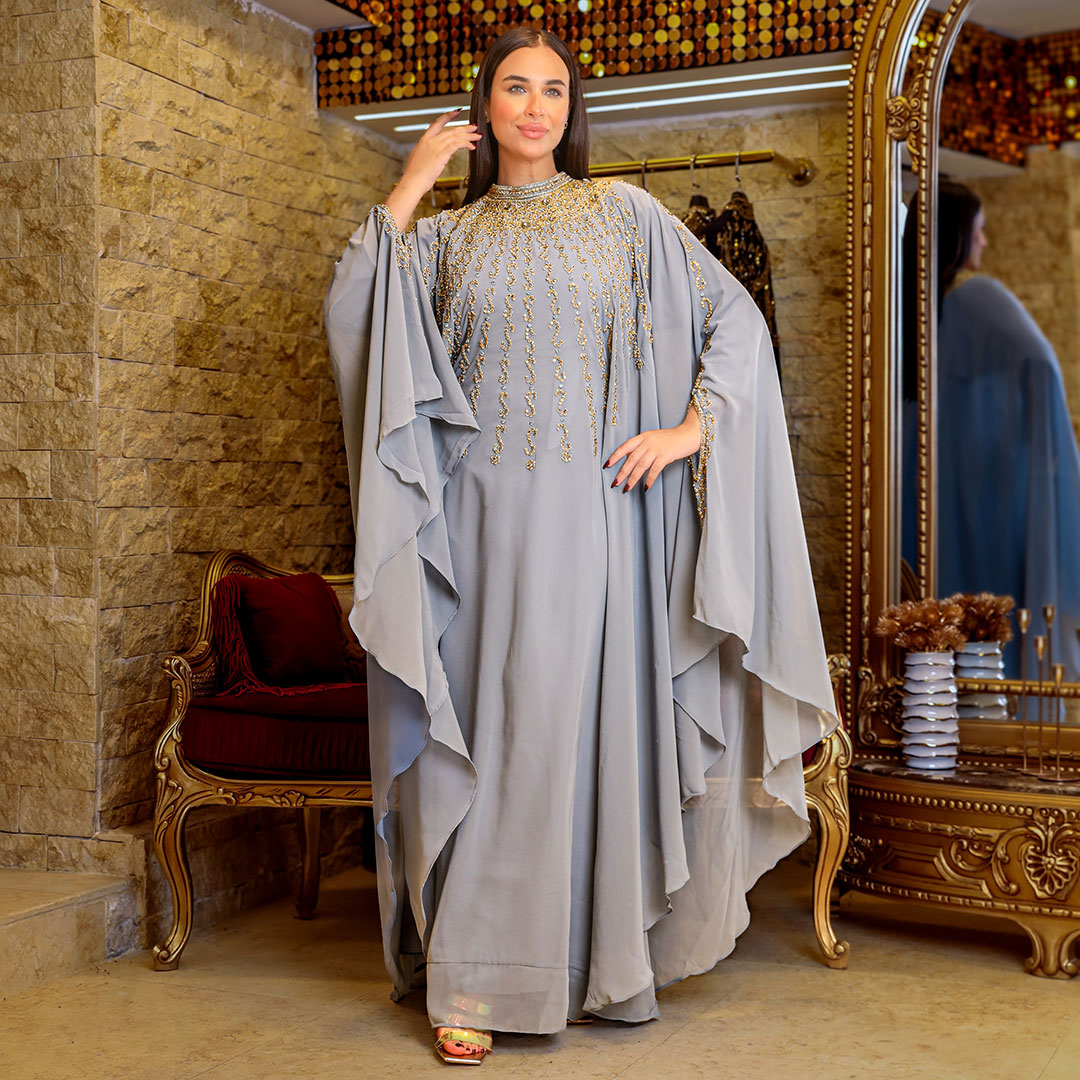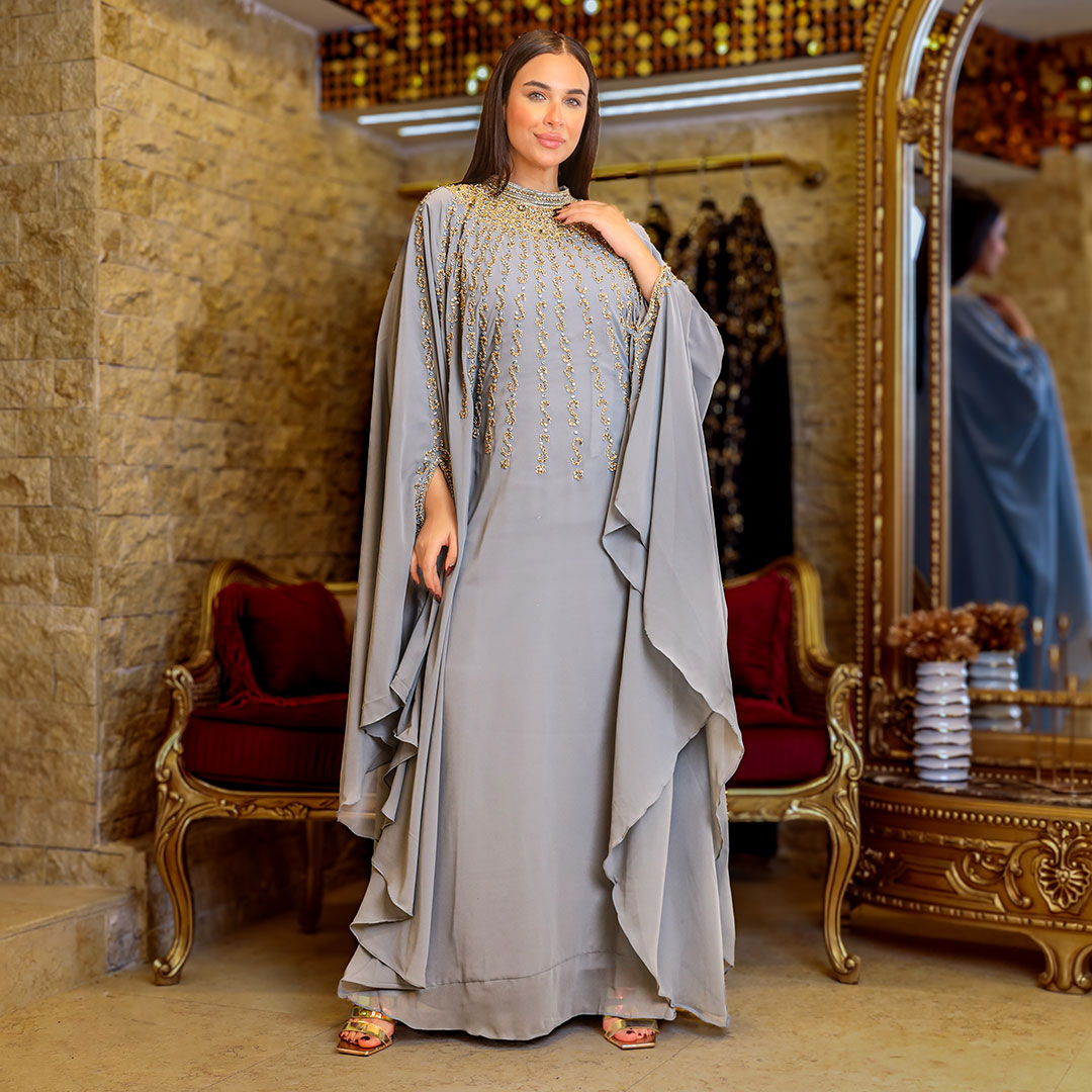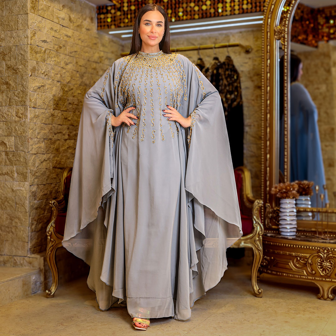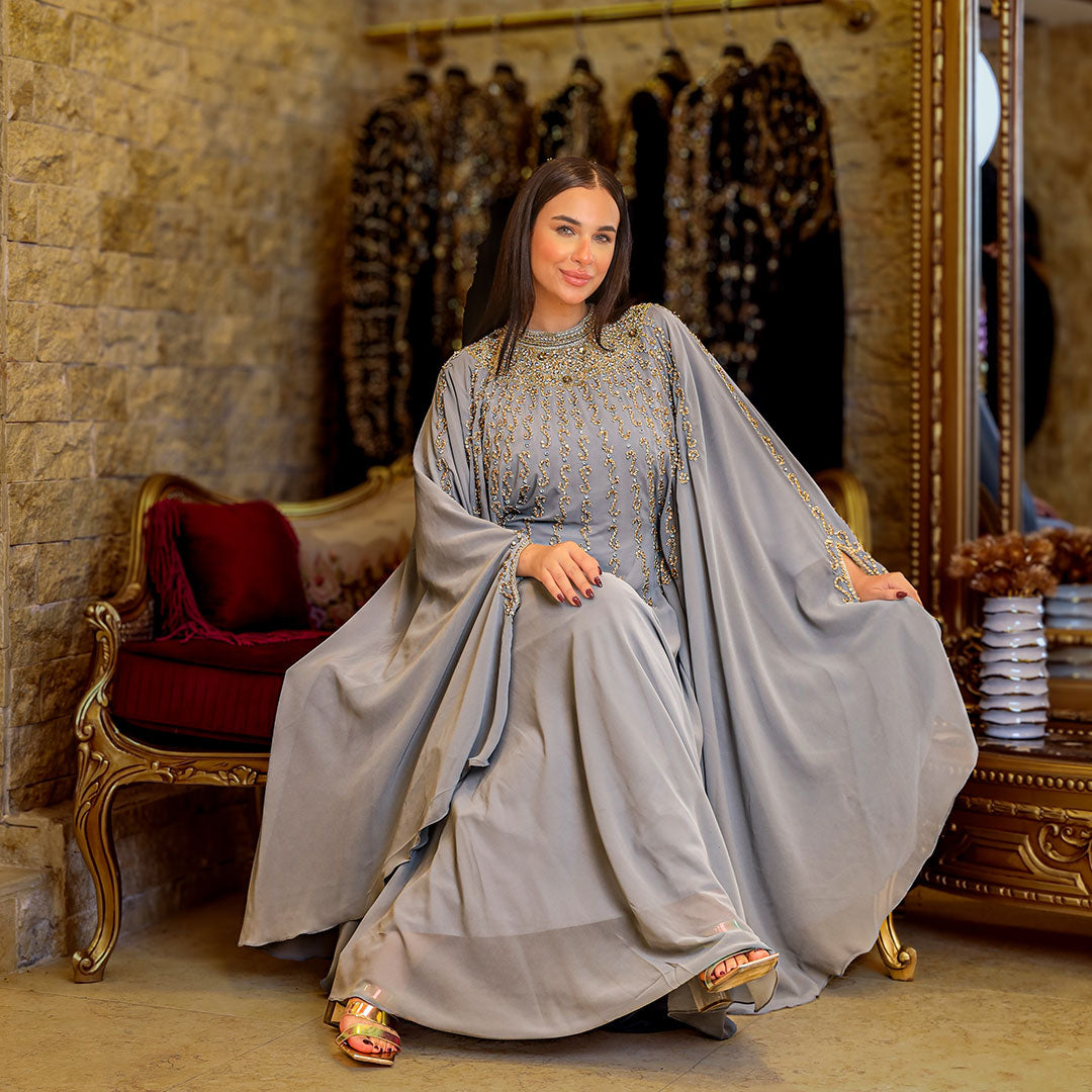 دراعة كويتي تطريز هاند ميد هندي شيفون طبقتين فري سايز تناسب ٧٠ك إلى ١٠٠ك