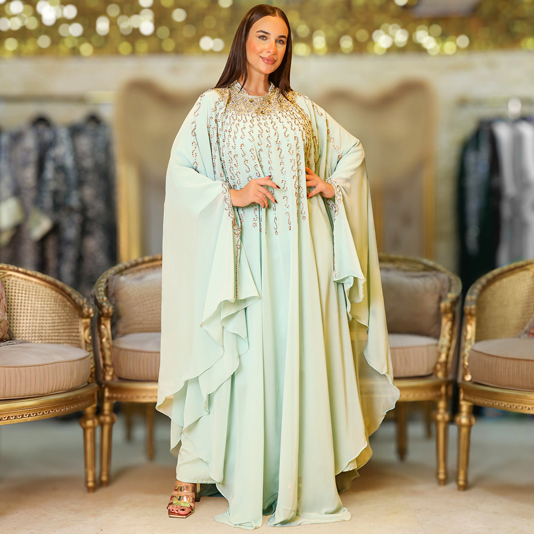 دراعة كويتي تطريز هاند ميد هندي شيفون طبقتين فري سايز تناسب ٧٠ك إلى ١٠٠ك