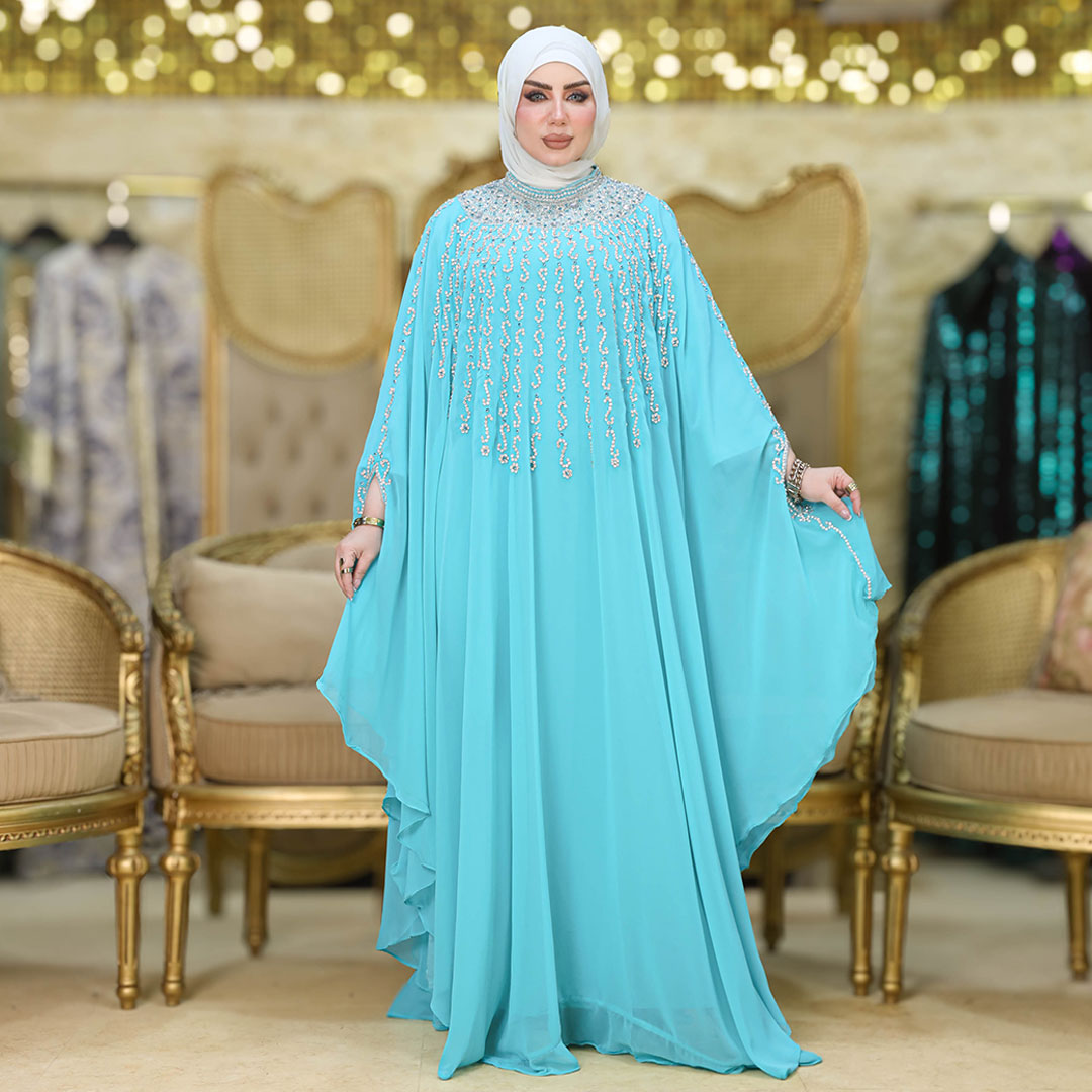 دراعة كويتي تطريز هاند ميد هندي شيفون طبقتين فري سايز تناسب ٧٠ك إلى ١٠٠ك