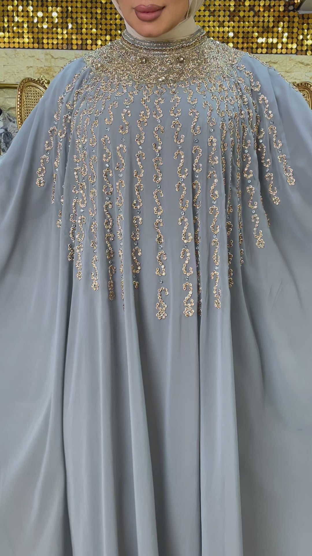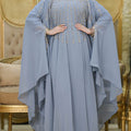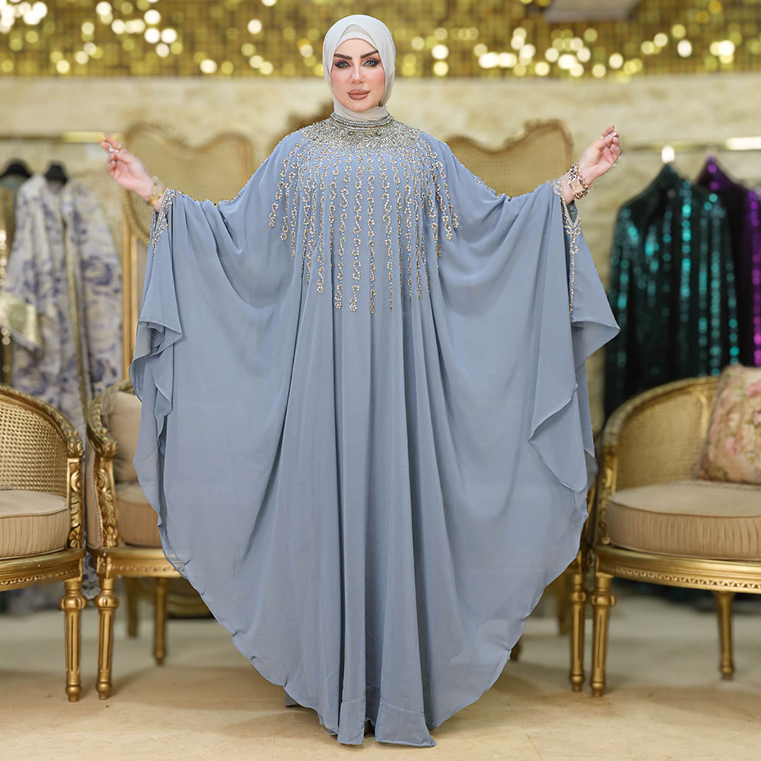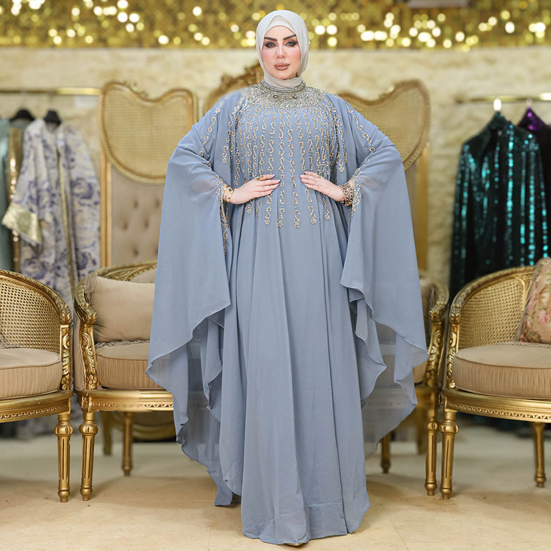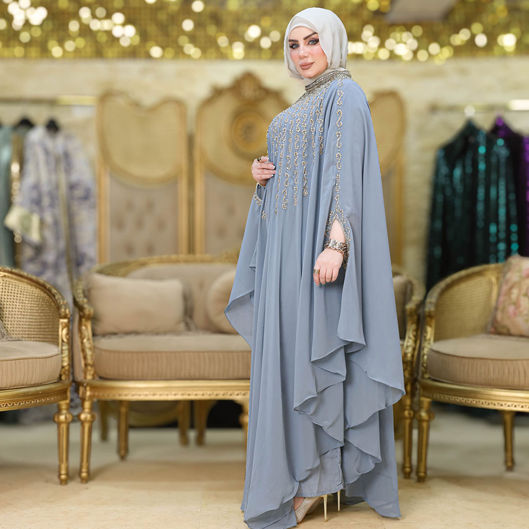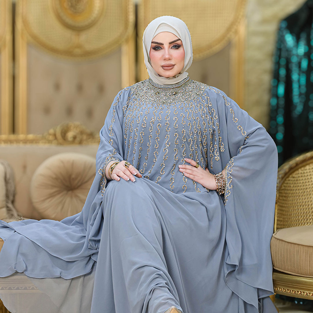 دراعة كويتي تطريز هاند ميد هندي شيفون طبقتين فري سايز تناسب ٧٠ك إلى ١٠٠ك