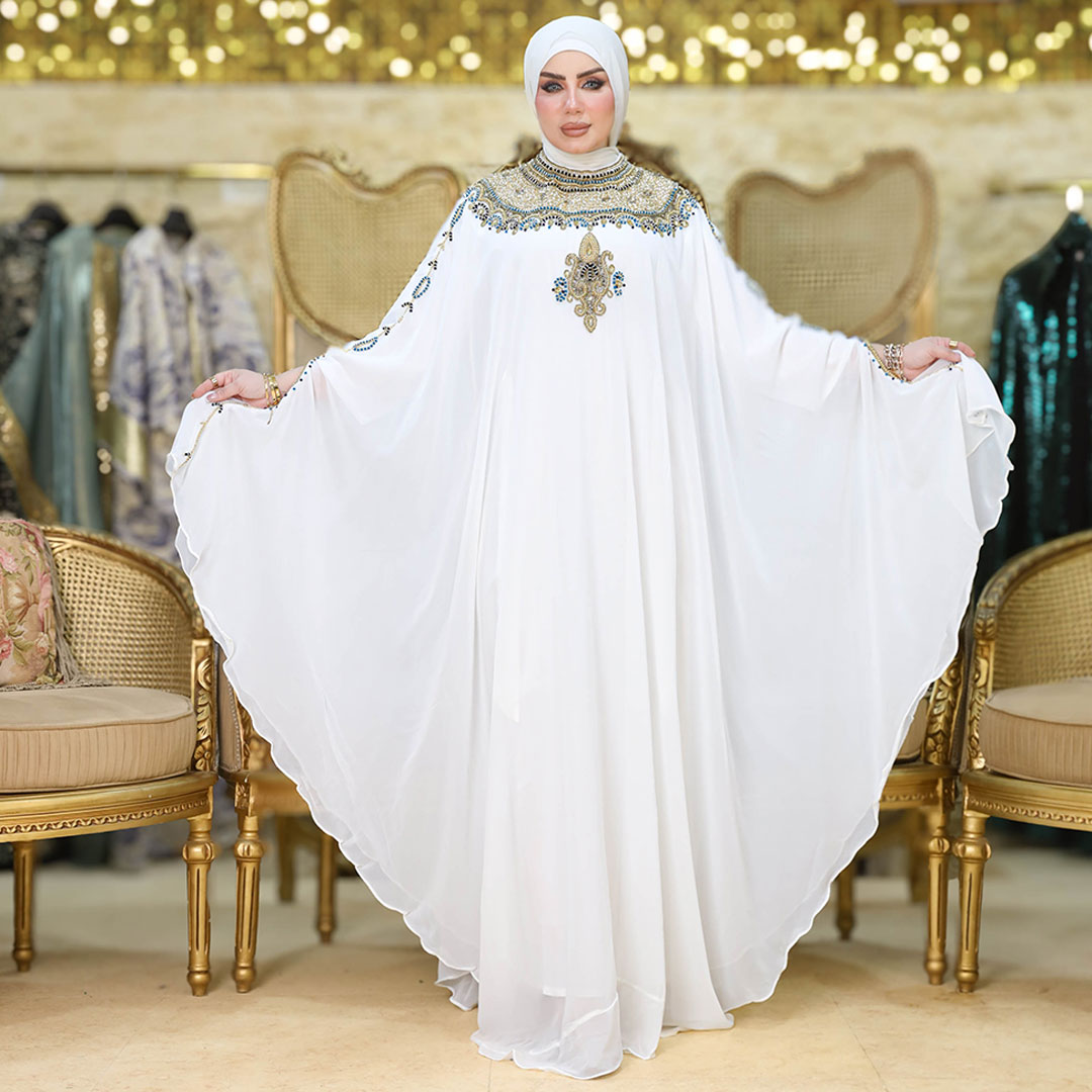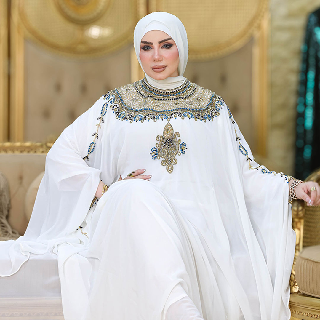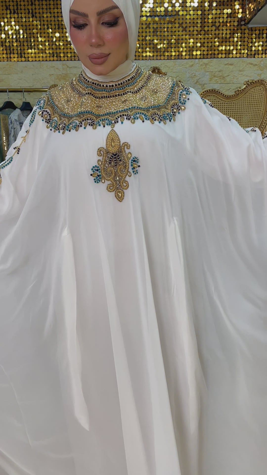دراعة كويتي تطريز هاند ميد هندي شيفون طبقتين فري سايز تناسب ٧٠ك إلى ١٠٠ك
