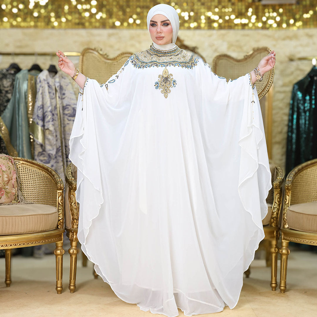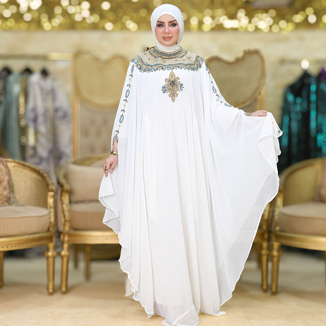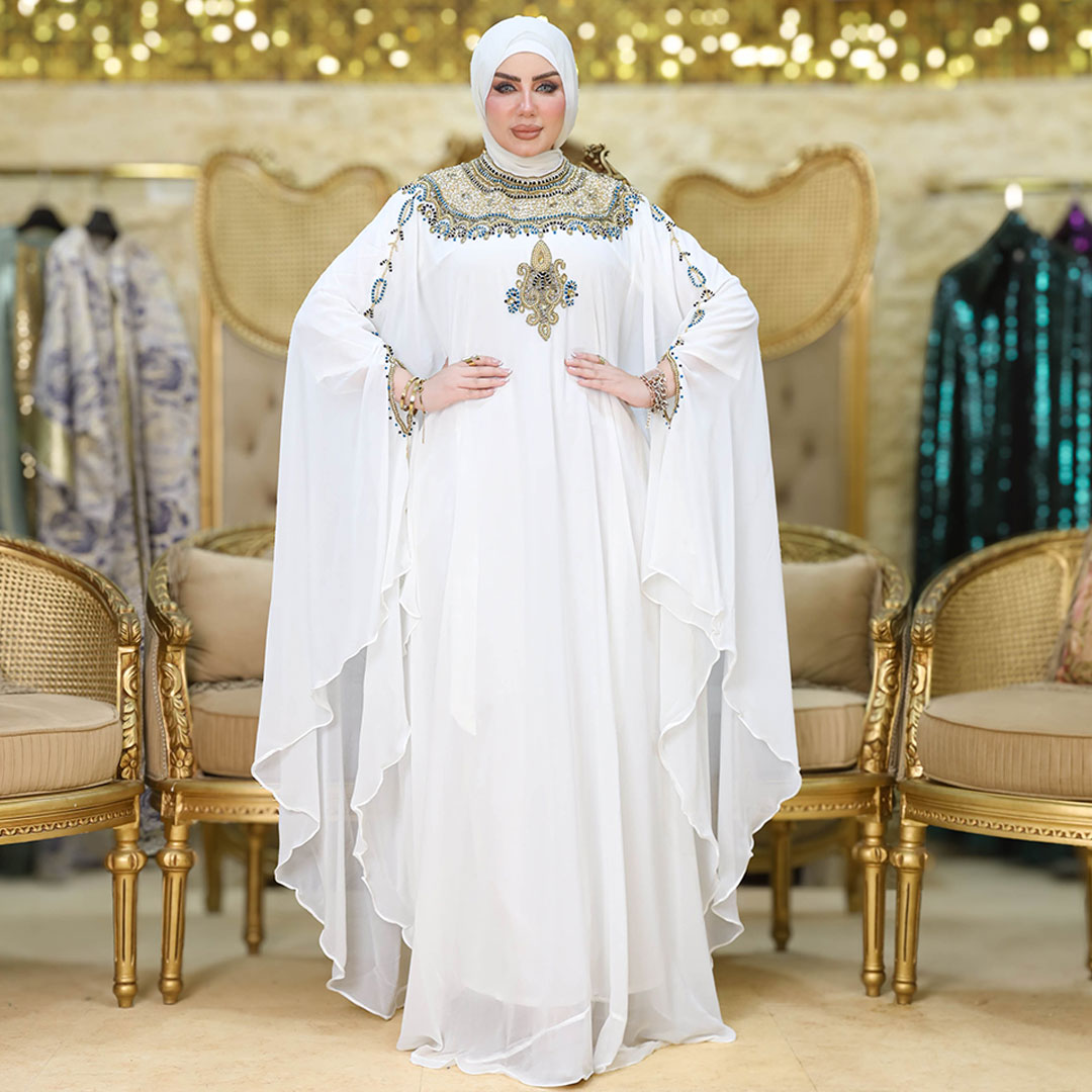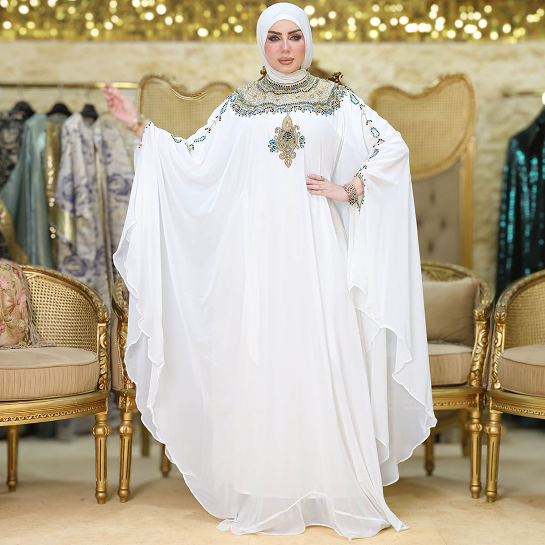 دراعة كويتي تطريز هاند ميد هندي شيفون طبقتين فري سايز تناسب ٧٠ك إلى ١٠٠ك