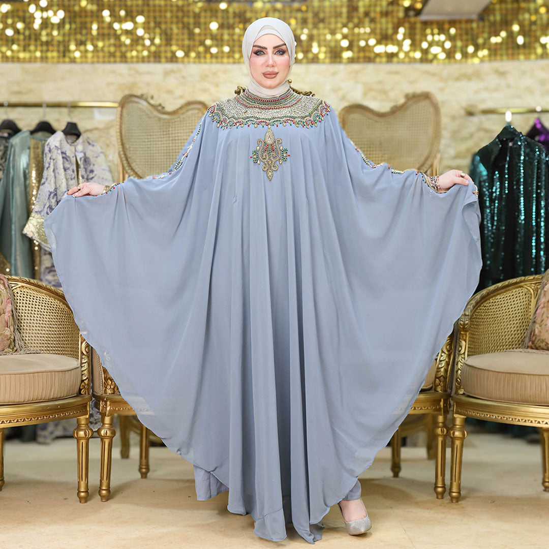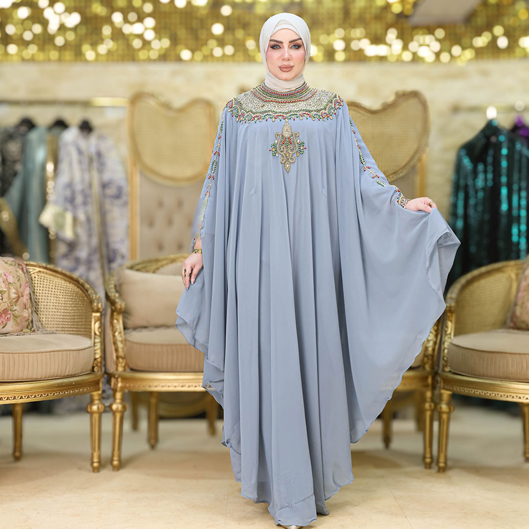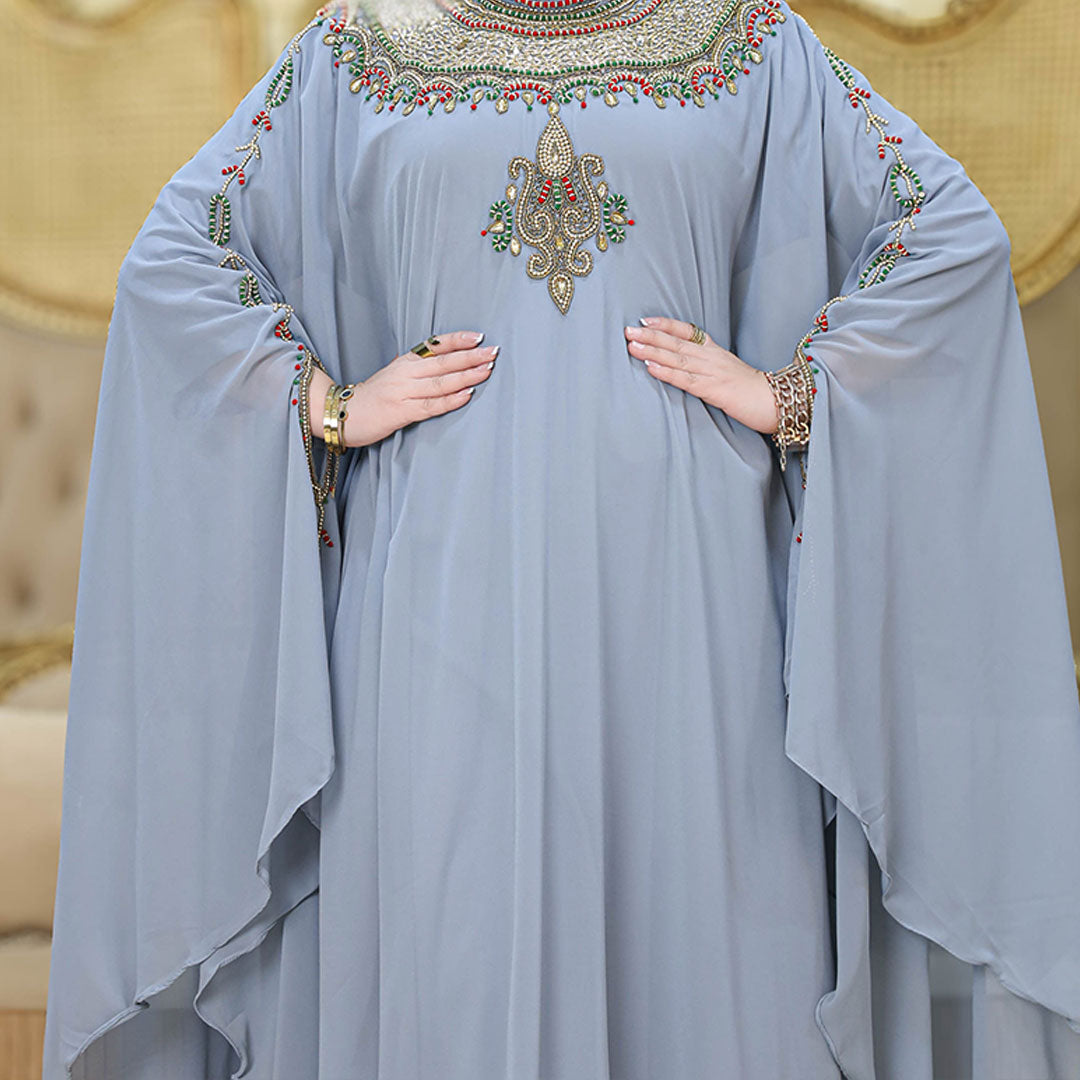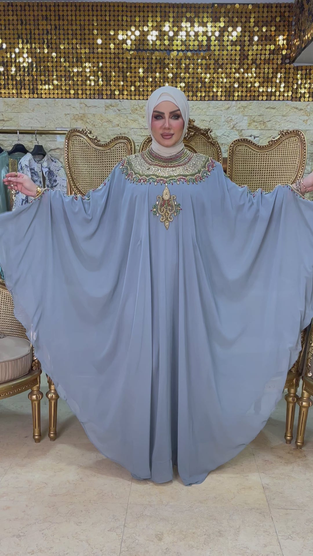 دراعة كويتي تطريز هاند ميد هندي شيفون طبقتين فري سايز تناسب ٧٠ك إلى ١٠٠ك