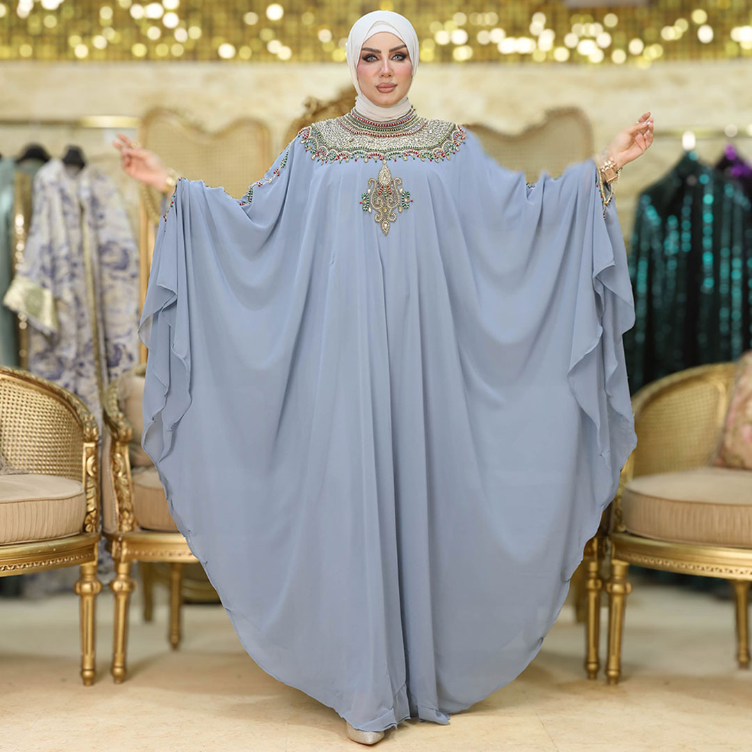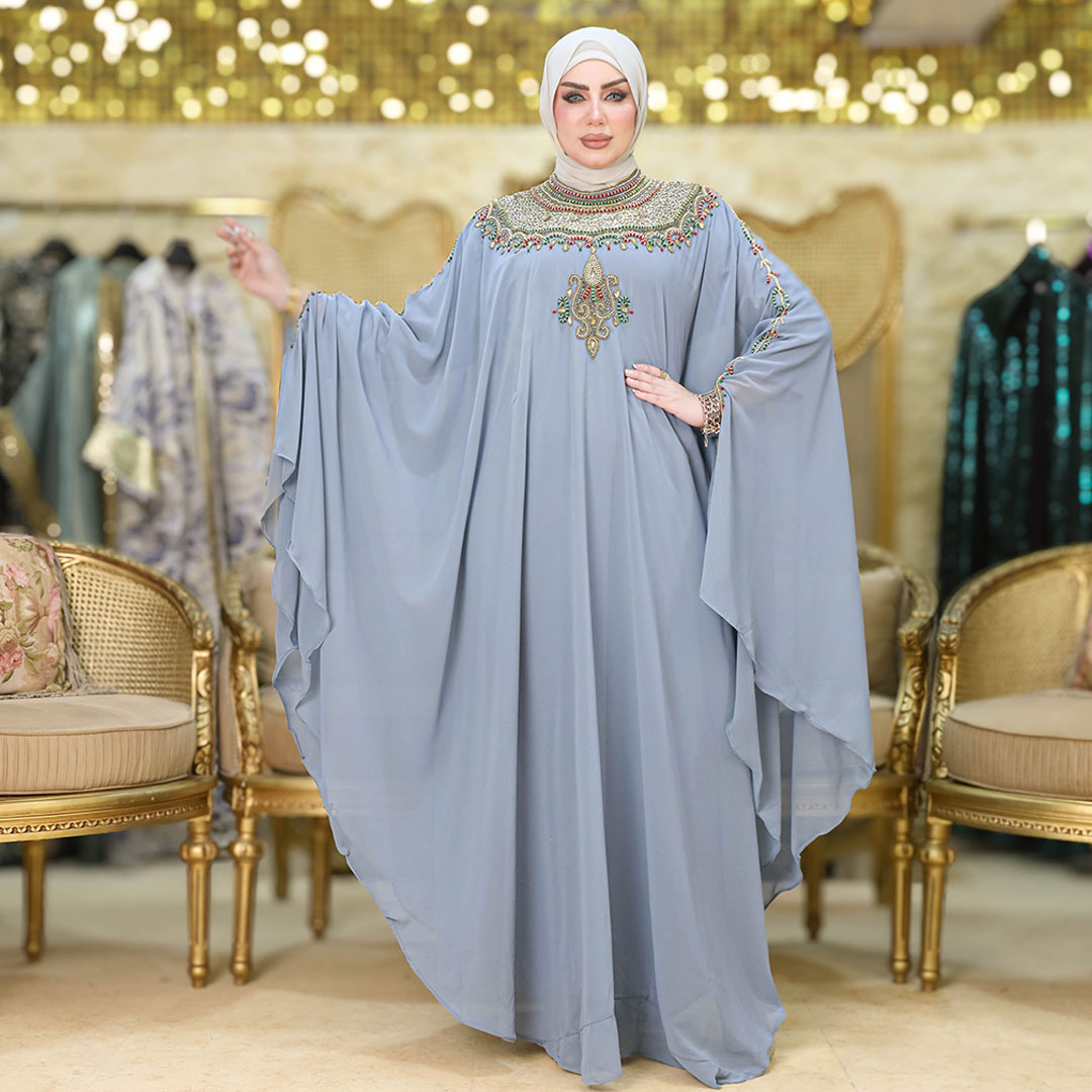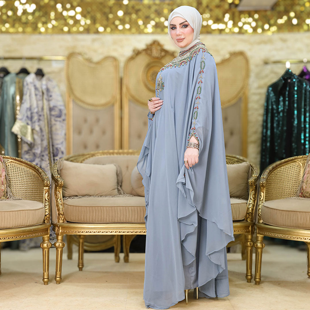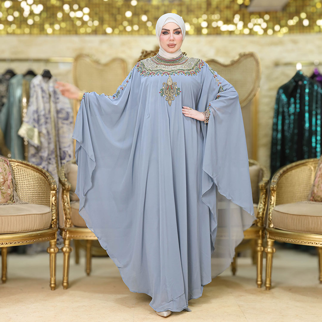 دراعة كويتي تطريز هاند ميد هندي شيفون طبقتين فري سايز تناسب ٧٠ك إلى ١٠٠ك