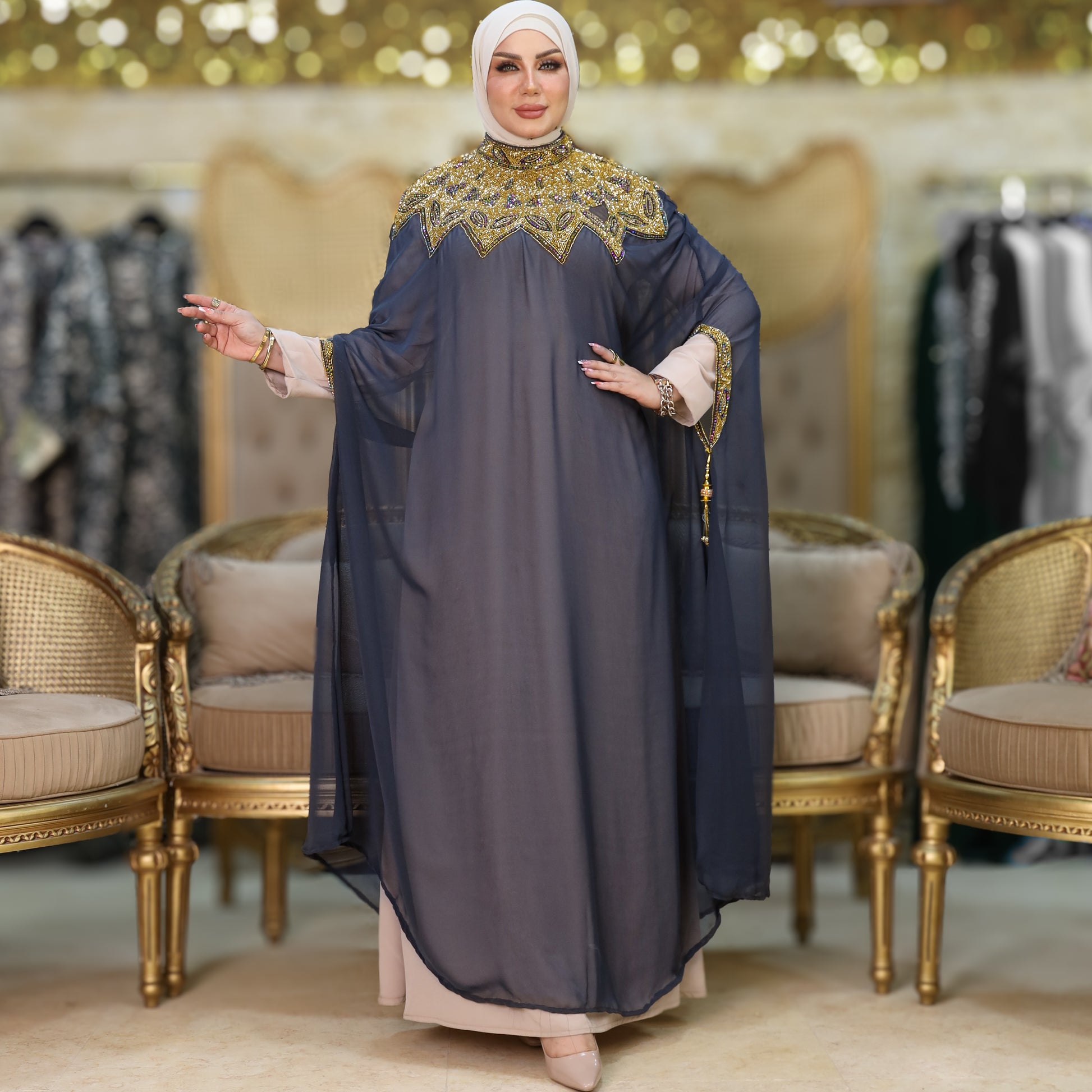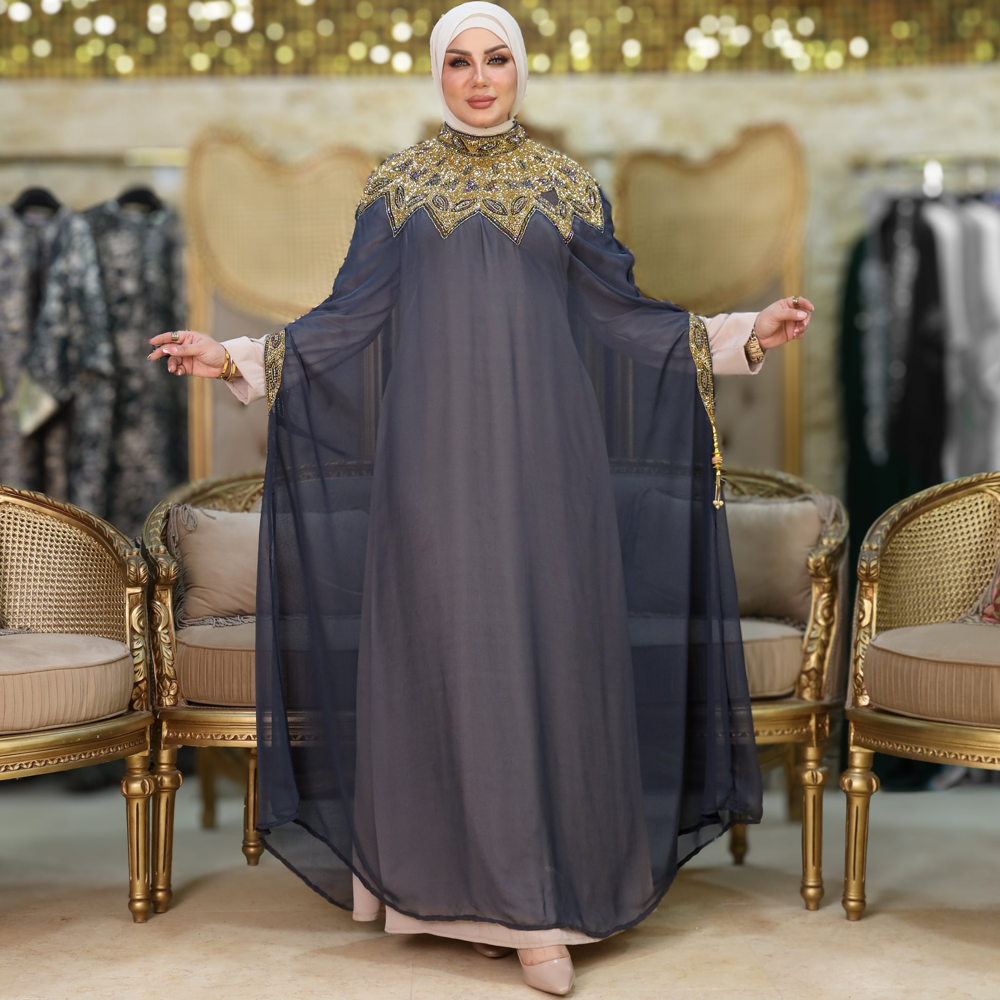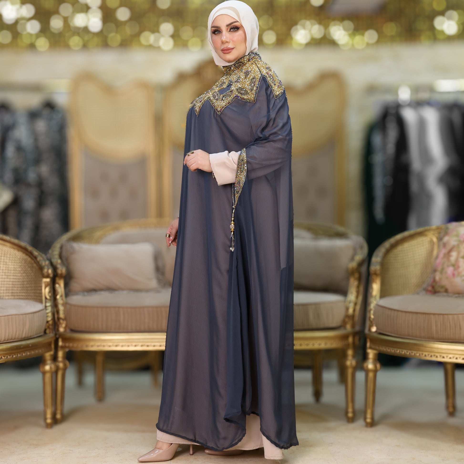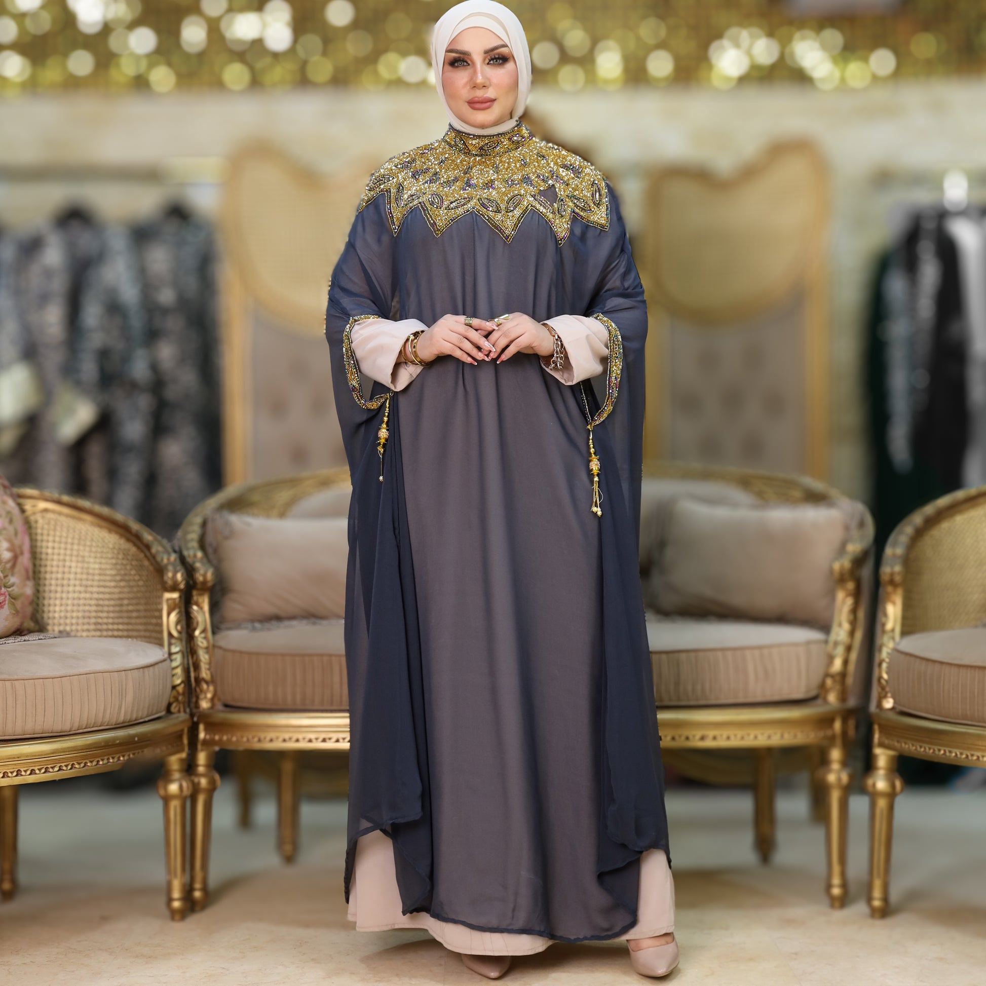دراعة كويتي تطريز هاند ميد هندي شيفون طبقتين فري سايز تناسب ٧٠ك إلى ١٠٠ك
