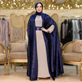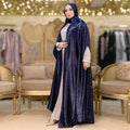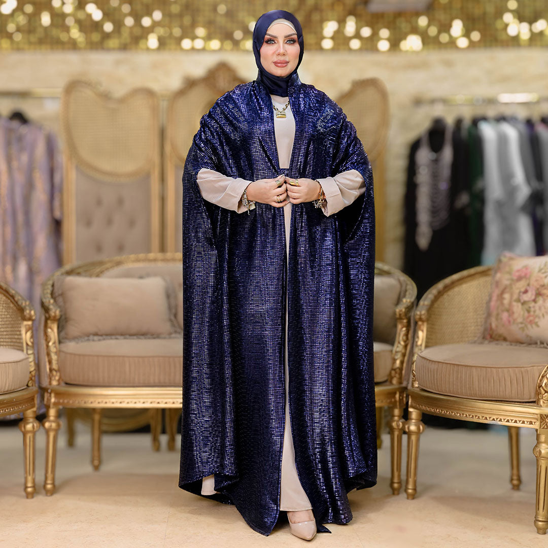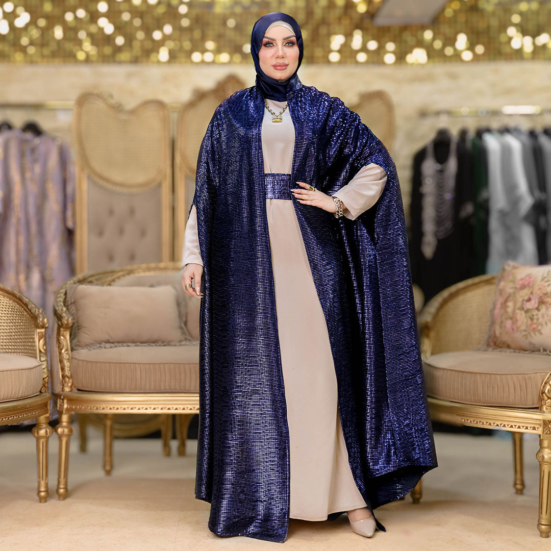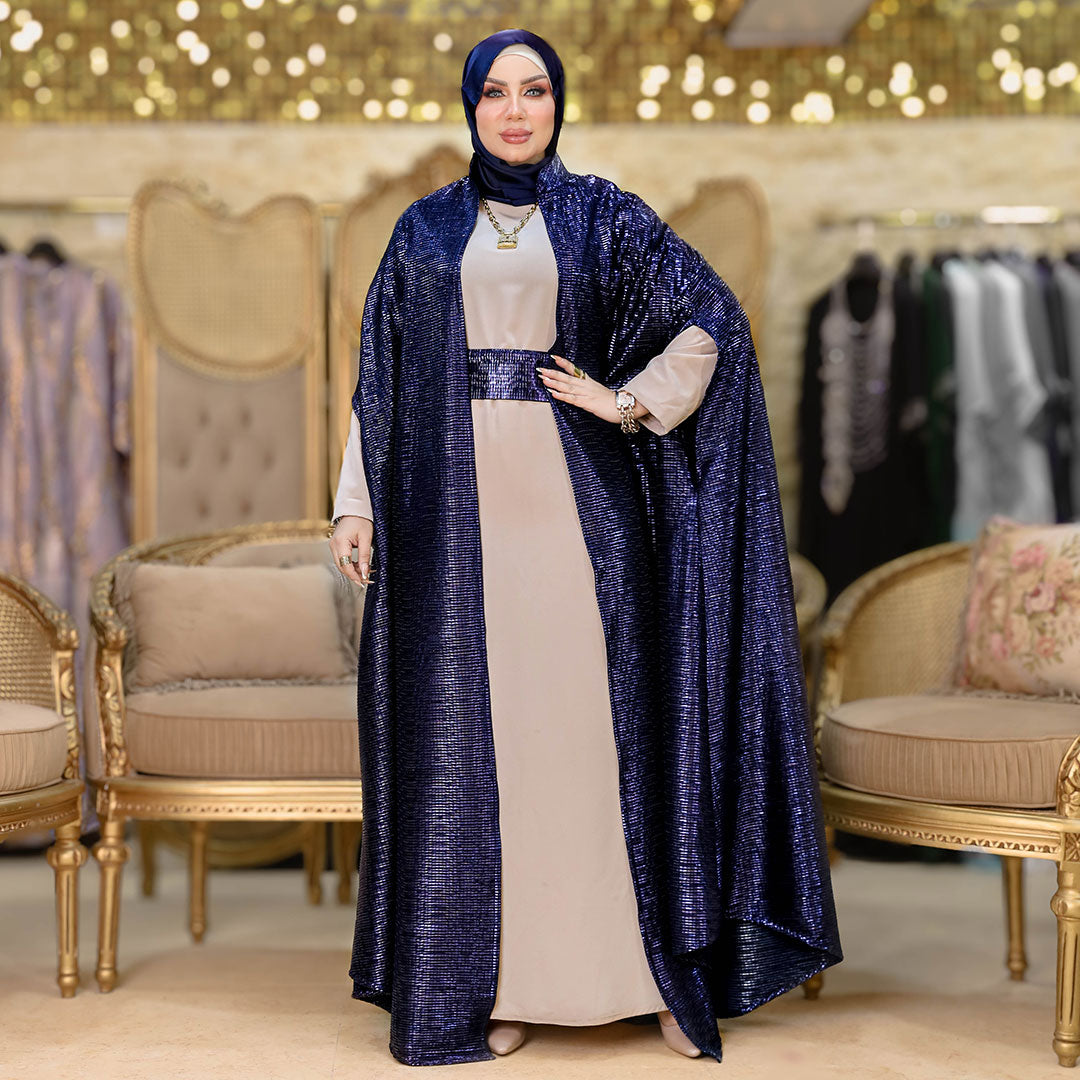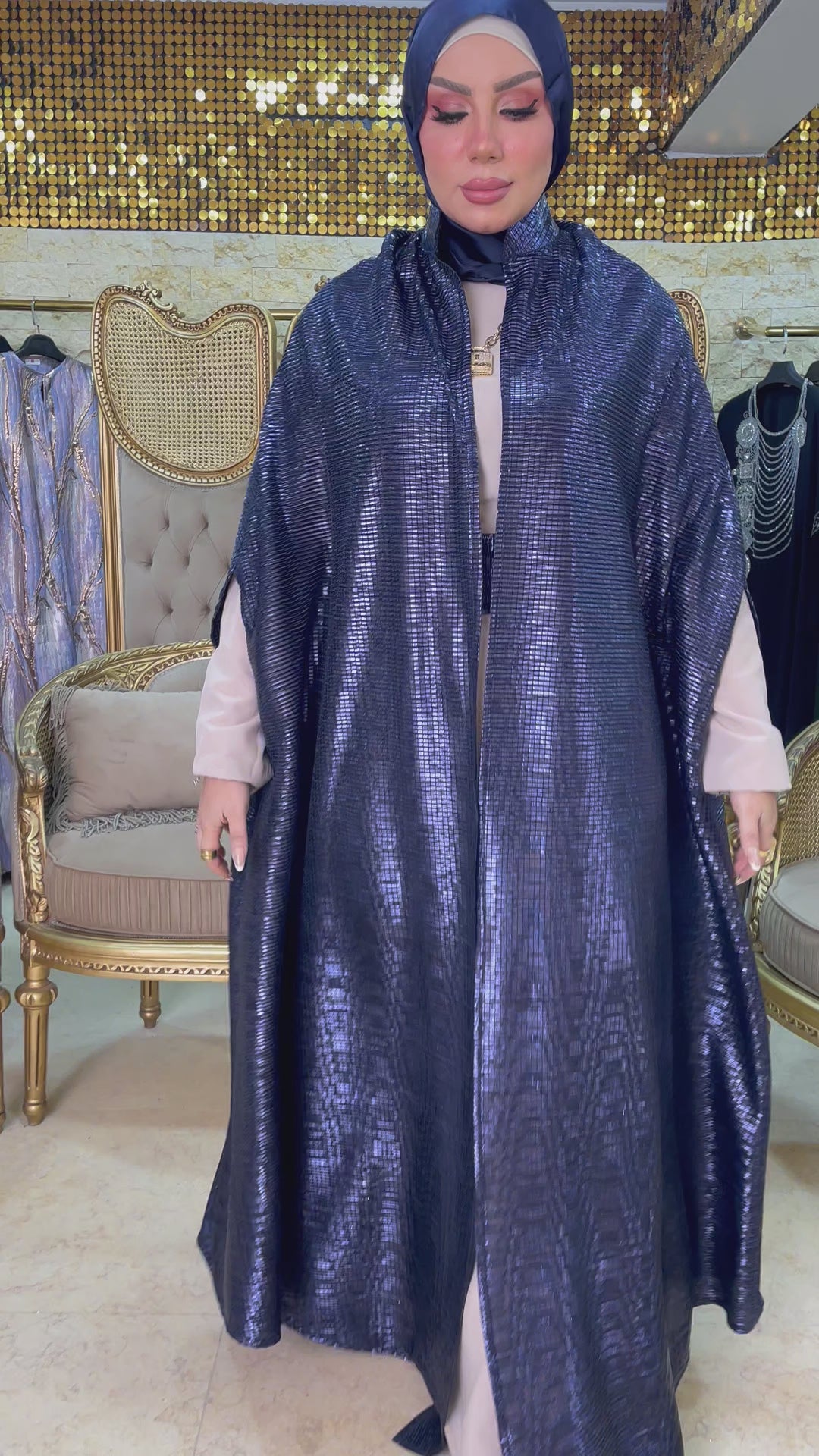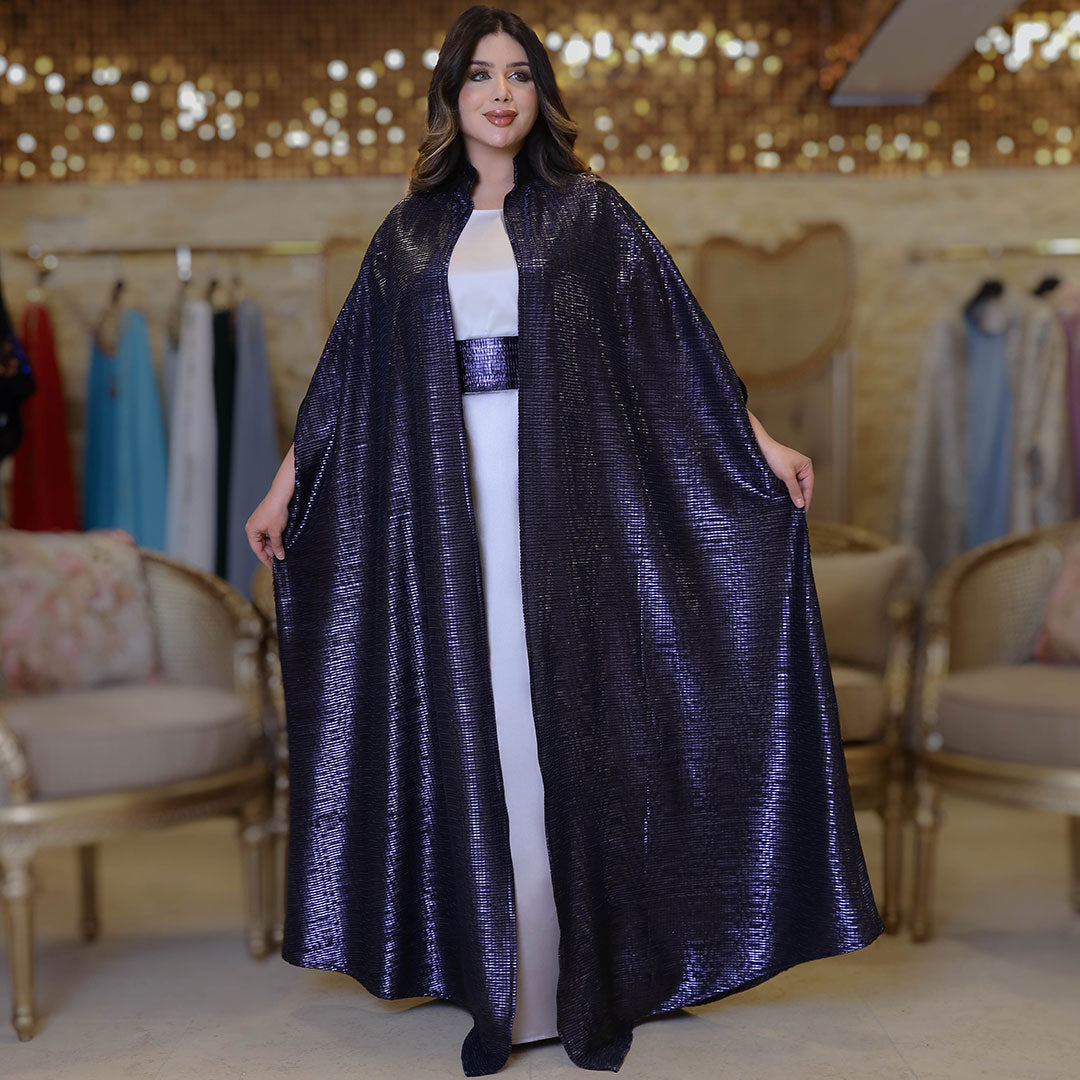 قفطان سواريه من خامة كريستال شايني + حزام لون القفطان، بدون بيزك , فري سايز يناسب ٧٠ك إلى ١٢٠ك
