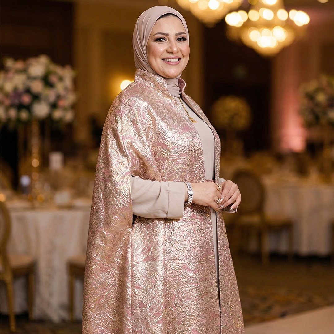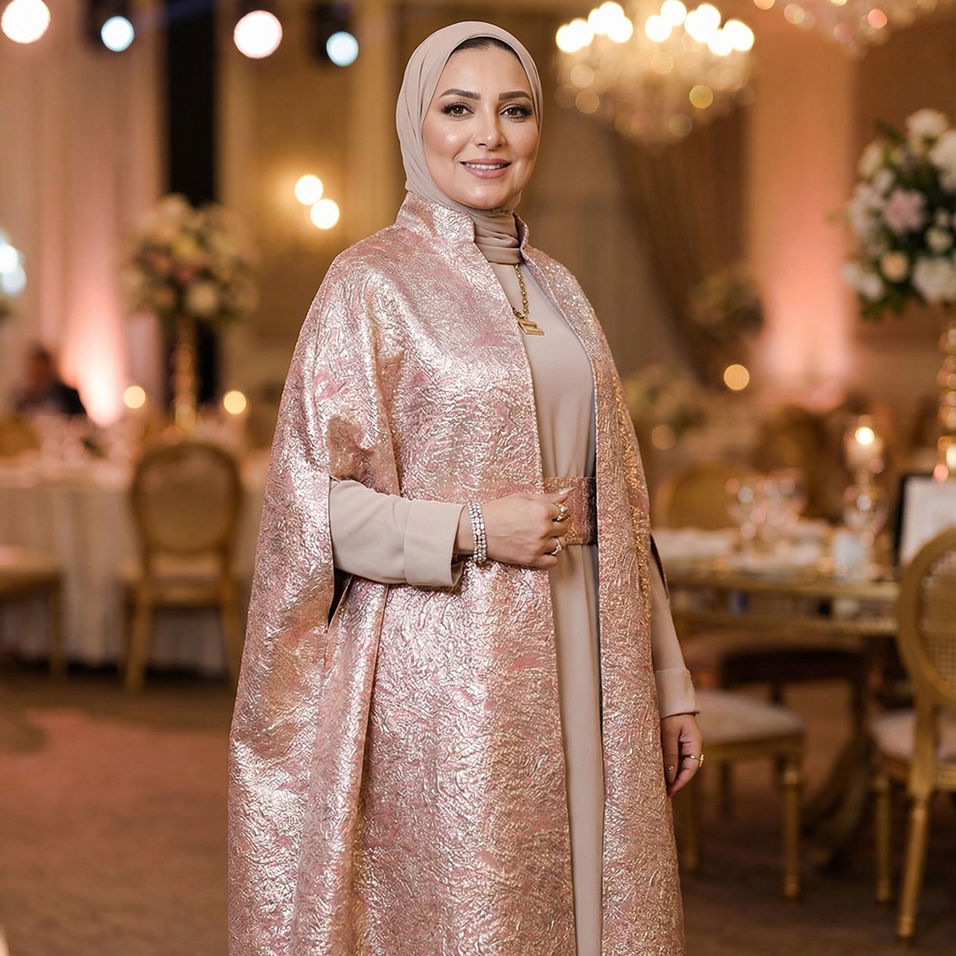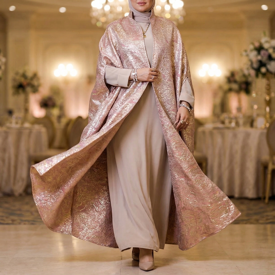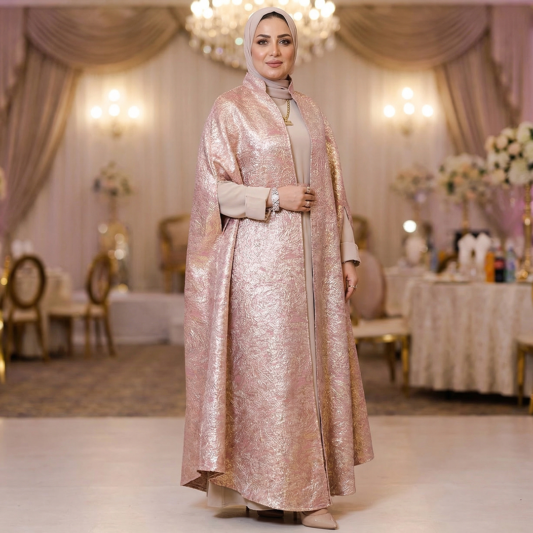 قفطان سواريه من خامة البروكار + حزام لون القفطان، بدون بيزك ، فري سايز يناسب ٧٠ك إلى ١٢٠ك