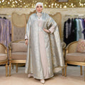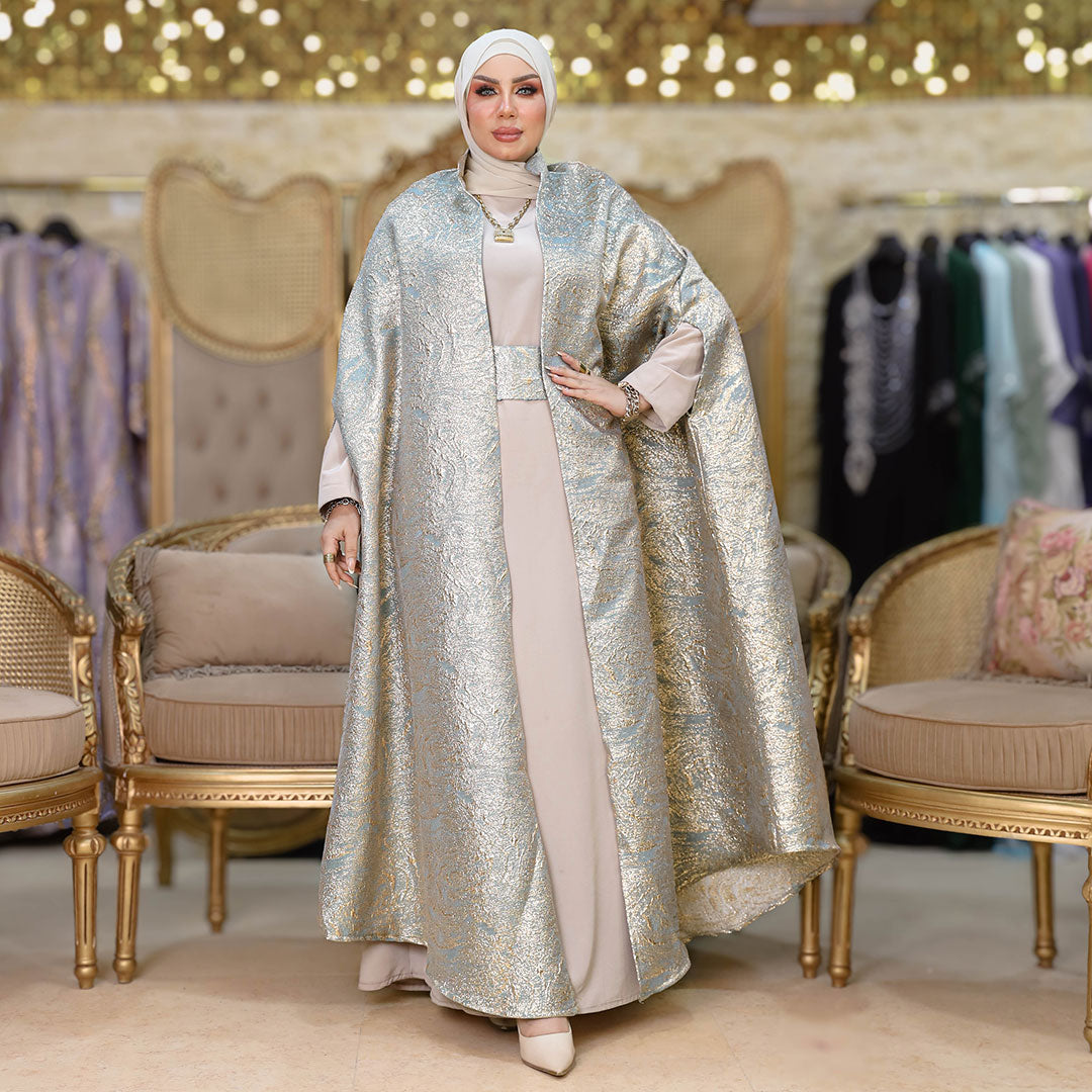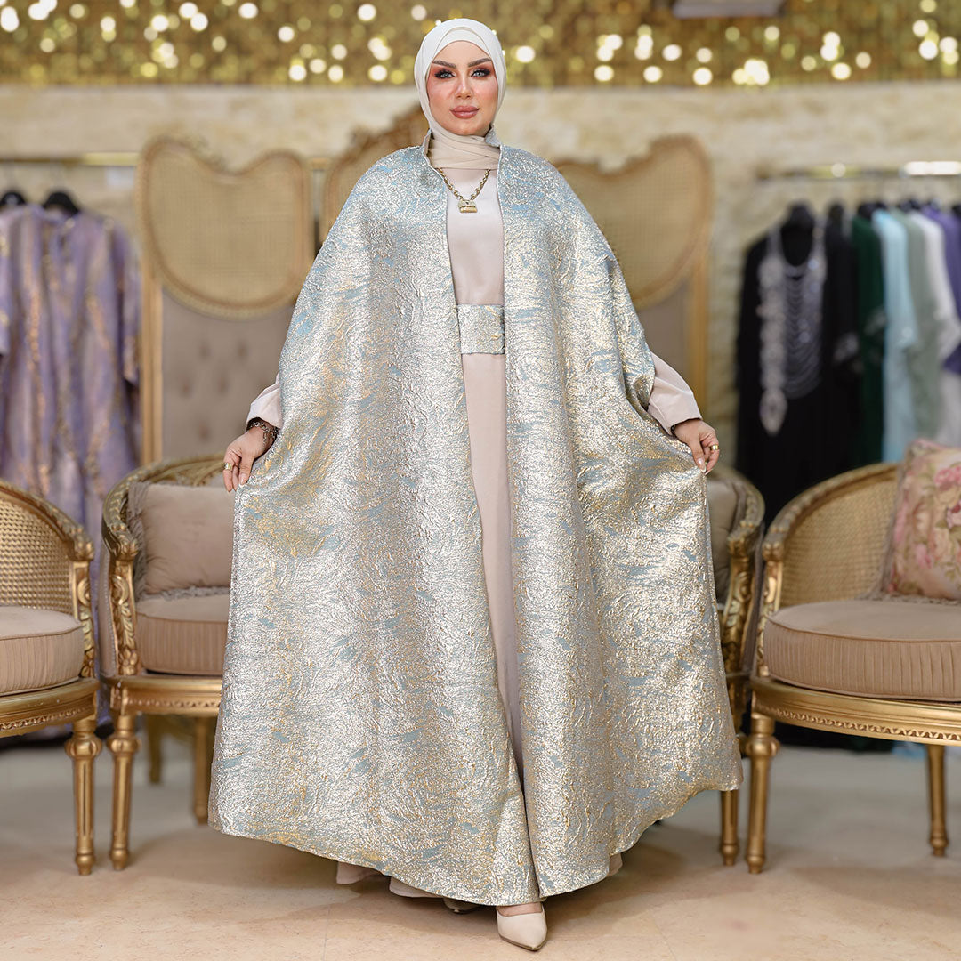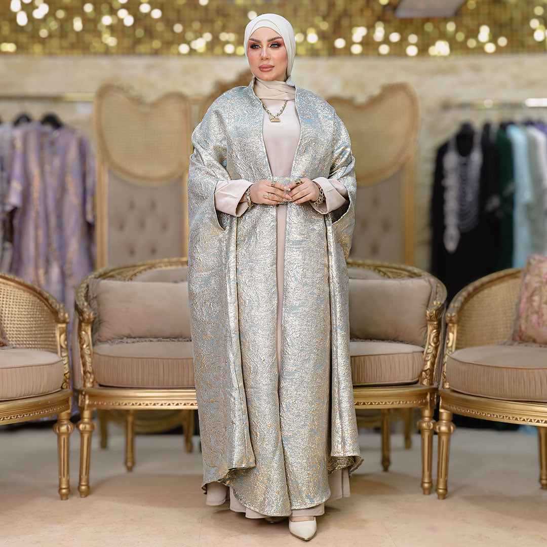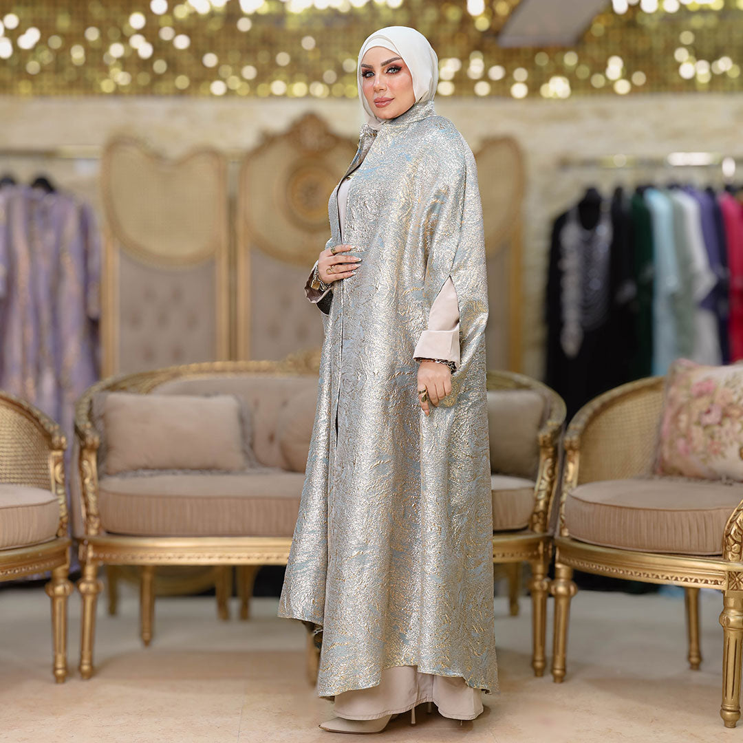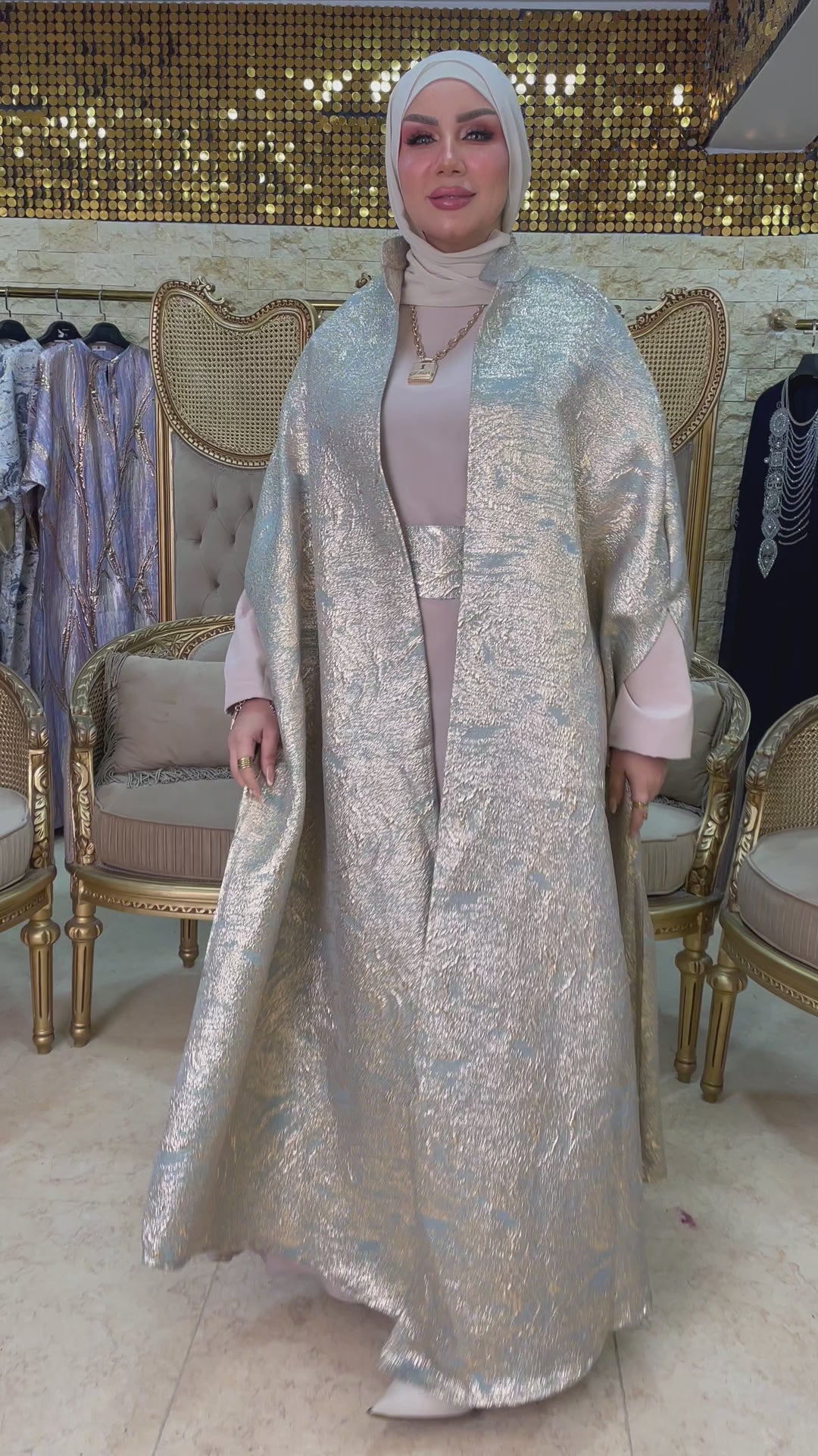 قفطان سواريه من خامة البروكار + حزام لون القفطان، بدون بيزك ، فري سايز يناسب ٧٠ك إلى ١٢٠ك