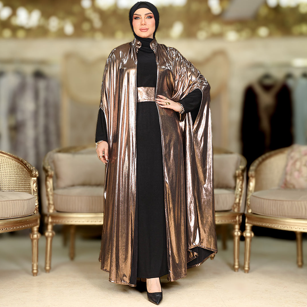قفطان سواريه من خامة الميتاليك الليكرا + حزام لون بدون بيزك ،، فري سايز يناسب ٧٠ك إلى ١٠٠ك