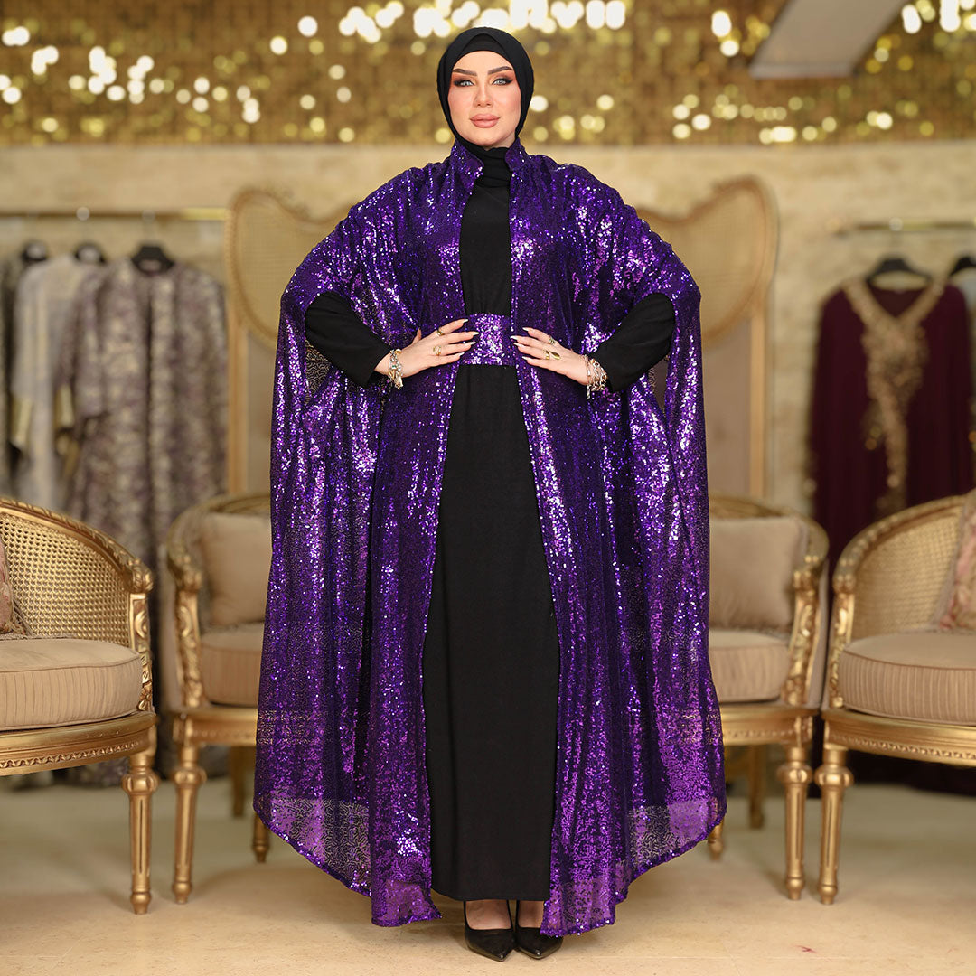 قفطان سواريه من خامة الباييت + حزام لون القفطان، , بدون بيزك , فري سايز يناسب ٧٠ك إلى ١٠٠ك