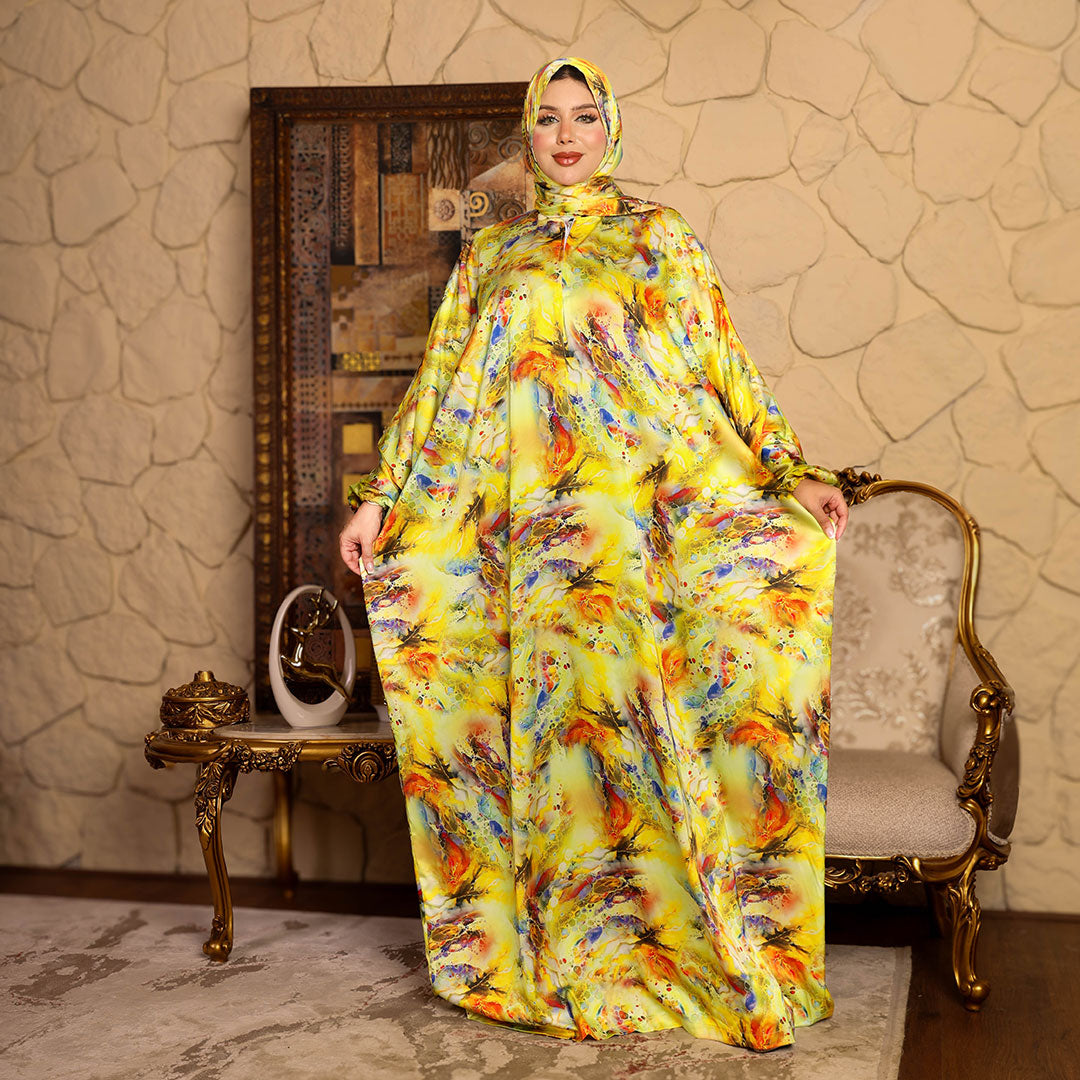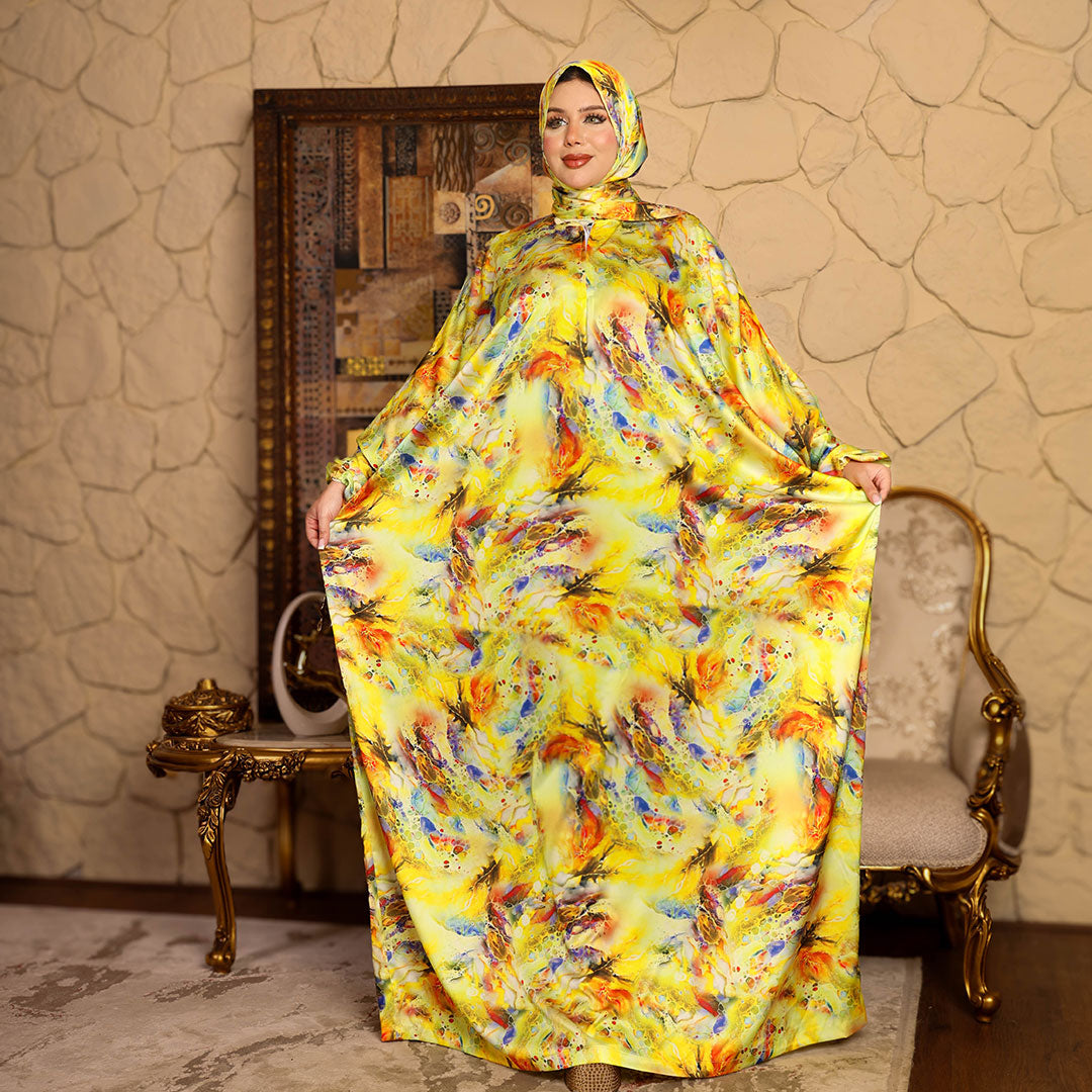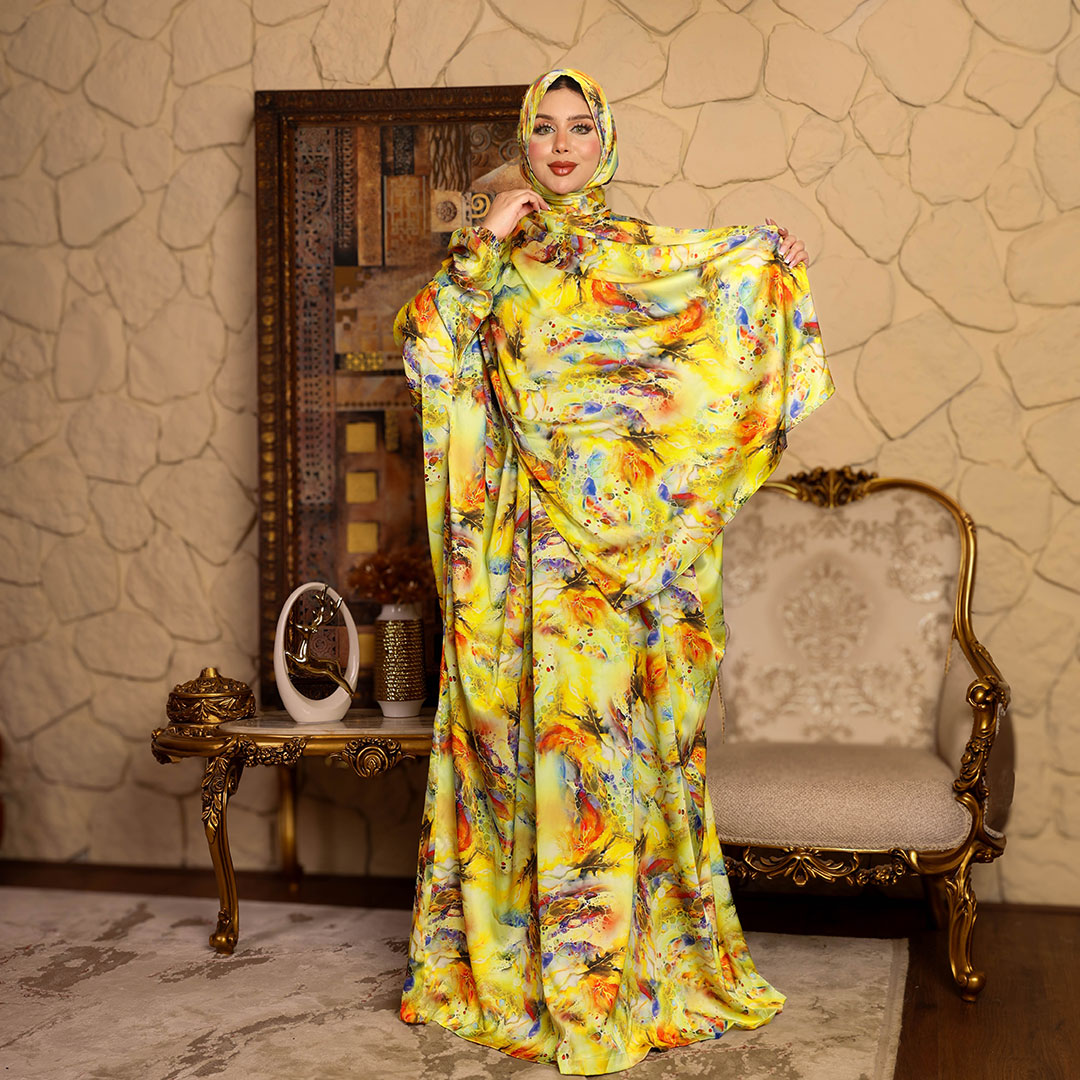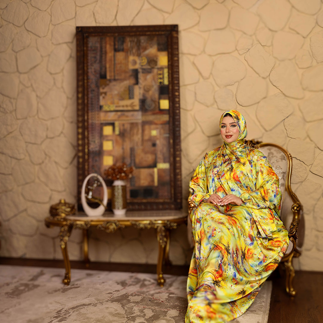 إسدال حرير ستان طباعة ديجيتال من تصميماتنا الخاصة