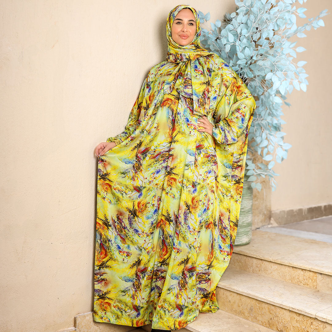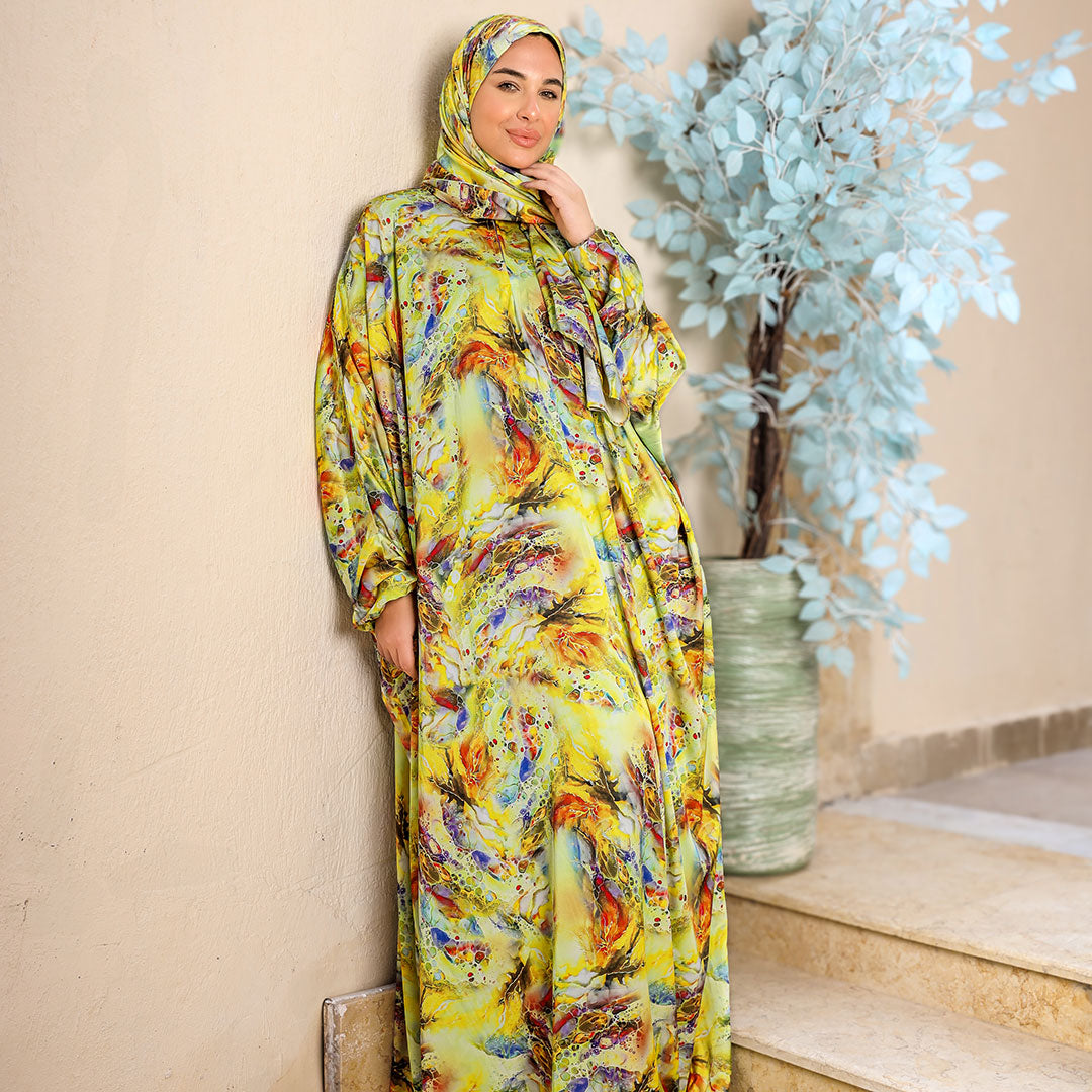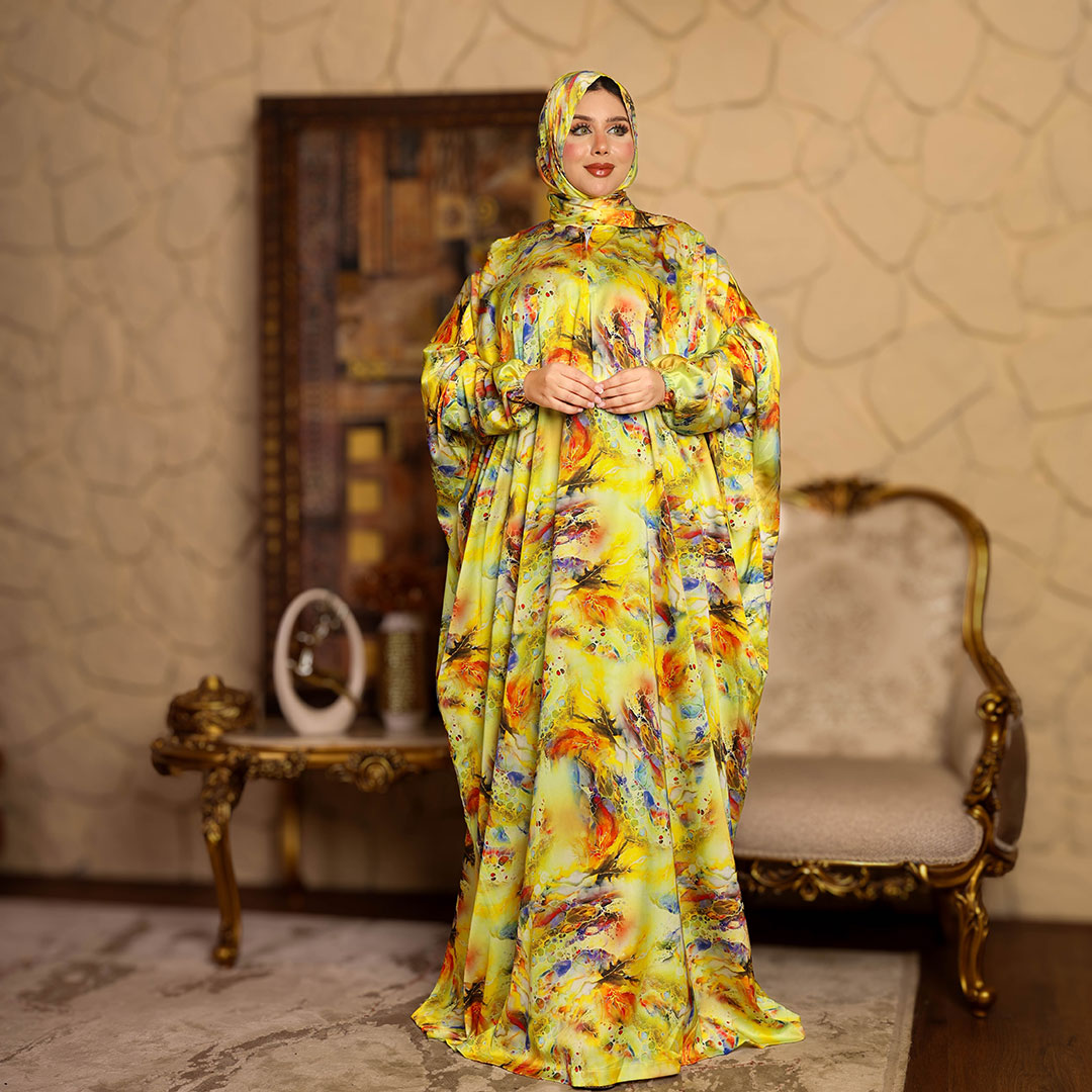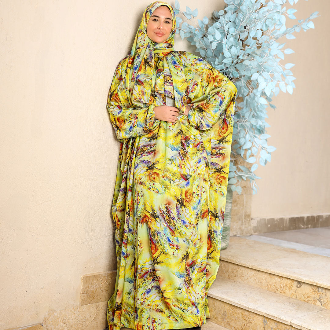 إسدال حرير ستان طباعة ديجيتال من تصميماتنا الخاصة