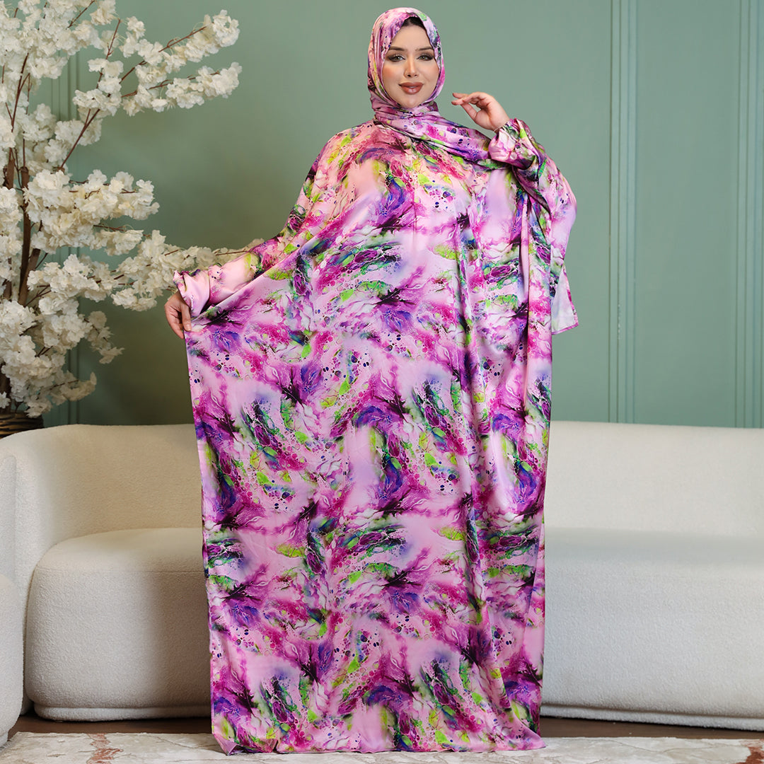 إسدال حرير ستان طباعة ديجيتال من تصميماتنا الخاصة
