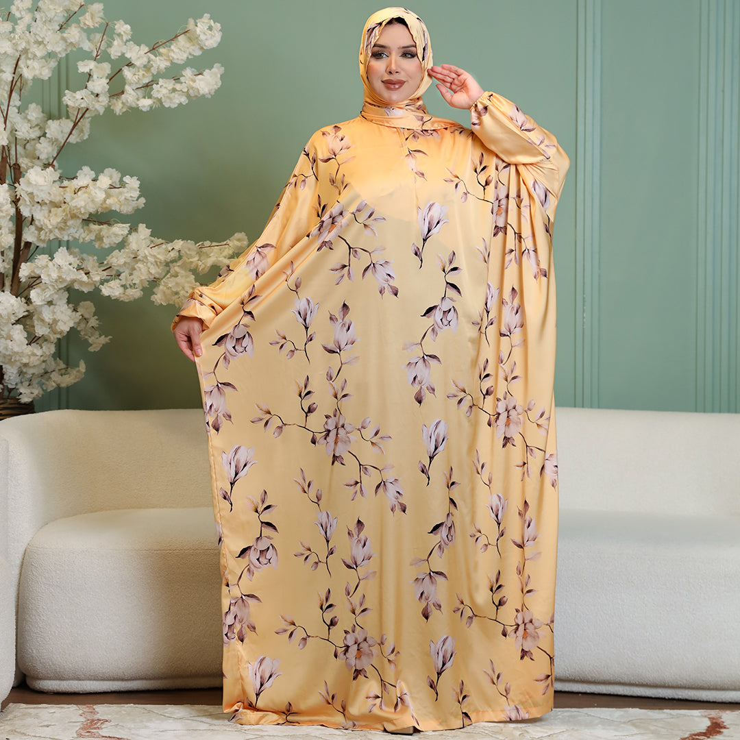 إسدال حرير ستان طباعة ديجيتال من تصميماتنا الخاصة