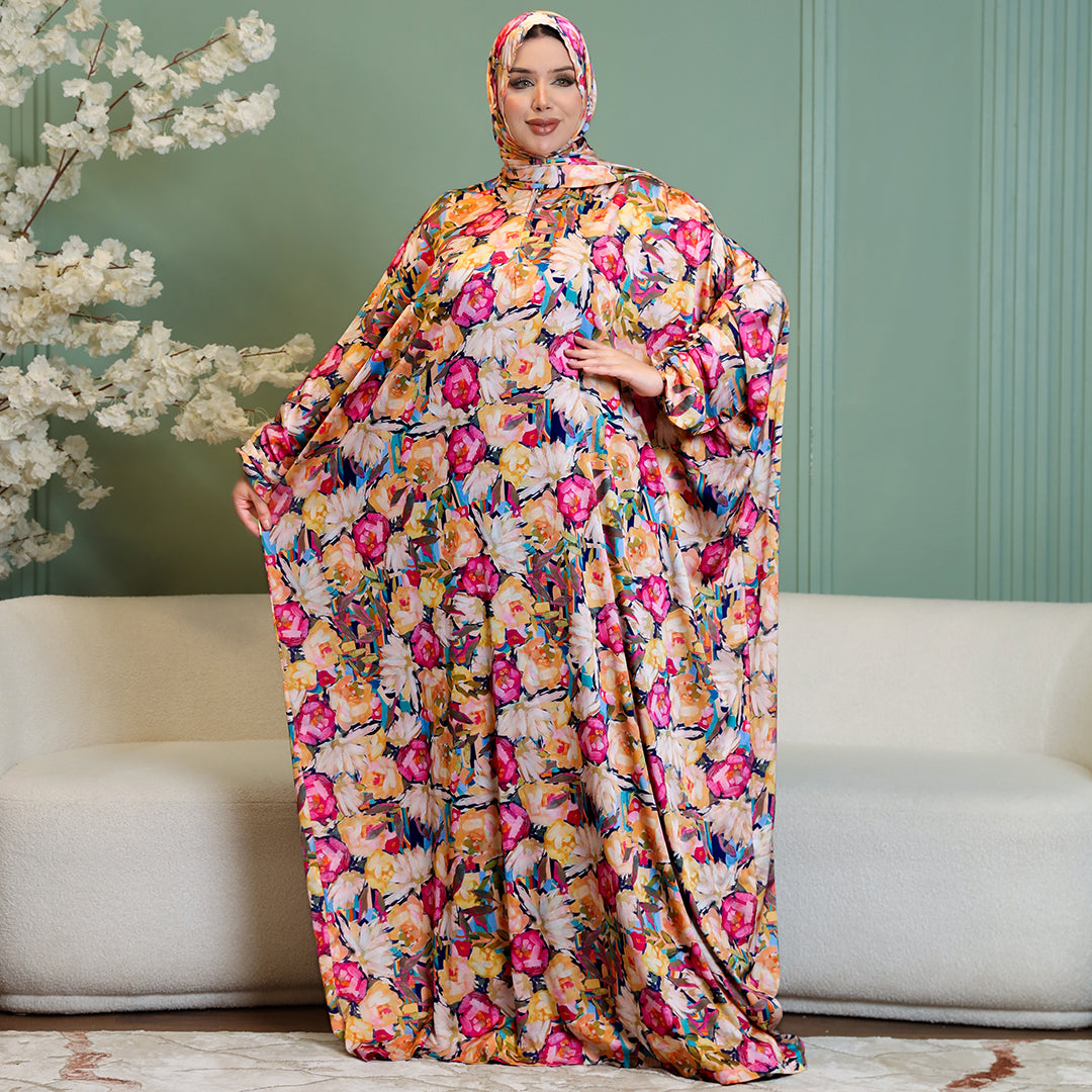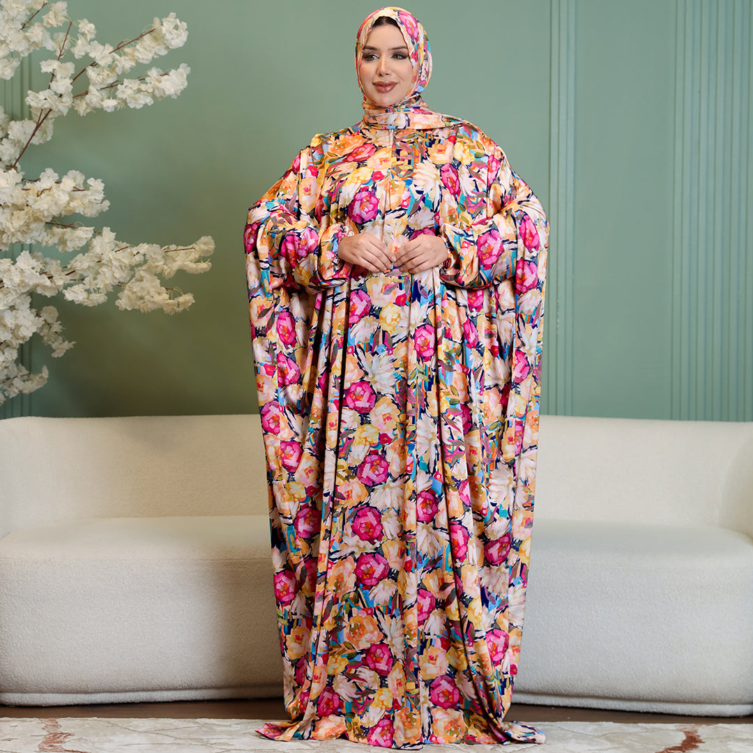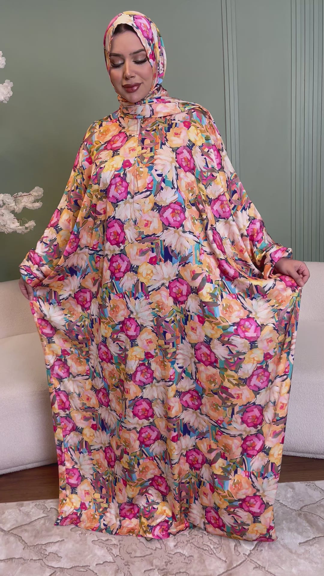 إسدال حرير ستان طباعة ديجيتال من تصميماتنا الخاصة