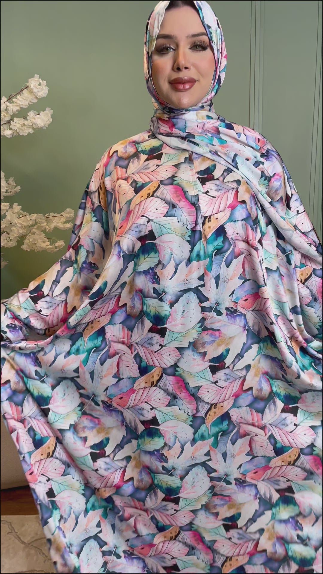 إسدال حرير ستان طباعة ديجيتال من تصميماتنا الخاصة