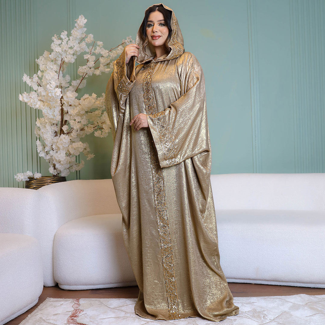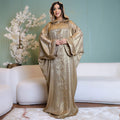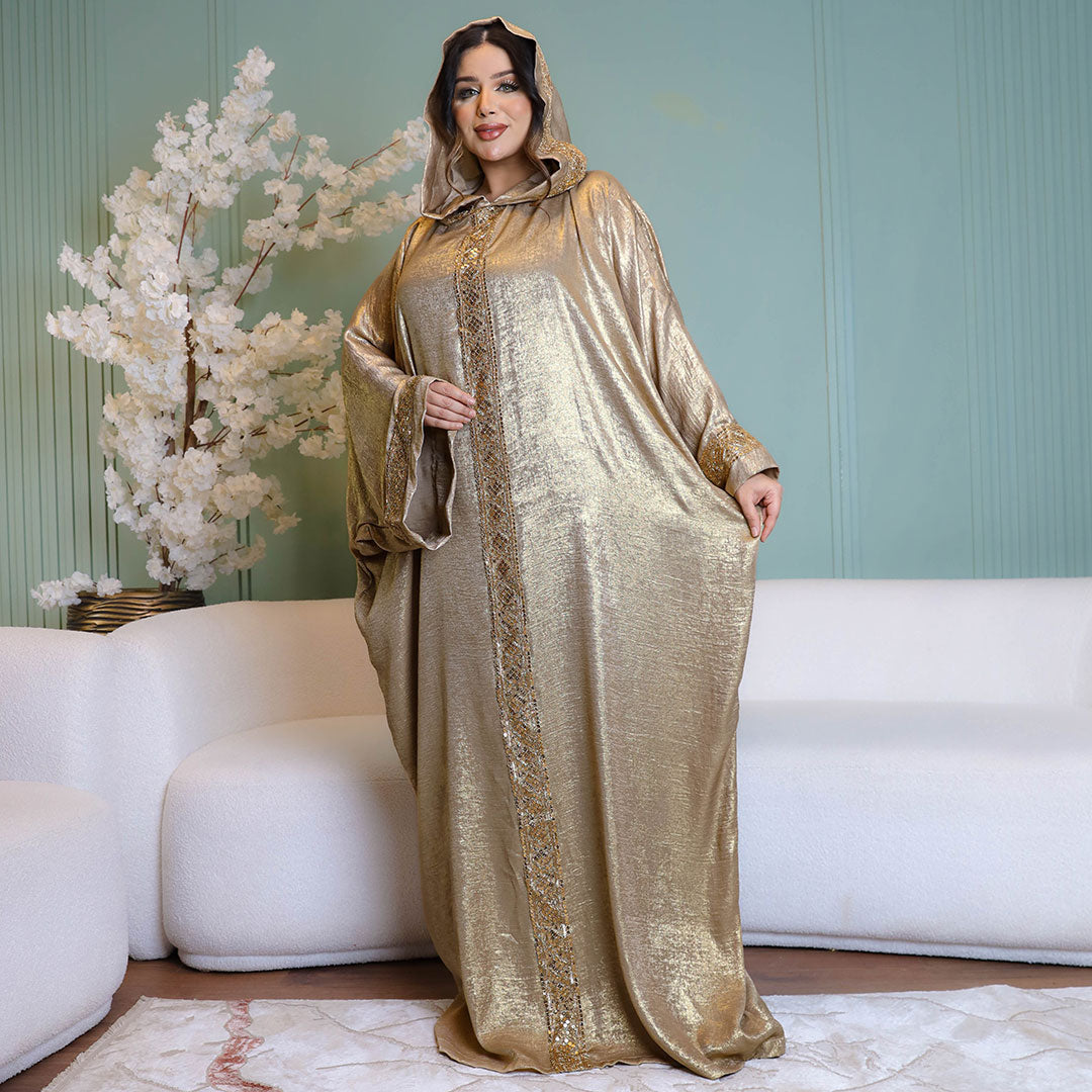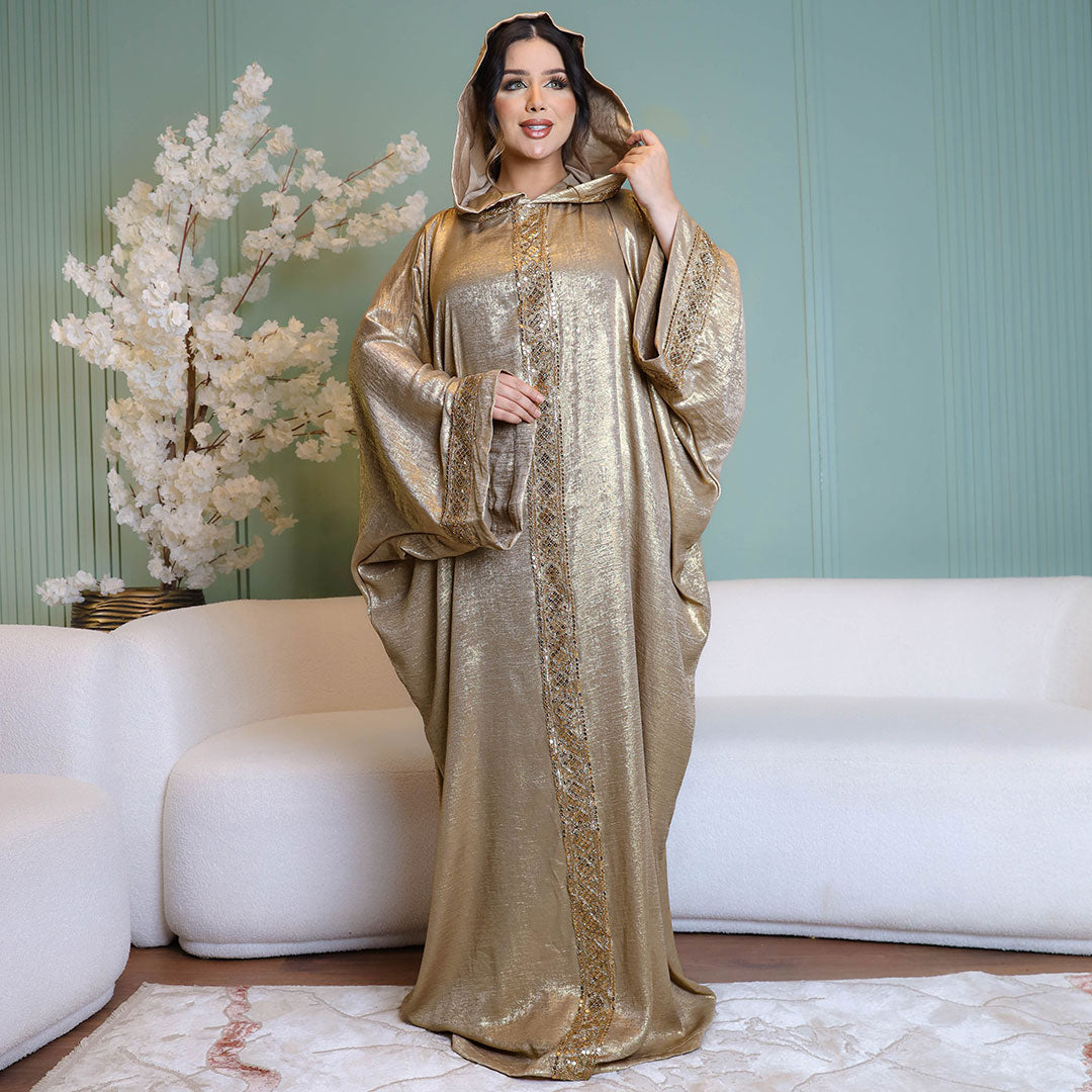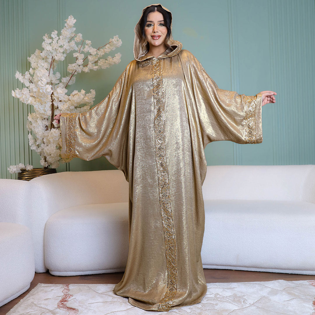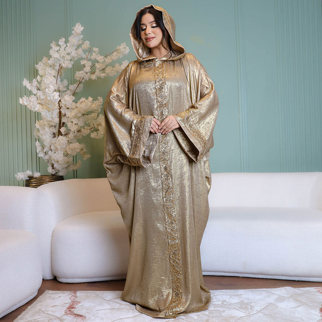 إسدال مغربي كابيشو قطعة واحدة شايني و شريط تطريز هندي