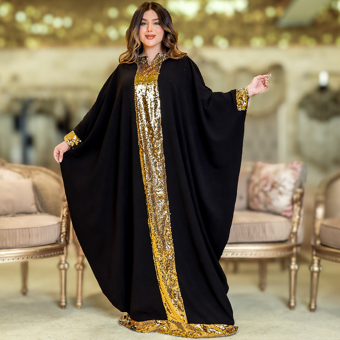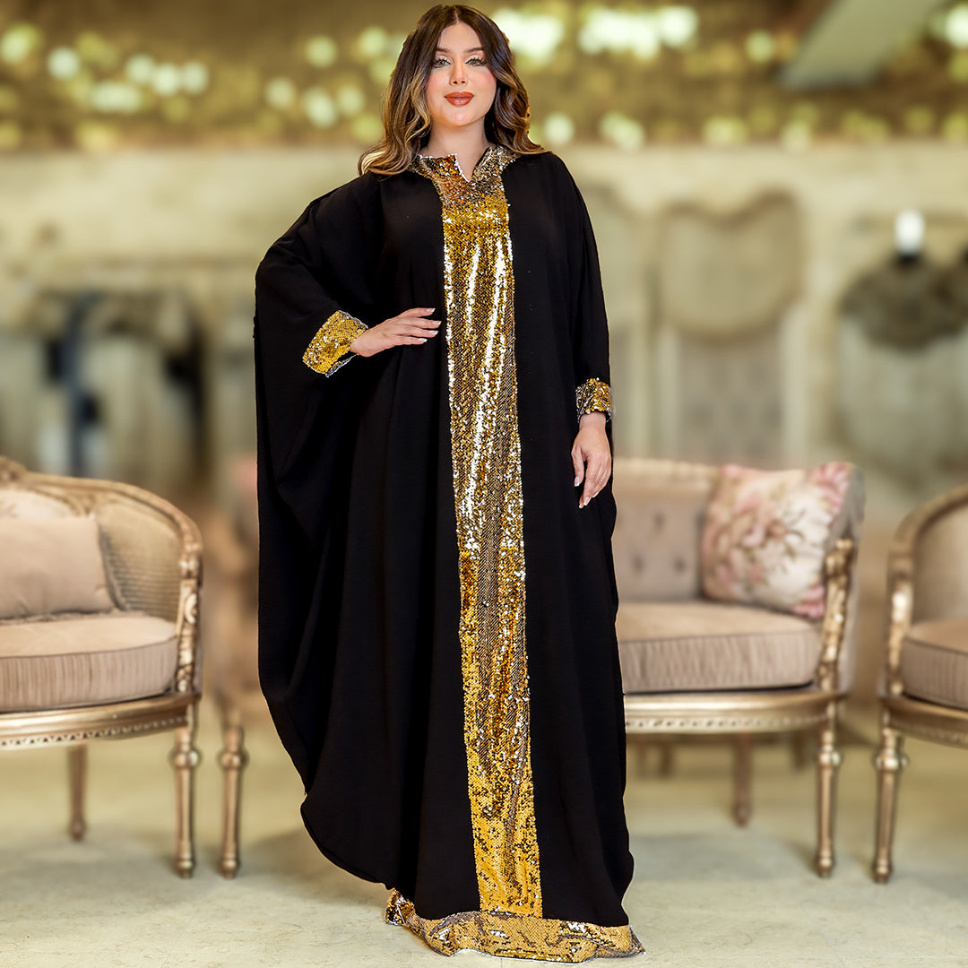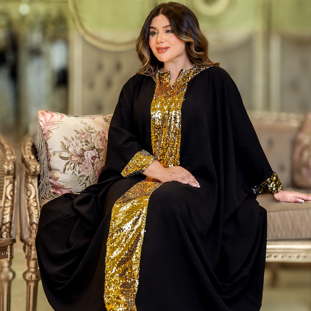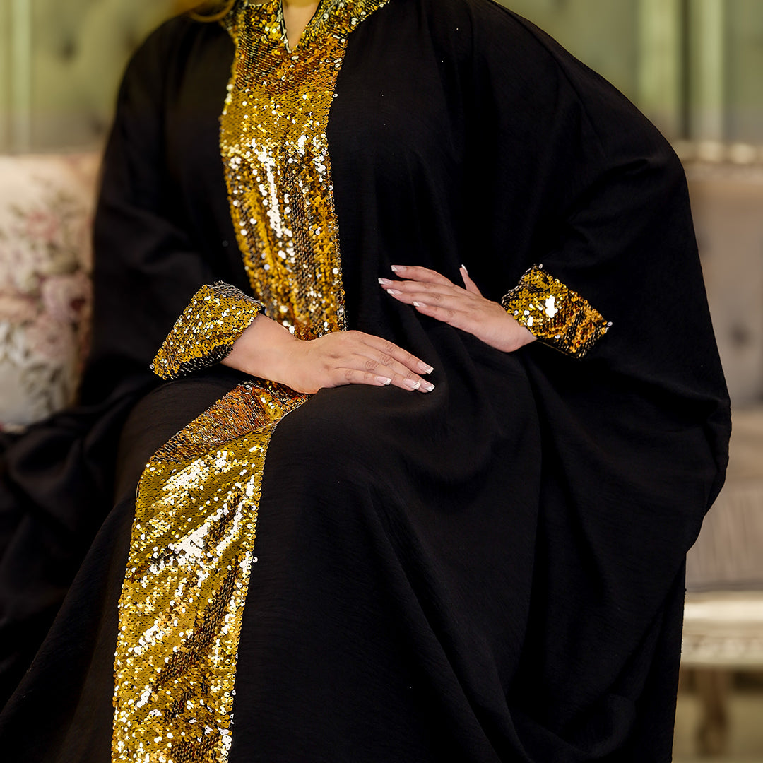 عباية خليجي باييت ذهبي قلاب خامة كريب CY فري سايز تناسب ٧٠ك إلى ١٣٠ك