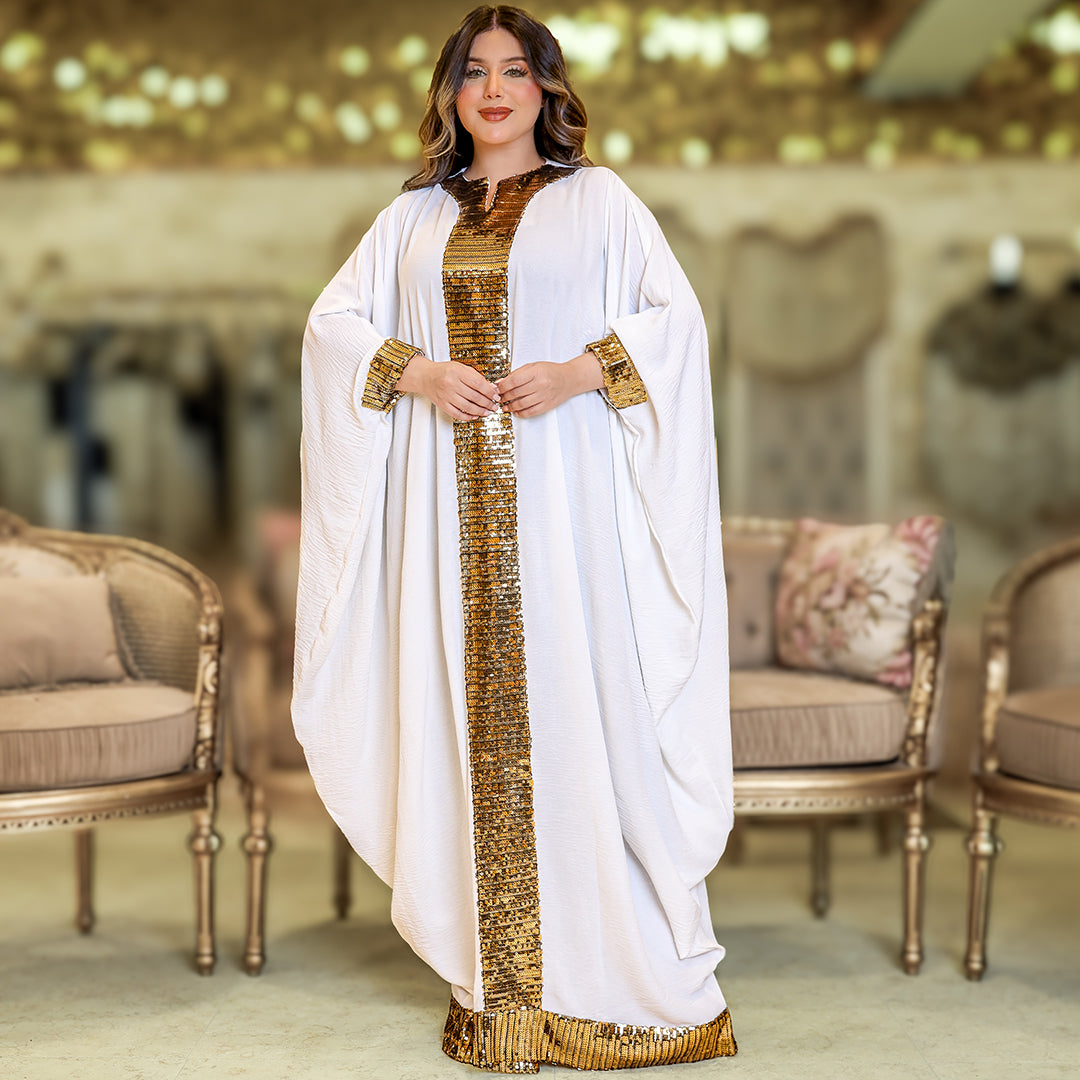 عباية خليجي باييت ذهبي قلاب خامة كريب CY فري سايز تناسب ٧٠ك إلى ١٣٠ك