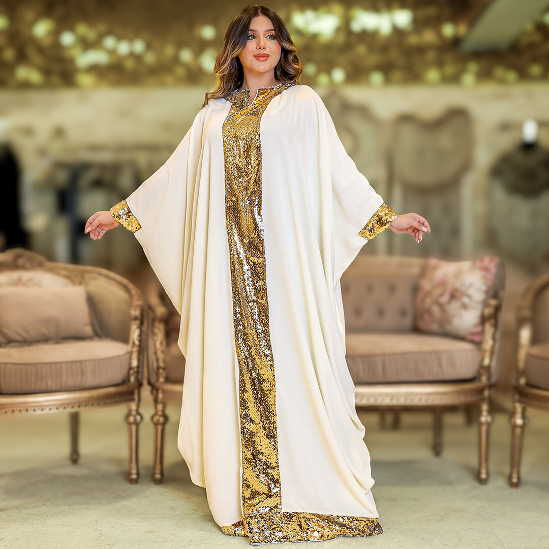 عباية خليجي باييت ذهبي قلاب خامة كريب CY فري سايز تناسب ٧٠ك إلى ١٣٠ك