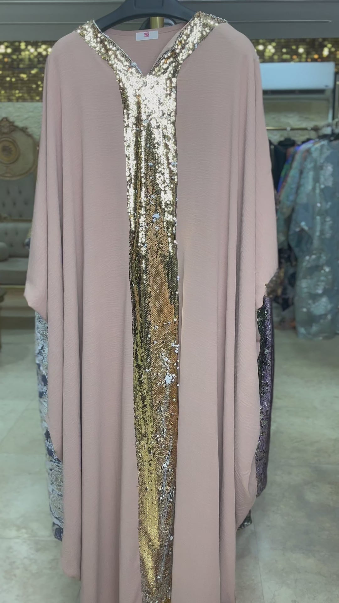 عباية خليجي باييت ذهبي قلاب خامة كريب CY فري سايز تناسب ٧٠ك إلى ١٣٠ك