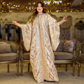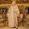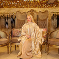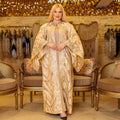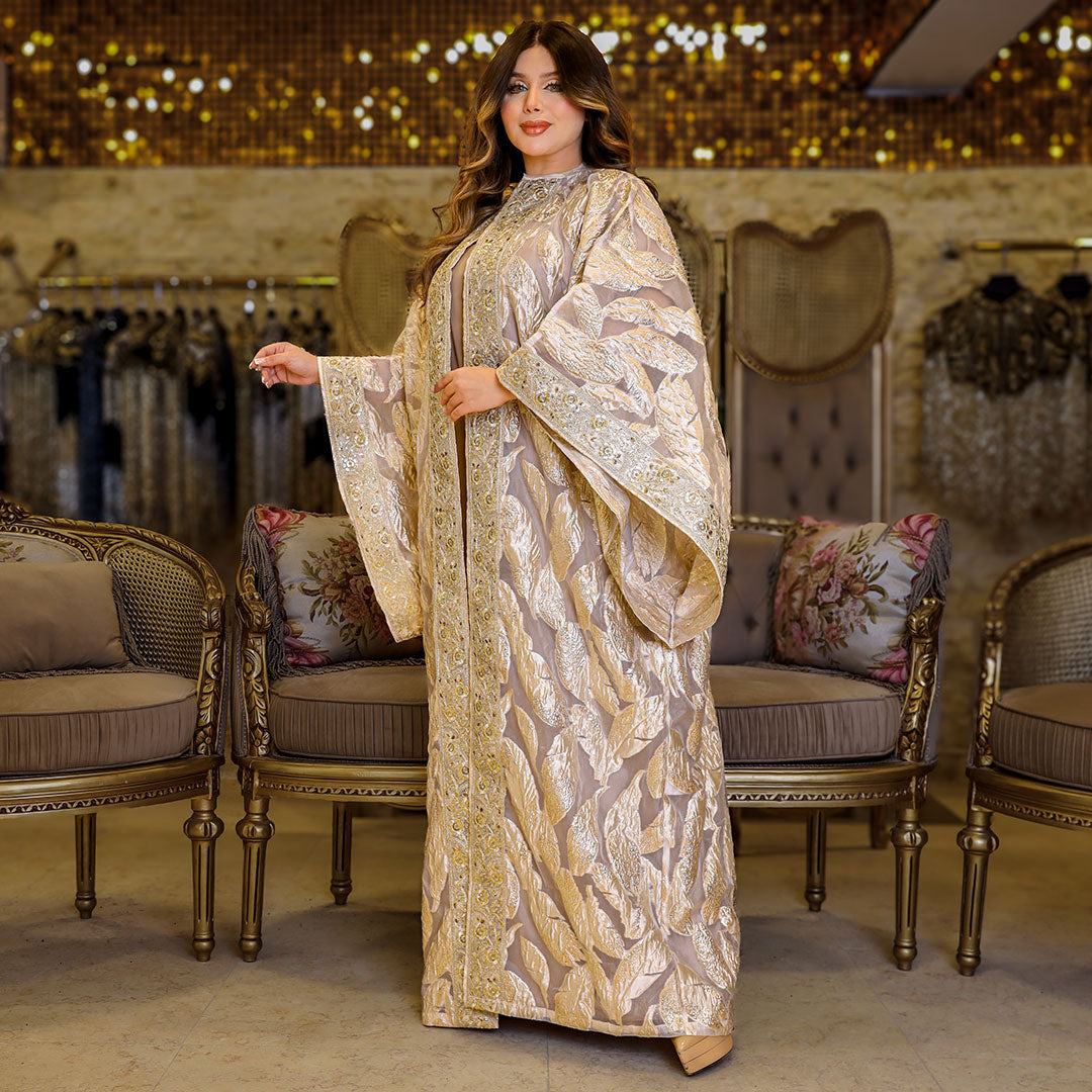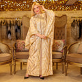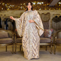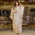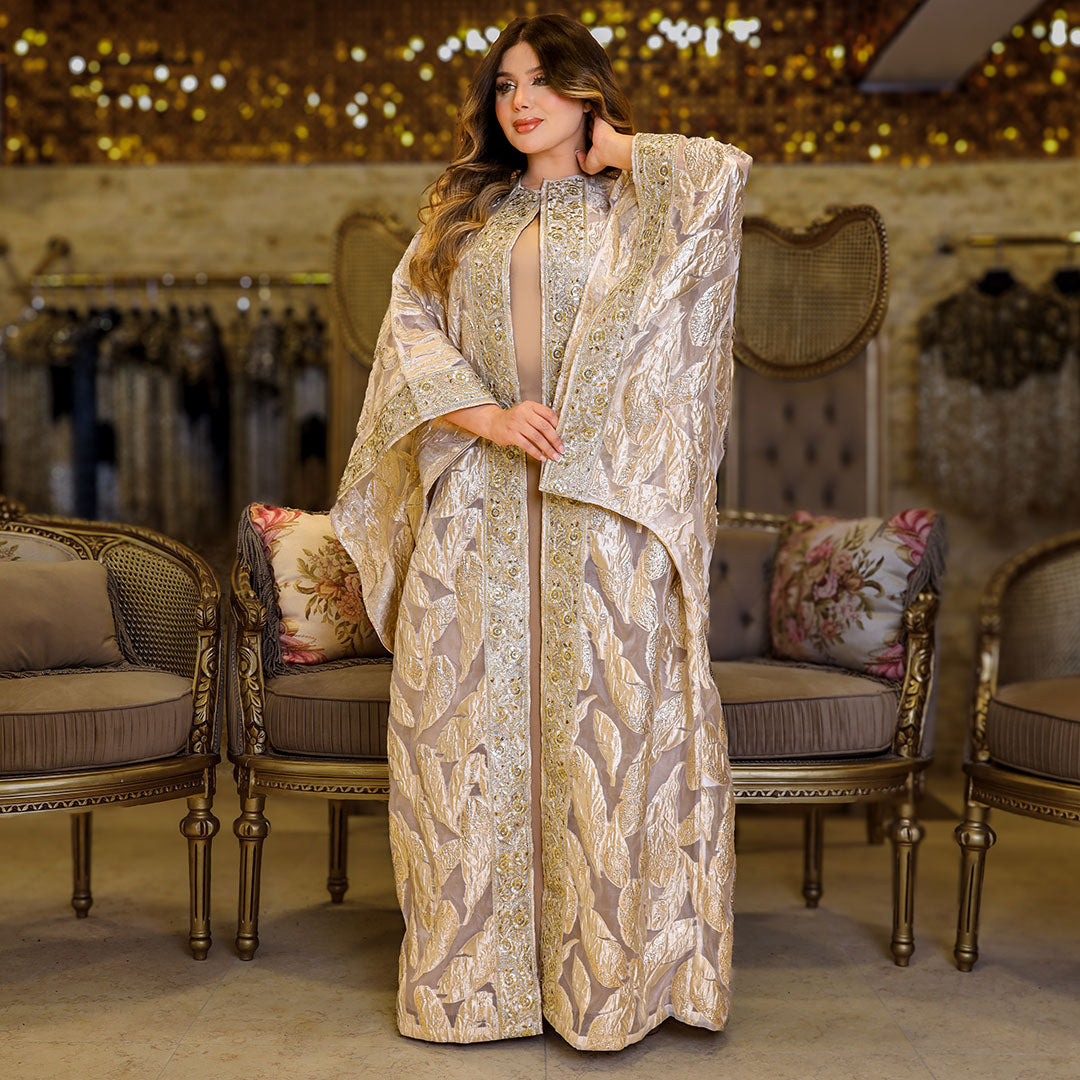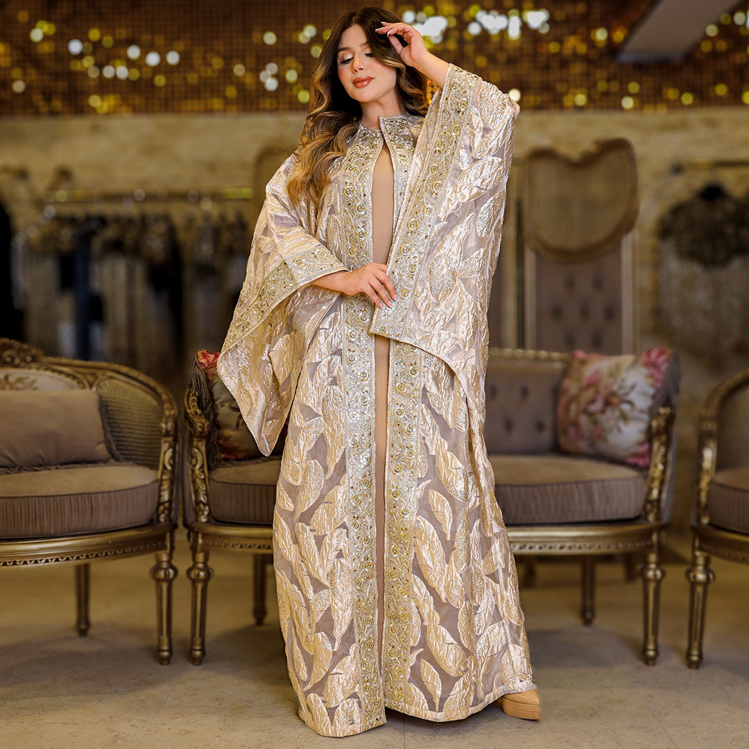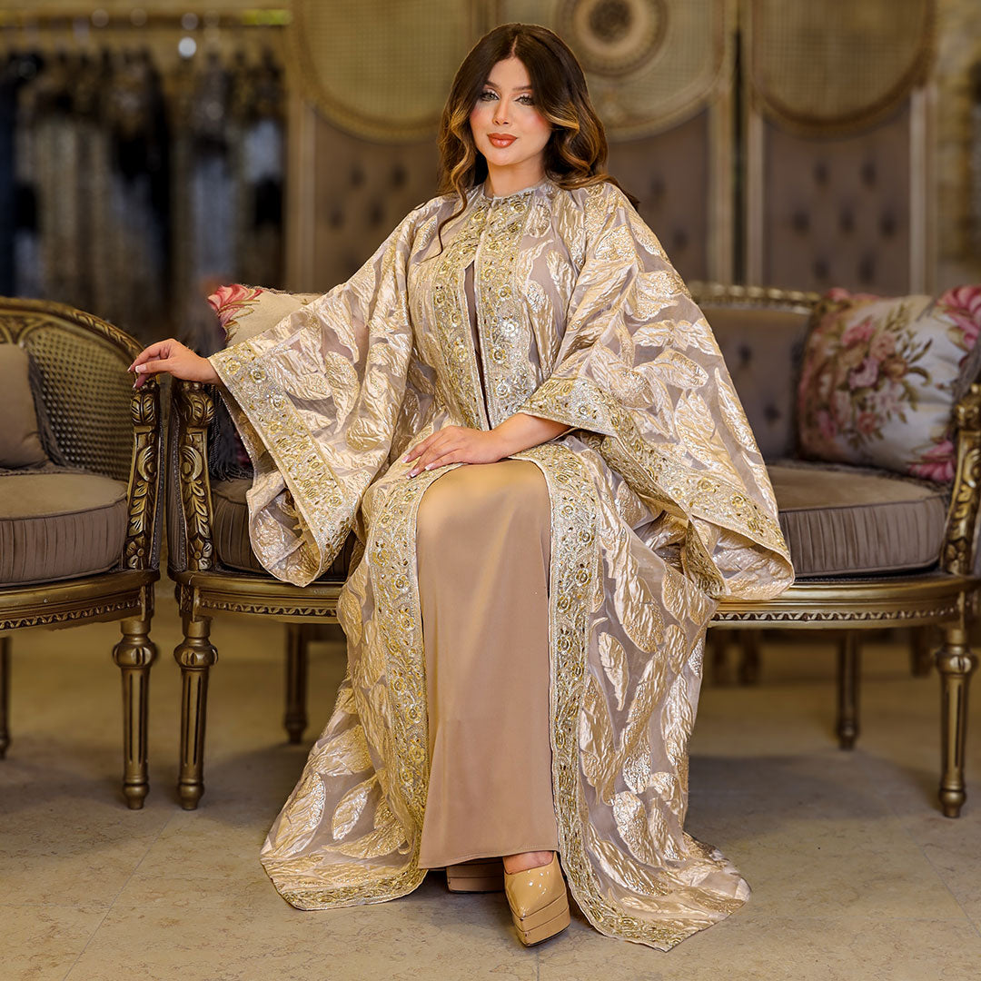 قفطان بحريني من قماش البروكار المطرز و شريط هندي تطريز - فري سايز يناسب ٧٠ك إلى ١٣٠ك