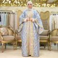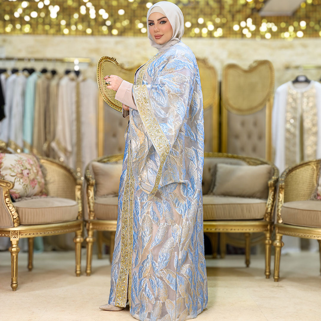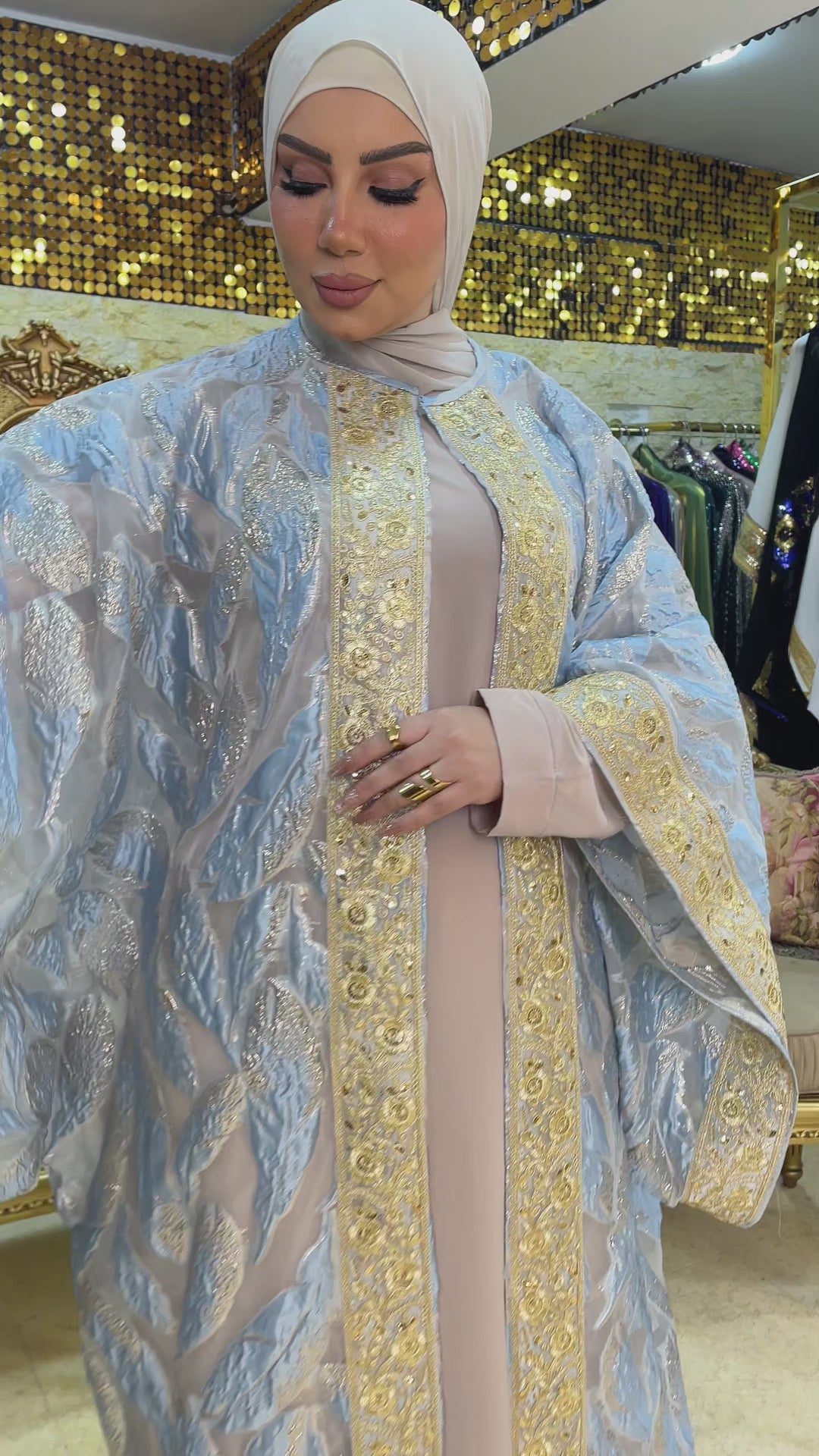 قفطان بحريني من قماش البروكار المطرز و شريط هندي تطريز - فري سايز يناسب ٧٠ك إلى ١٣٠ك