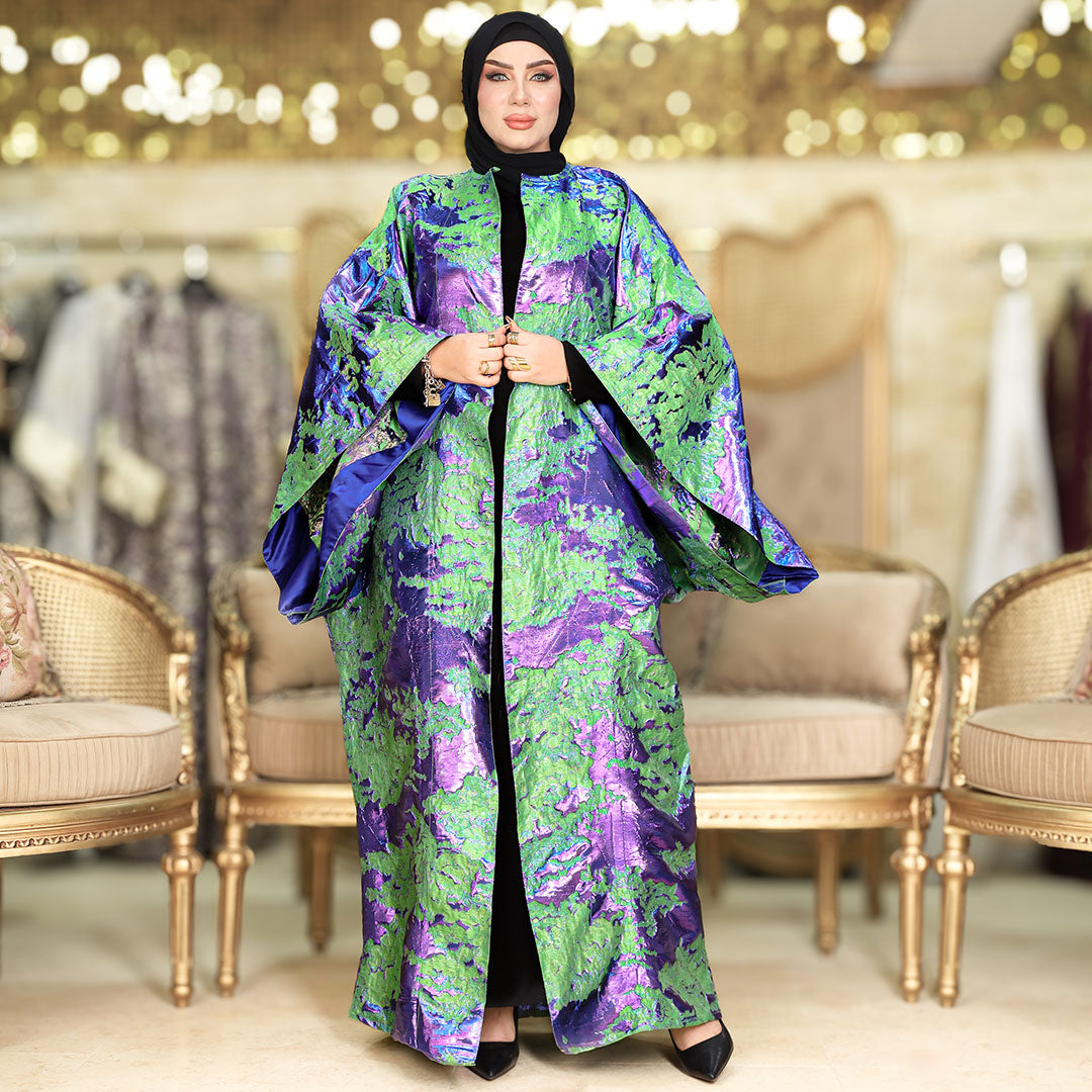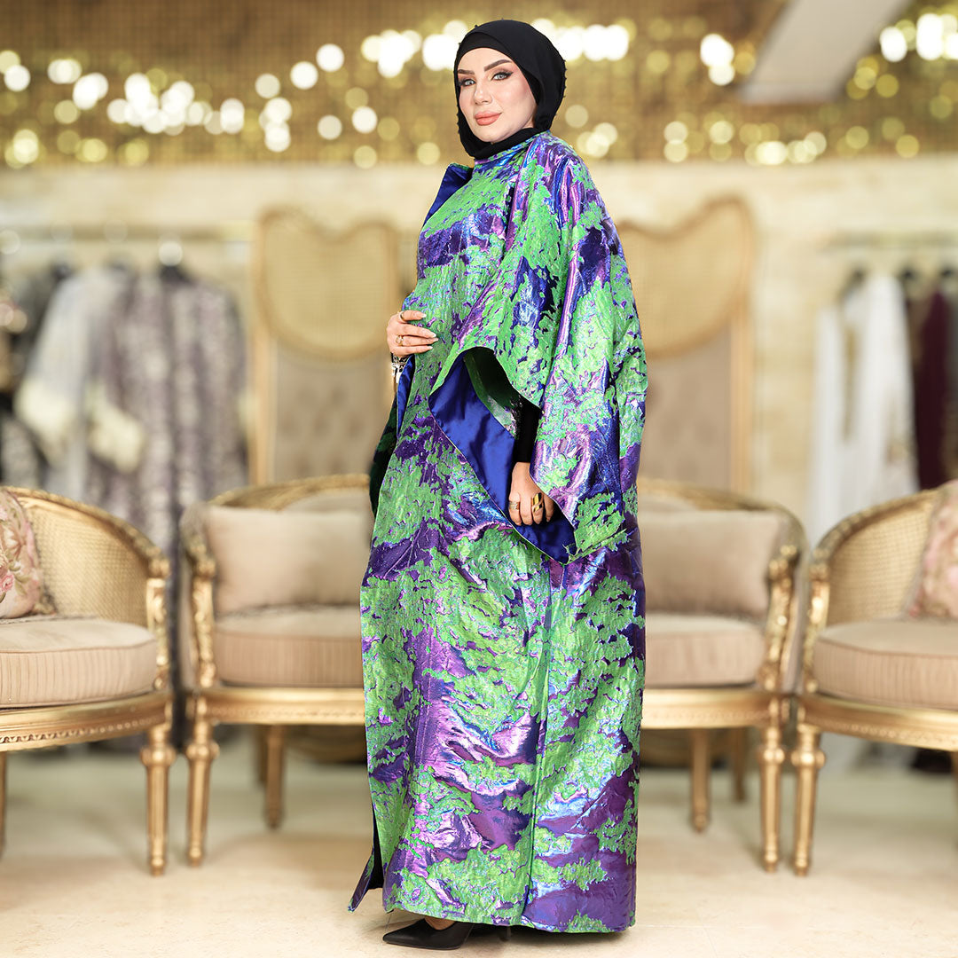 قفطان بحريني من قماش البروكار السواريه اللامع فري سايز يناسب ٧٠ك إلى ١٣٠ك