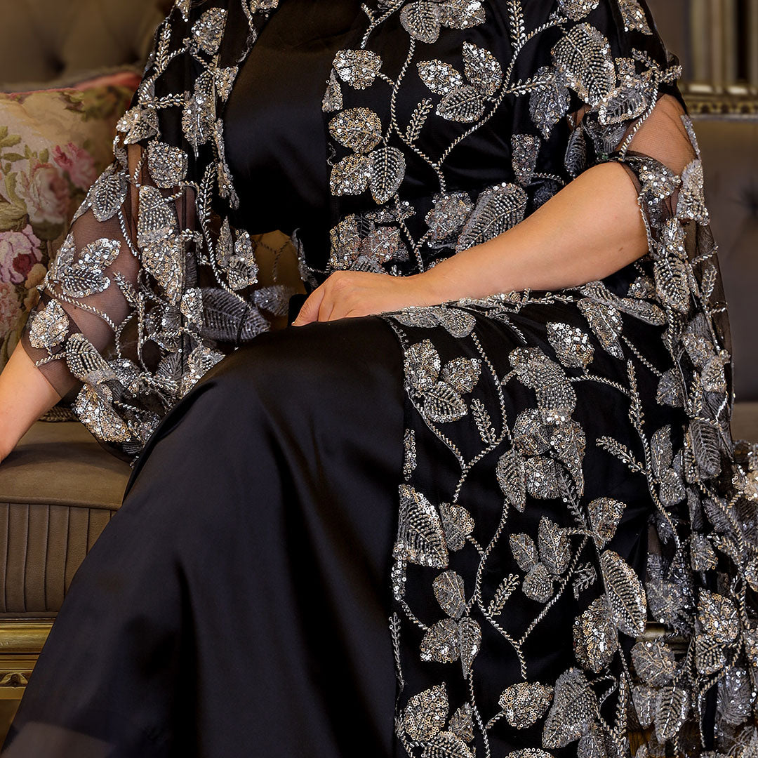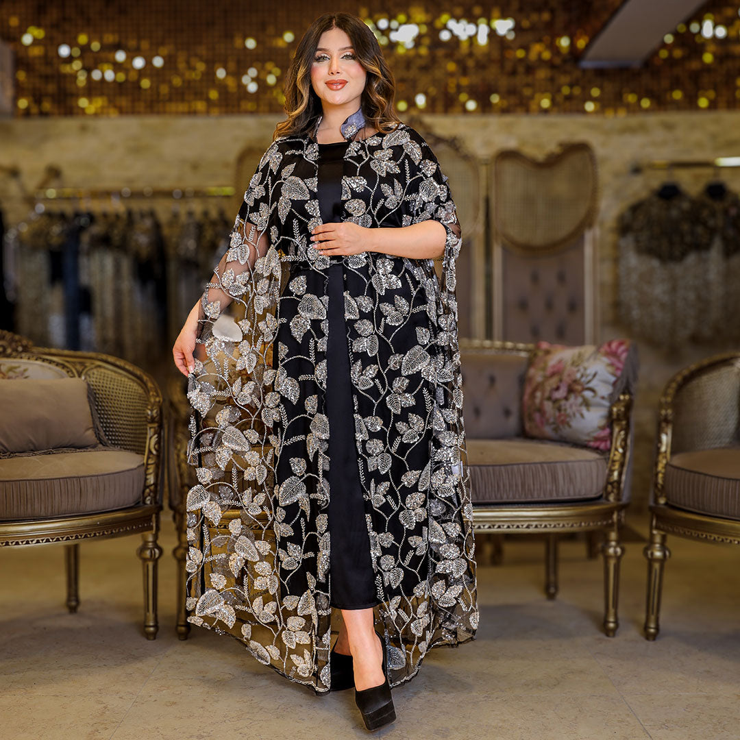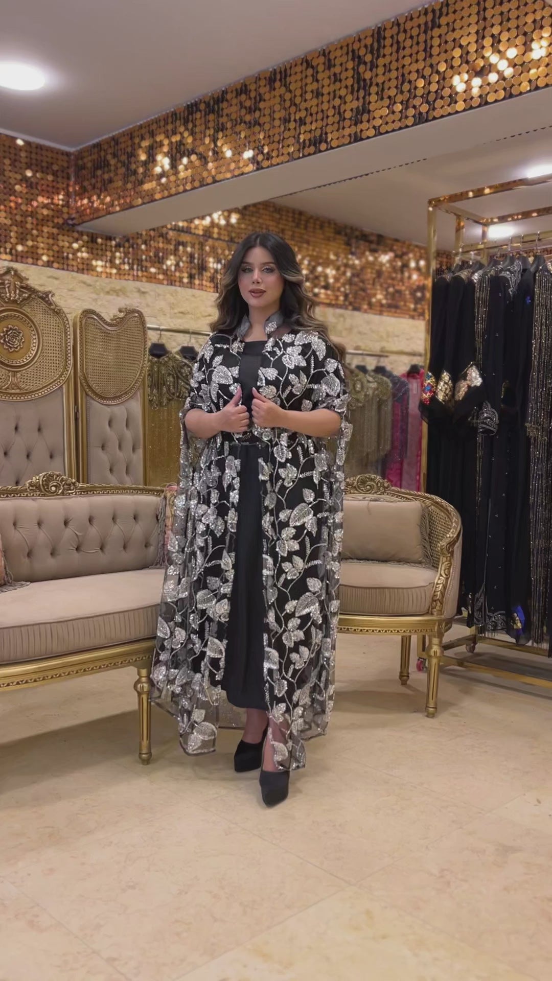 قفطان كاب أورجانزا تطريز كامل قطعتين مع بيزك حرير ستان أرماني و حزام.