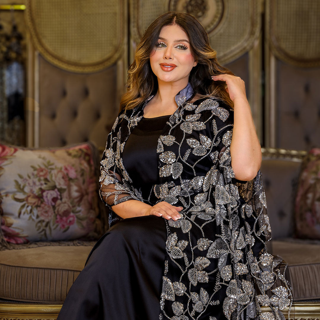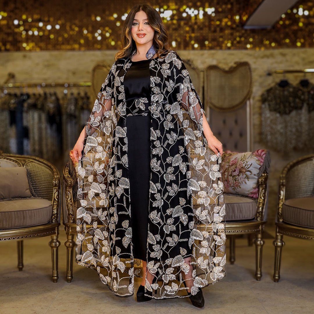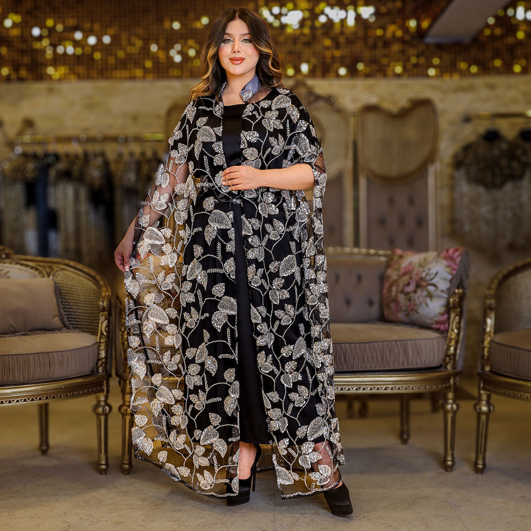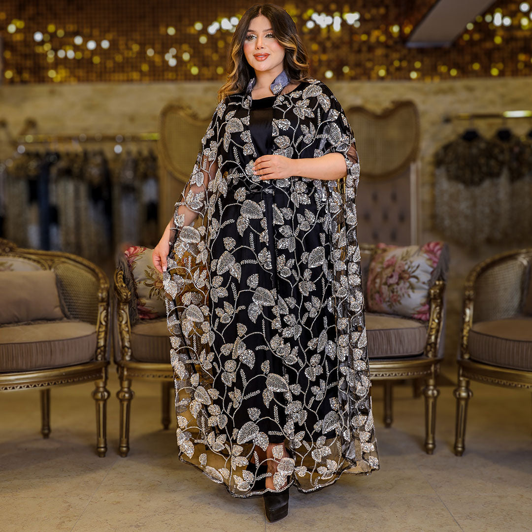 قفطان كاب أورجانزا تطريز كامل قطعتين مع بيزك حرير ستان أرماني و حزام.