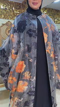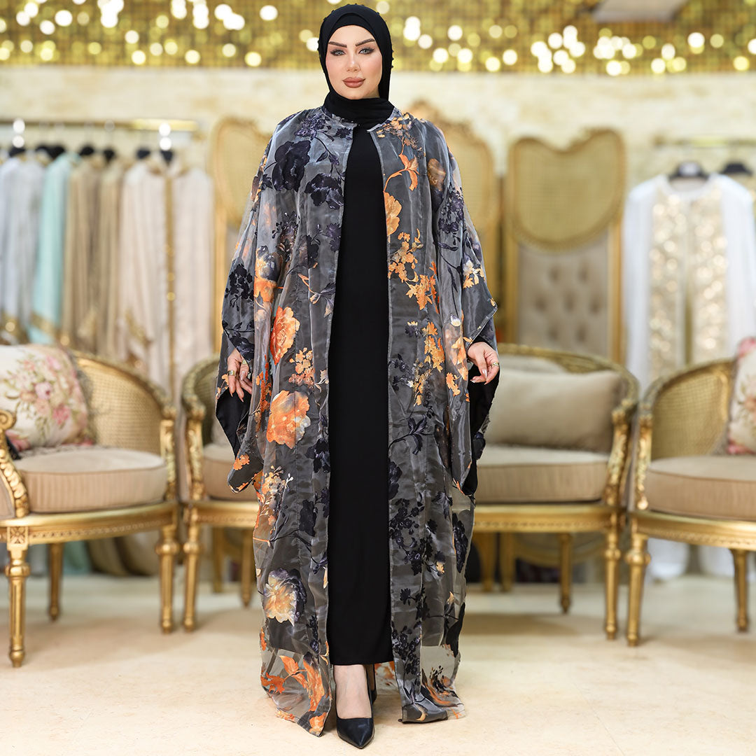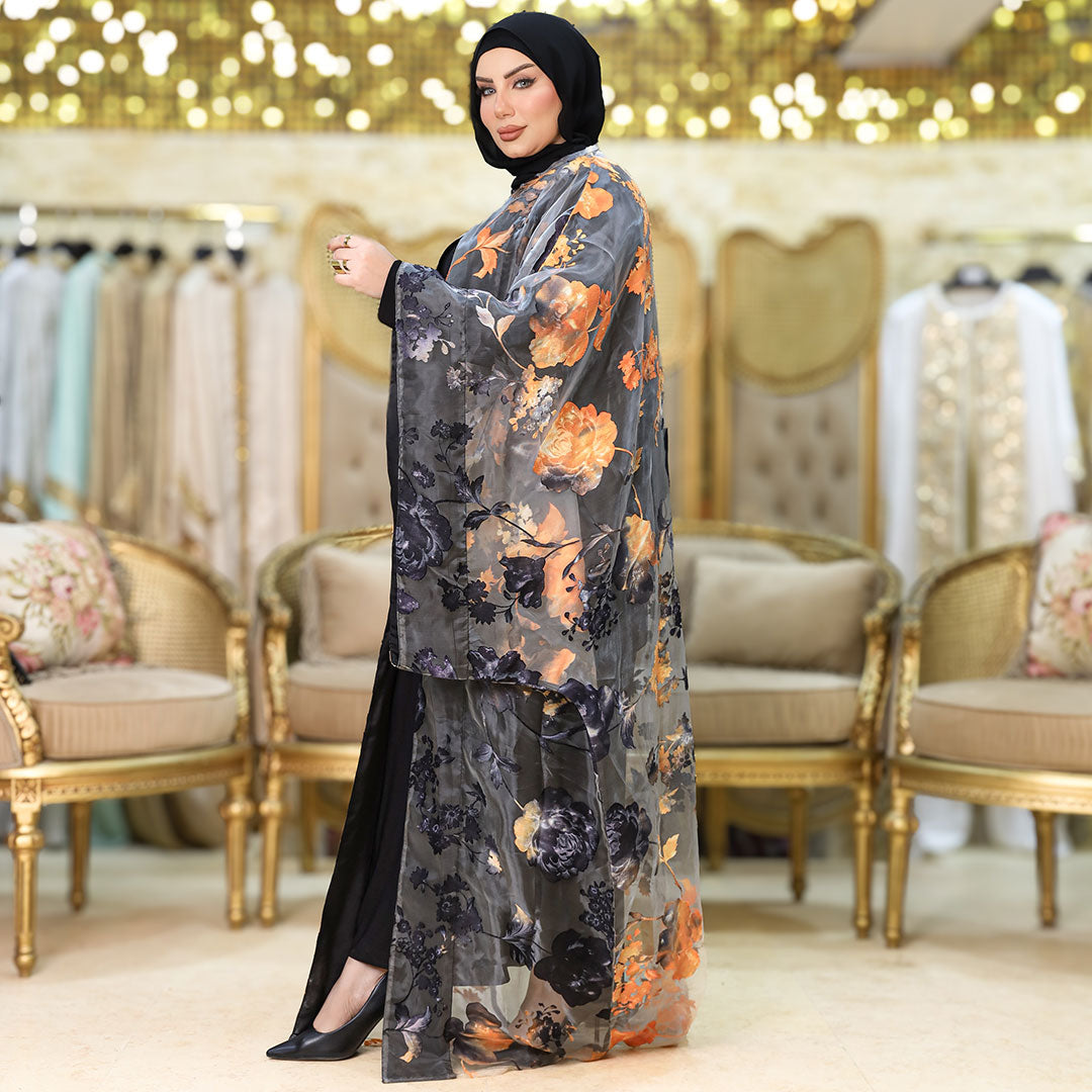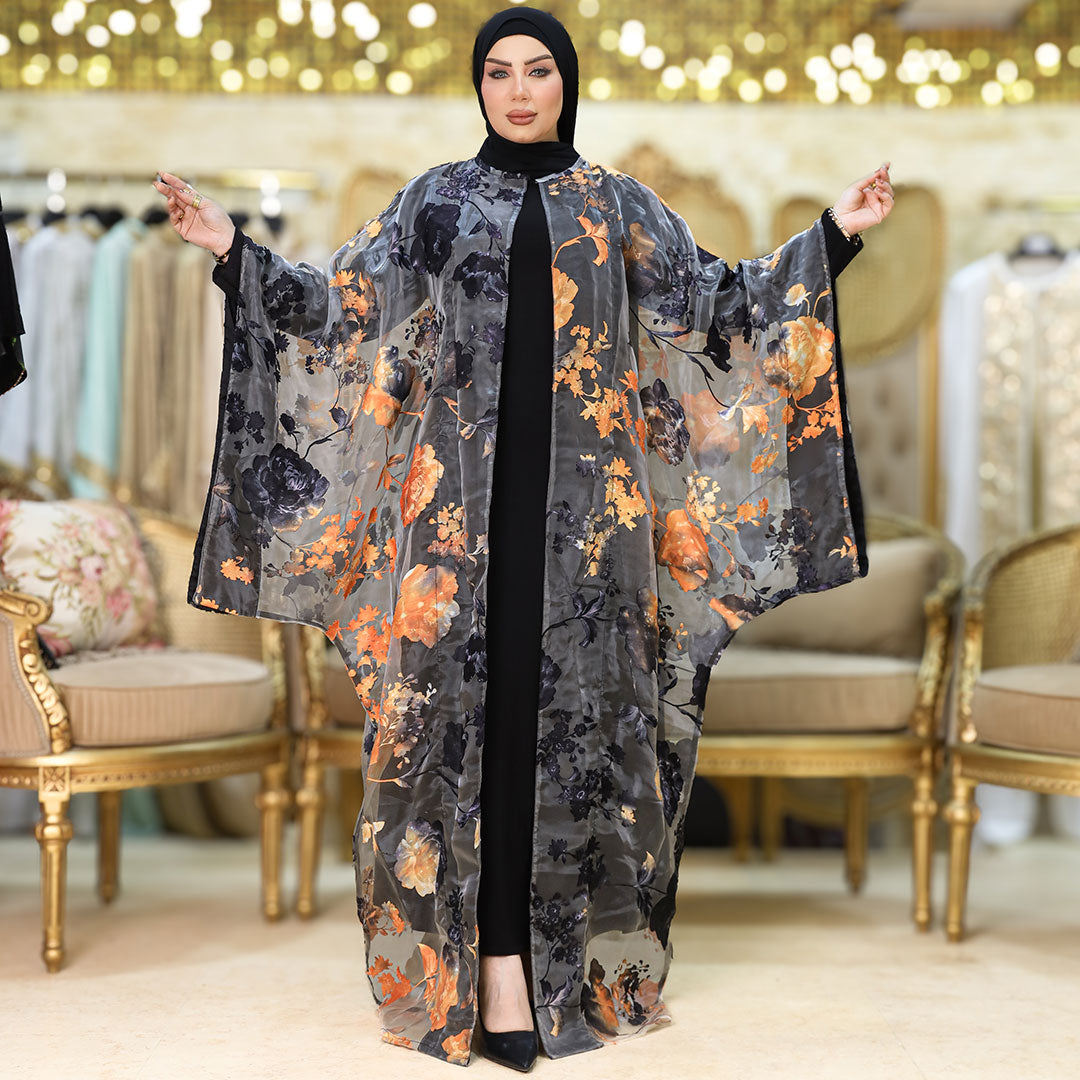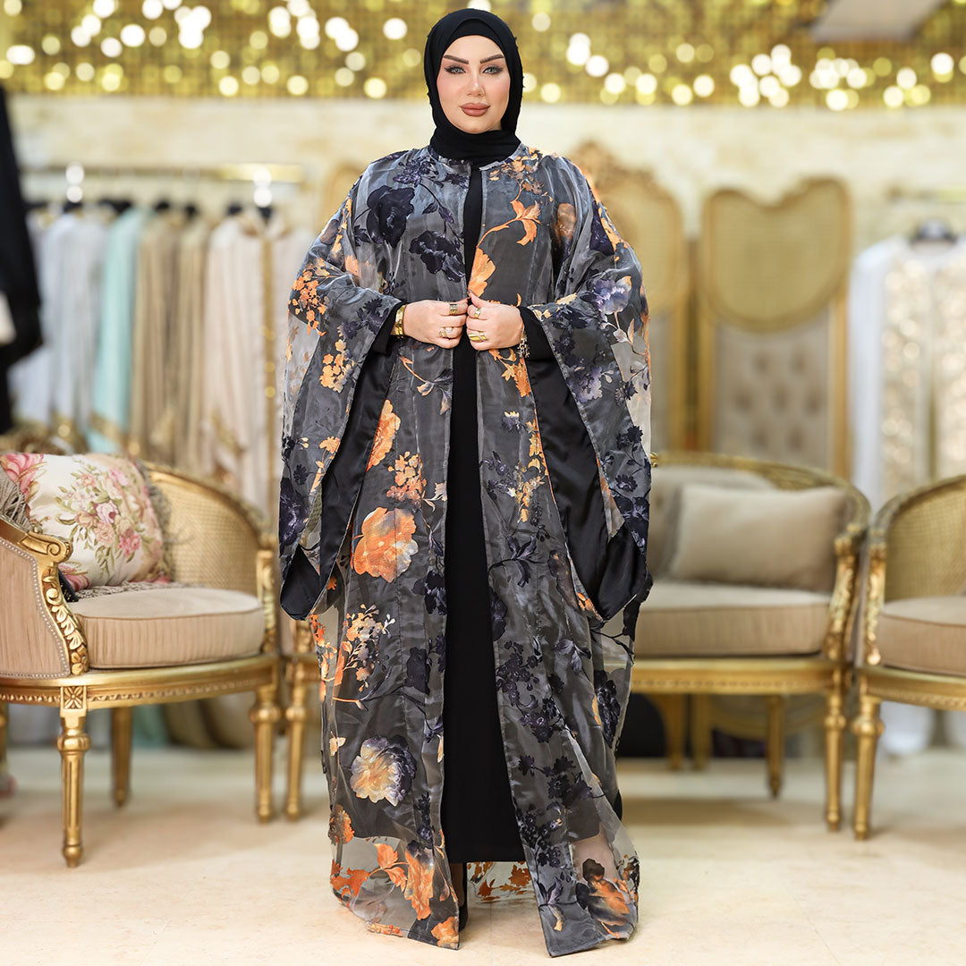 قفطان بحريني أورجانزا مطبوع ديجيتال قطعتين مع بيزك ستان أرماني