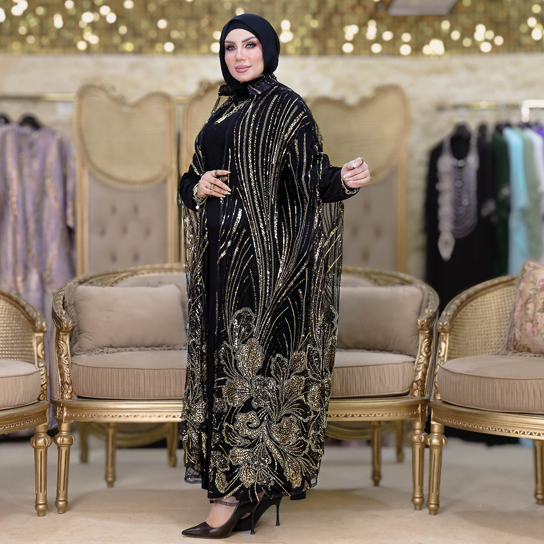 قفطان كاب أورجانزا تطريز فري سايز يناسب ٧٠ك إلى ١٠٠ك