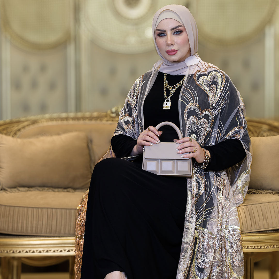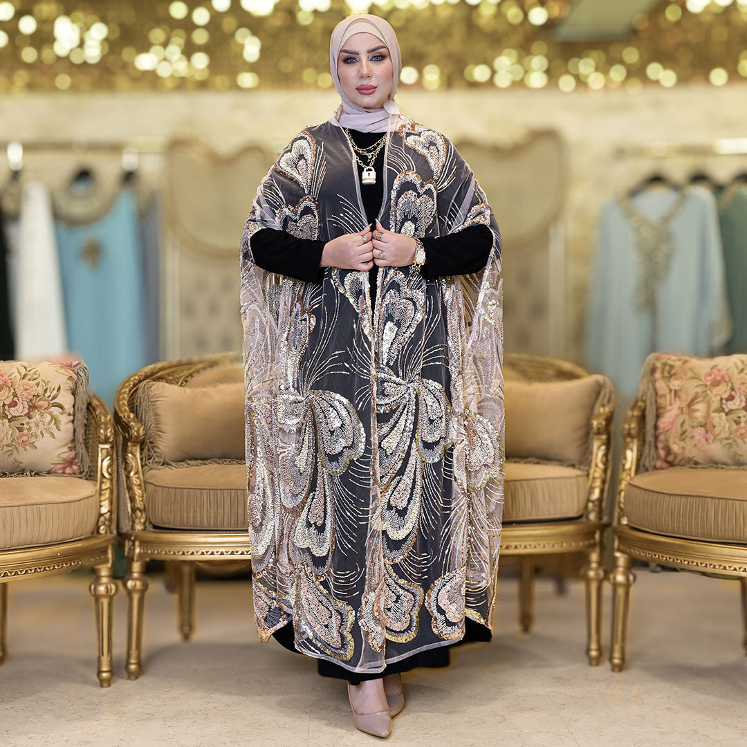 قفطان كاب أورجانزا تطريز فري سايز يناسب ٧٠ك إلى ١٠٠ك