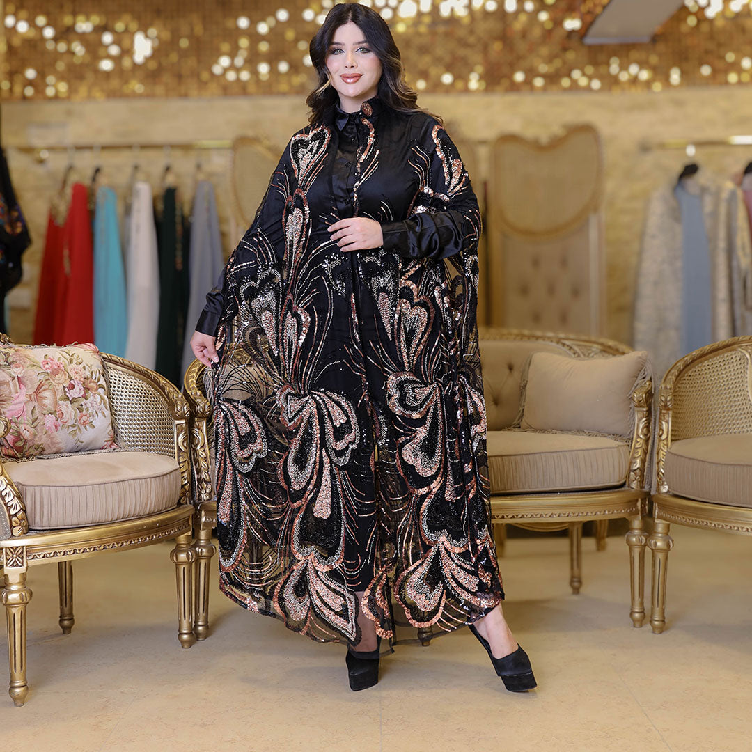 قفطان كاب أورجانزا تطريز فري سايز يناسب ٧٠ك إلى ١٠٠ك