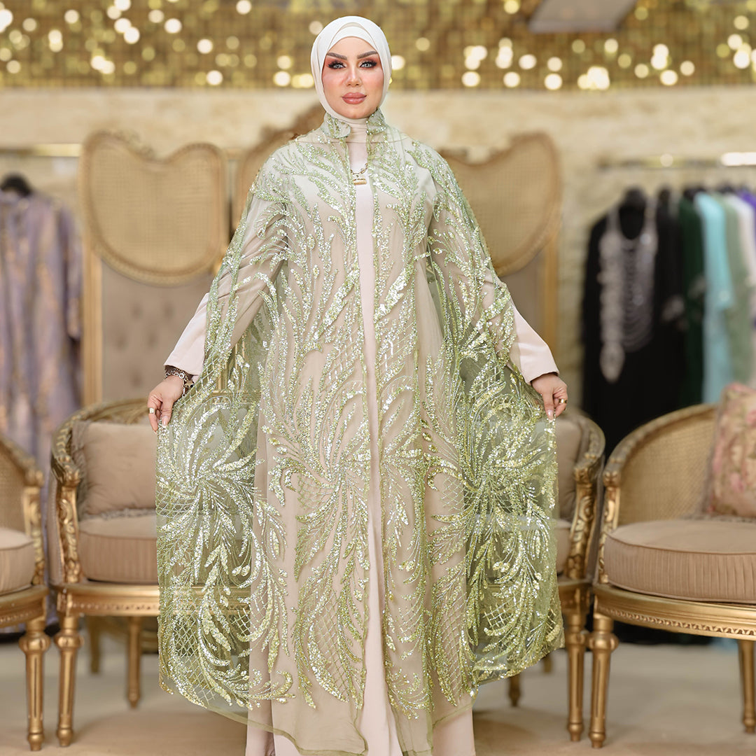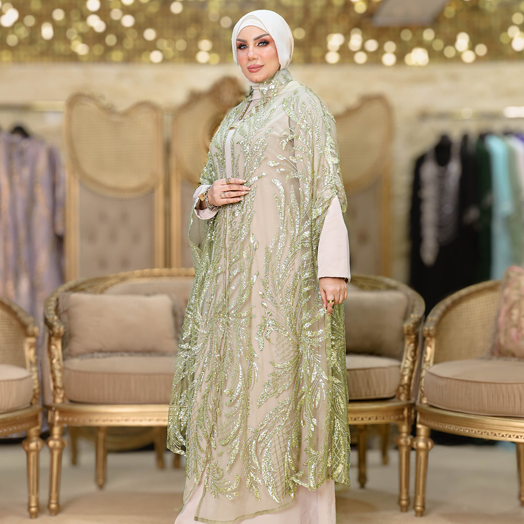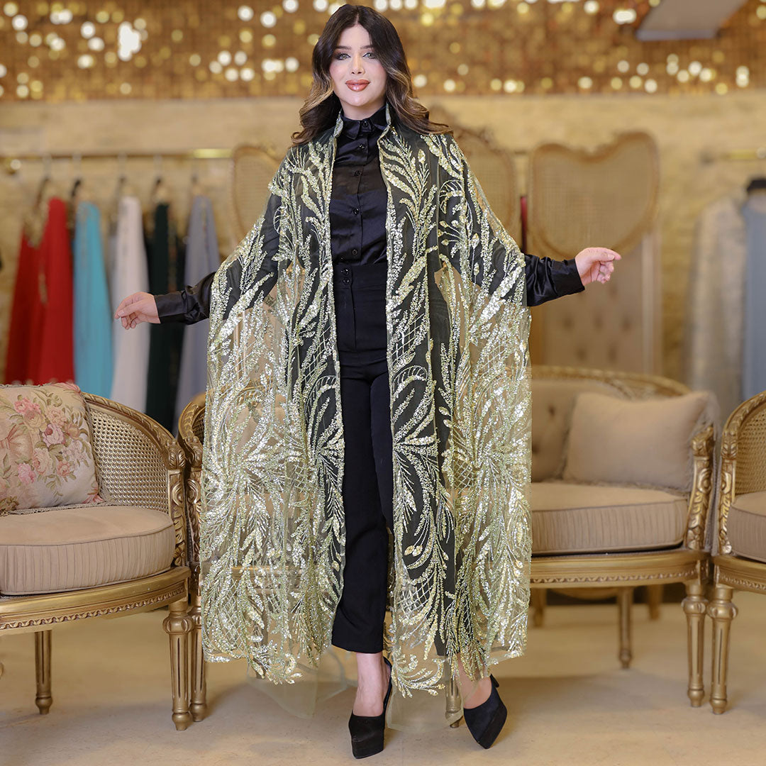 قفطان كاب أورجانزا تطريز فري سايز يناسب ٧٠ك إلى ١٠٠ك