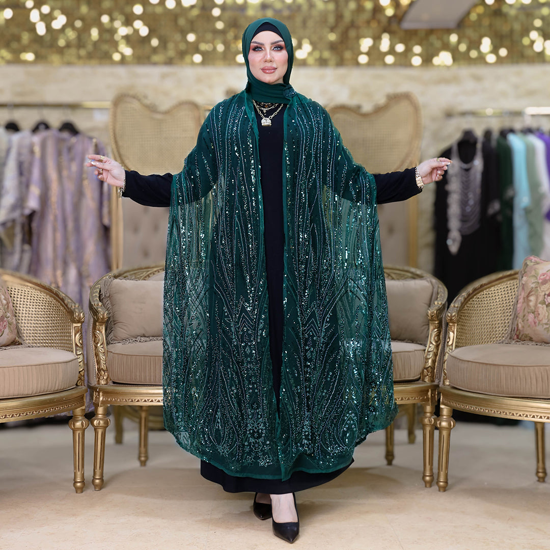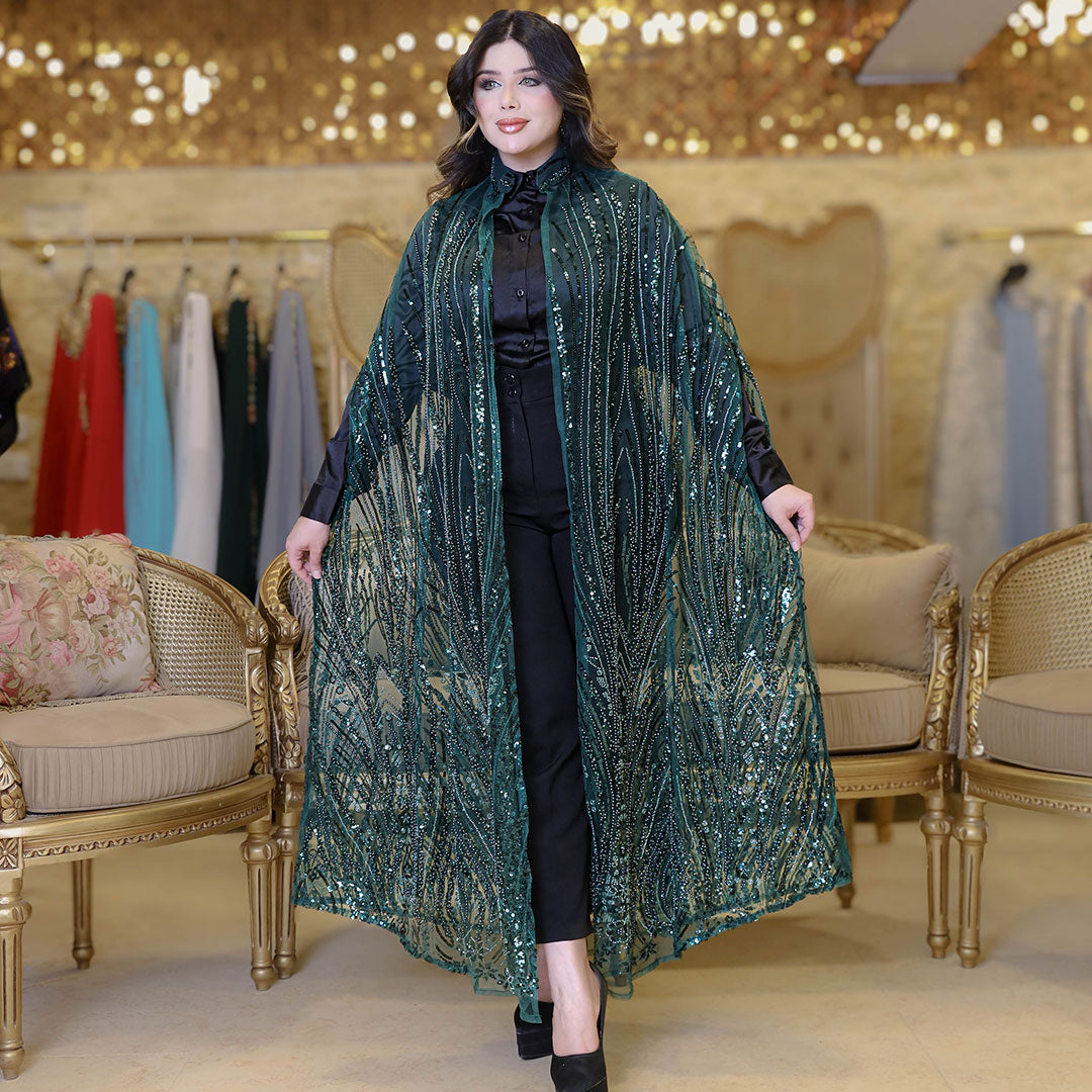 قفطان كاب أورجانزا تطريز فري سايز يناسب ٧٠ك إلى ١٠٠ك