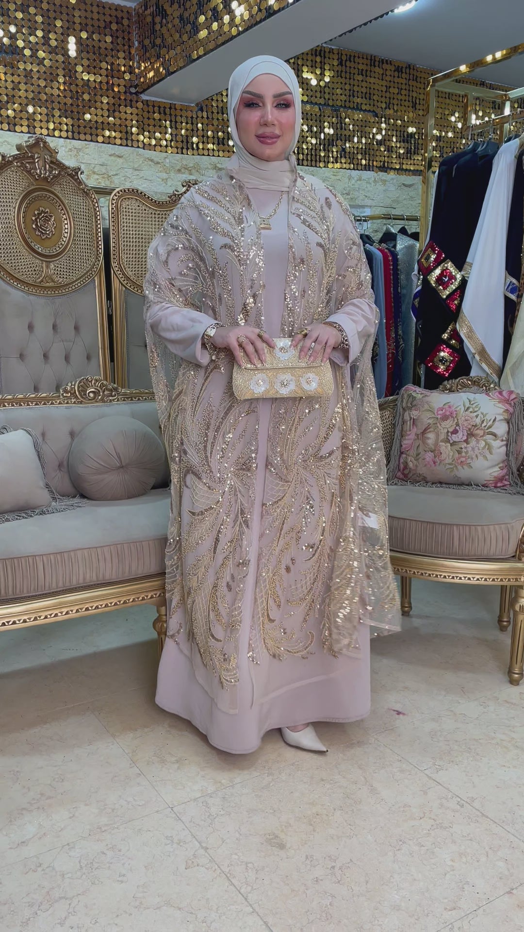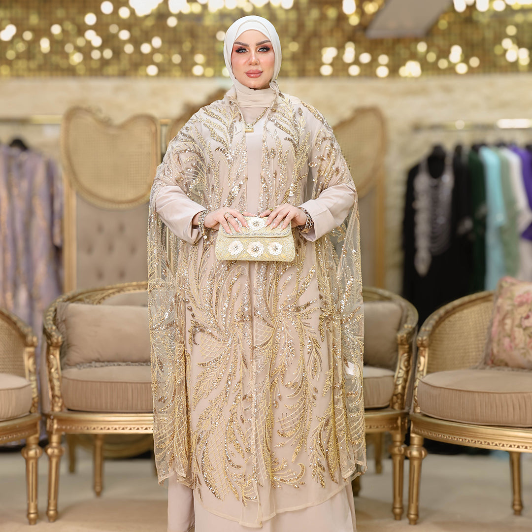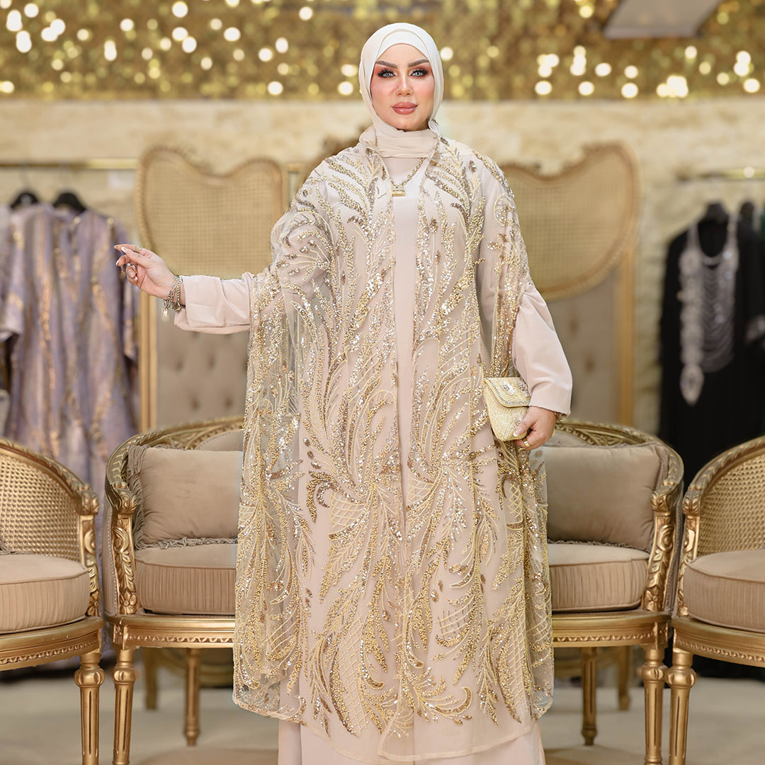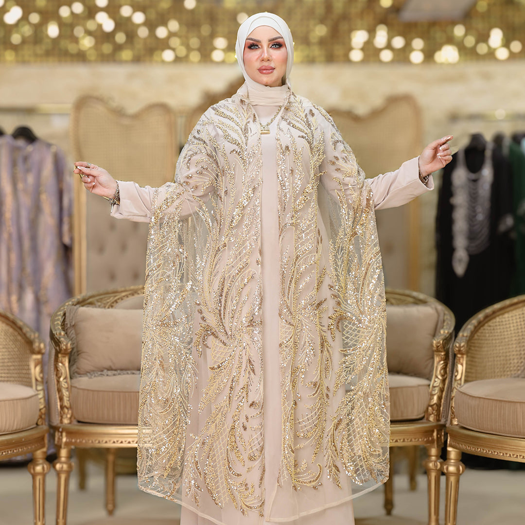 قفطان كاب أورجانزا تطريز فري سايز يناسب ٧٠ك إلى ١٠٠ك