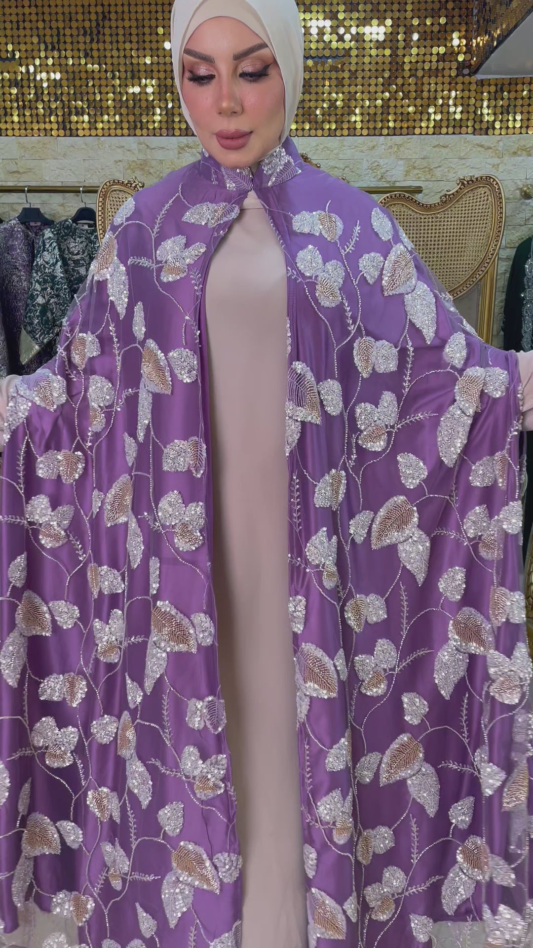 قفطان كاب أورجانزا تطريز ببطانه حرير أرماني فري سايز يناسب ٧٠ك إلى ١٠٠ك