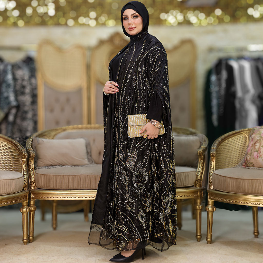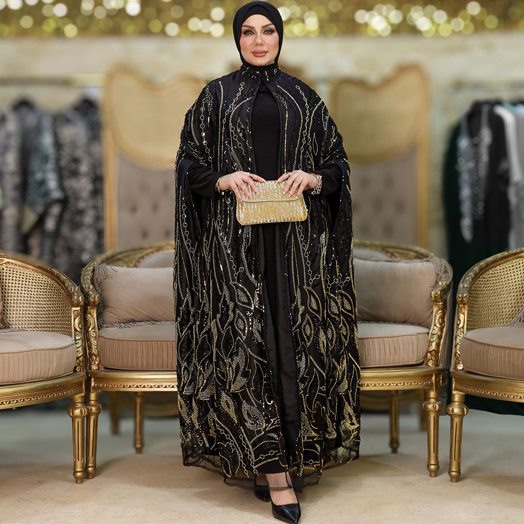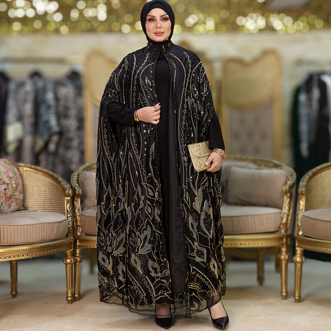 قفطان كاب أورجانزا تطريز ببطانه حرير أرماني فري سايز يناسب ٧٠ك إلى ١٠٠ك